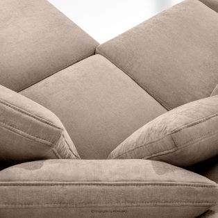 Bequeme Ecksofa für das Wohnzimmer Gewebestoff rechts beige ist die Quintessenz zeitloser Eleganz und unvergleichlichen Komforts, entworfen für die anspruchsvollsten Nutzer. Es ist ein Möbelstück, das mit Stolz den Titel „KLASSIKER ÜBER KLASSIKERN” trägt und edle Handwerkstradition mit innovativen Lösungen für maximale Ergonomie verbindet. Der Sitz dieses einzigartigen Ecksofas wurde auf der Grundlage hochwertiger Polstergurte und 17 cm dickem HR 30/120-Schaumstoff konstruiert, die eine solide und elastische Basis bilden.