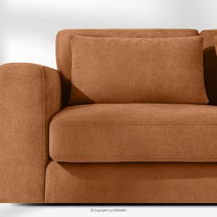 Dadurch bietet der Sitz eine perfekte Kombination aus Weichheit und mittlerer Härte und garantiert bequeme Unterstützung während langer Stunden der Entspannung. Die Rückenlehne, ein Schlüsselelement für die richtige Stützung der Wirbelsäule, ist mit Polstergurten und 2 cm dickem T 23/15-Schaumstoff ausgestattet, was in Kombination mit entsprechend geformten Rückenpolstern für eine optimale Sitzposition sorgt. Die Seitenteile des Ecksofas, also die Armlehnen, bestehen sowohl oben als auch an den Seiten aus 3 cm dickem T 25/180-Schaumstoff, was dem Möbelstück Stabilität und ein ästhetisches Finish verleiht. Die Konstruktion des Gestells, das das Herzstück des Möbelstücks bildet, basiert auf strapazierfähigem Kiefern- und Buchenholz, ergänzt durch Spanplatten und Sperrholz, was Langlebigkeit und Stabilität für viele Jahre garantiert. Es ist nicht nur ein Möbelstück, sondern eine Investition in Komfort und Stil, die den Test der Zeit bestehen wird.
