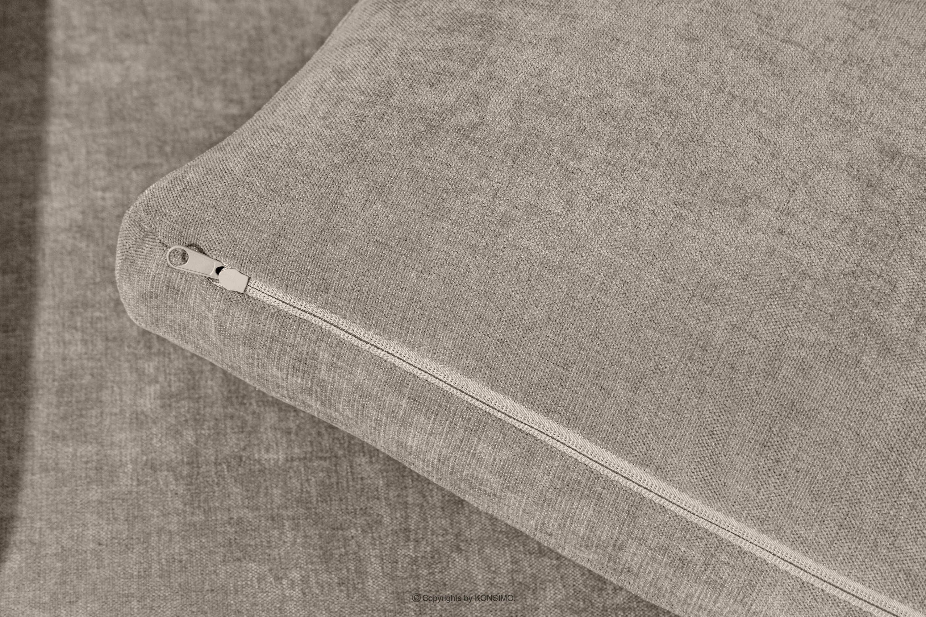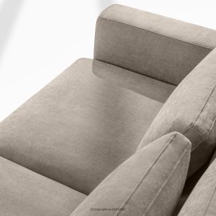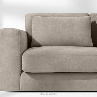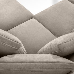 Bequeme Ecksofa für das Wohnzimmer Gewebestoff rechts grau-beige ist die Quintessenz zeitloser Eleganz und unvergleichlichen Komforts, entworfen für die anspruchsvollsten Nutzer. Es ist ein Möbelstück, das mit Stolz den Titel „KLASSIKER ÜBER KLASSIKERN” trägt und edle Handwerkstradition mit innovativen Lösungen für maximale Ergonomie verbindet. Der Sitz dieses einzigartigen Ecksofas wurde auf der Grundlage hochwertiger Polstergurte und 17 cm dickem HR 30/120-Schaumstoff konstruiert, die eine solide und elastische Basis bilden.