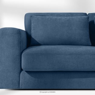 Bequeme Ecksofa aus Gewebestoff rechts dunkelblau ist die Quintessenz zeitloser Eleganz und unvergleichlichen Komforts, entworfen für die anspruchsvollsten Nutzer. Es ist ein Möbelstück, das mit Stolz den Titel „KLASSIKER ÜBER KLASSIKERN” trägt und edle Handwerkstradition mit innovativen Lösungen für maximale Ergonomie verbindet. Der Sitz dieses einzigartigen Ecksofas wurde auf der Grundlage hochwertiger Polstergurte und 17 cm dickem HR 30/120-Schaumstoff konstruiert, die eine solide und elastische Basis bilden.