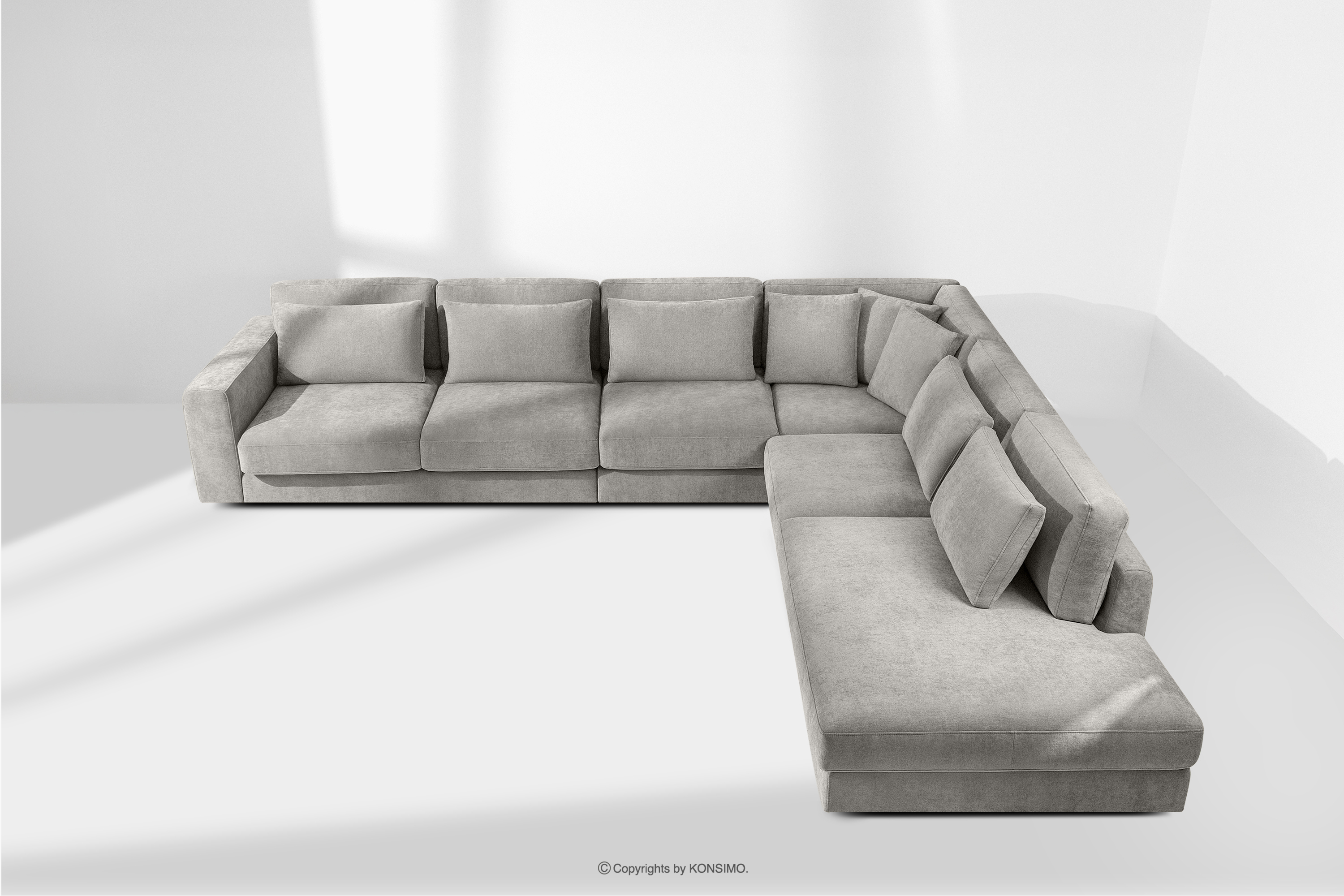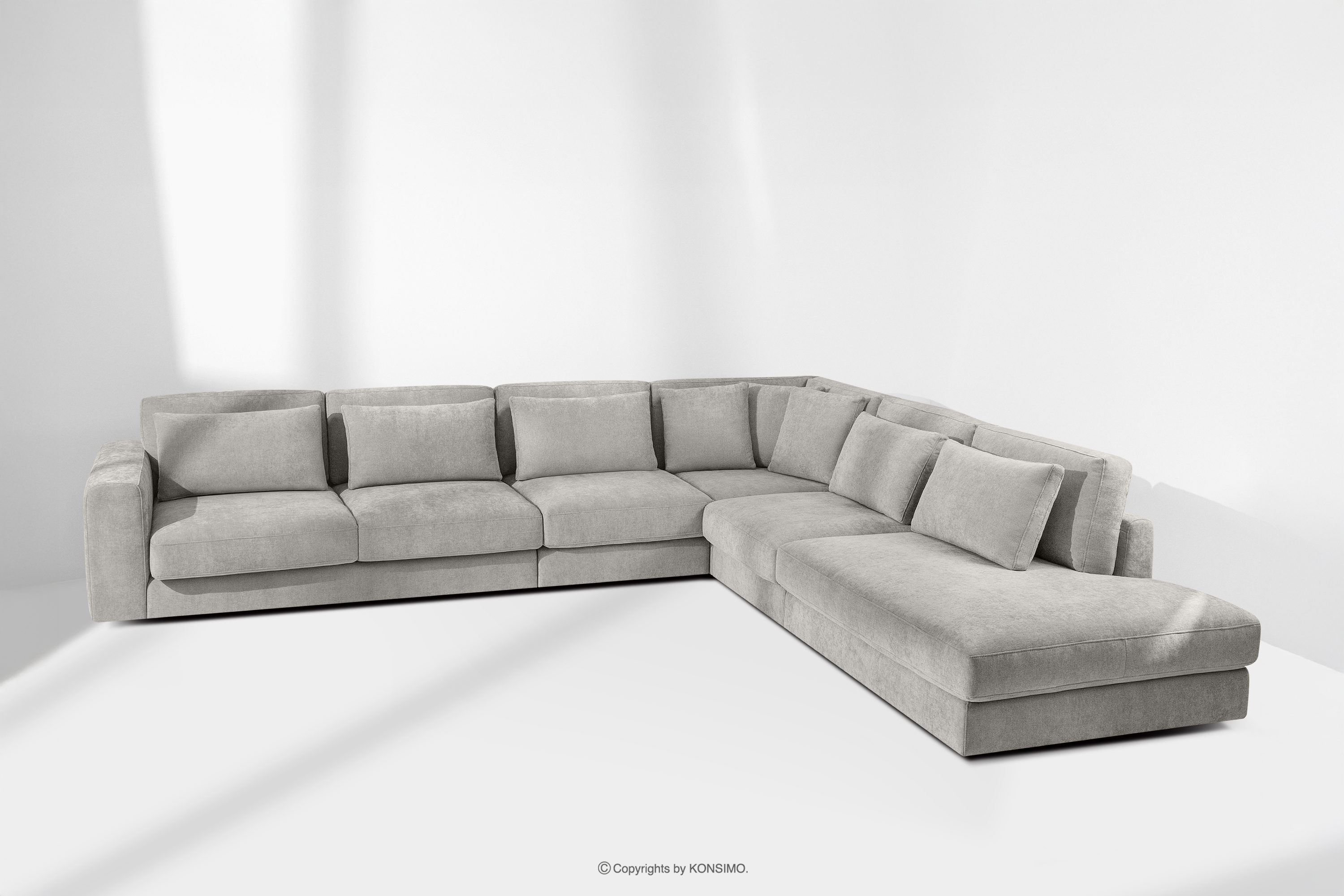 VERUS Großes Ecksofa für das Wohnzimmer aus Gewebestoff rechts hellgrau