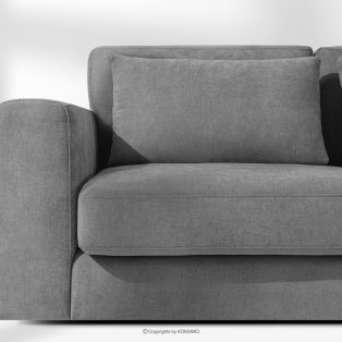 Großes Ecksofa für das Wohnzimmer aus Gewebestoff rechts dunkelgrau ist die Quintessenz zeitloser Eleganz und unvergleichlichen Komforts, entworfen für die anspruchsvollsten Nutzer. Es ist ein Möbelstück, das mit Stolz den Titel „KLASSIKER ÜBER KLASSIKERN” trägt und edle Handwerkstradition mit innovativen Lösungen für maximale Ergonomie verbindet. Der Sitz dieses einzigartigen Ecksofas wurde auf der Grundlage hochwertiger Polstergurte und 17 cm dickem HR 30/120-Schaumstoff konstruiert, die eine solide und elastische Basis bilden.