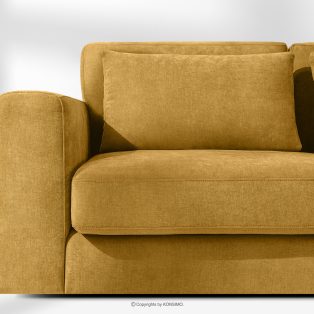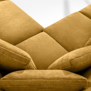 Großes Ecksofa für das Wohnzimmer aus Gewebestoff rechts gelb ist die Quintessenz zeitloser Eleganz und unvergleichlichen Komforts, entworfen für die anspruchsvollsten Nutzer. Es ist ein Möbelstück, das mit Stolz den Titel „KLASSIKER ÜBER KLASSIKERN” trägt und edle Handwerkstradition mit innovativen Lösungen für maximale Ergonomie verbindet. Der Sitz dieses einzigartigen Ecksofas wurde auf der Grundlage hochwertiger Polstergurte und 17 cm dickem HR 30/120-Schaumstoff konstruiert, die eine solide und elastische Basis bilden.