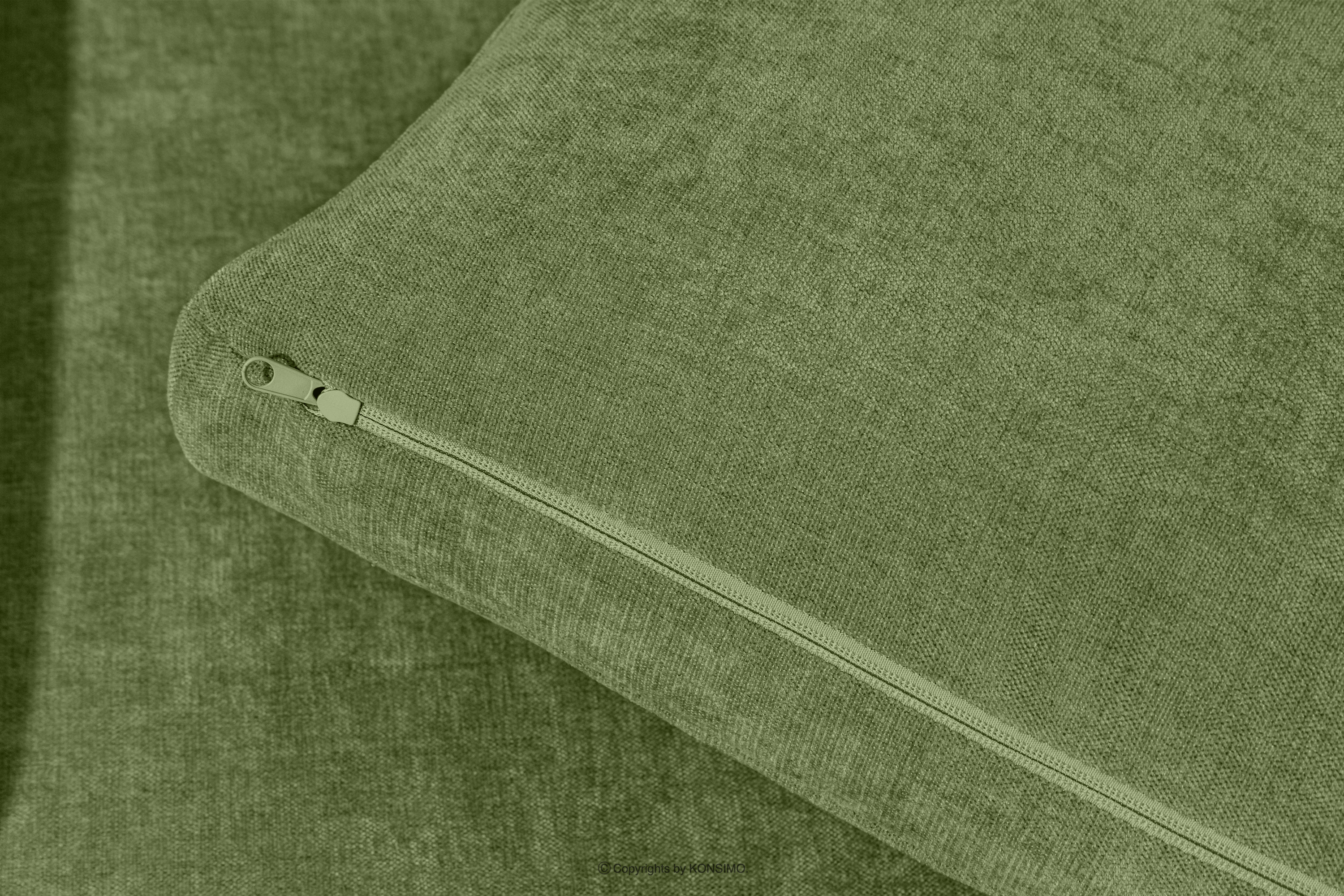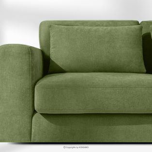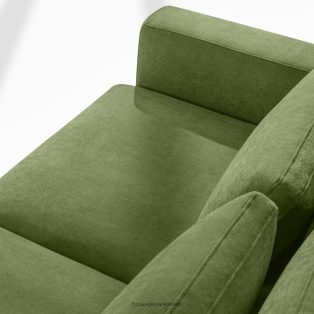Großes Ecksofa für das Wohnzimmer aus Gewebestoff rechts grün ist die Quintessenz zeitloser Eleganz und unvergleichlichen Komforts, entworfen für die anspruchsvollsten Nutzer. Es ist ein Möbelstück, das mit Stolz den Titel „KLASSIKER ÜBER KLASSIKERN” trägt und edle Handwerkstradition mit innovativen Lösungen für maximale Ergonomie verbindet. Der Sitz dieses einzigartigen Ecksofas wurde auf der Grundlage hochwertiger Polstergurte und 17 cm dickem HR 30/120-Schaumstoff konstruiert, die eine solide und elastische Basis bilden.
