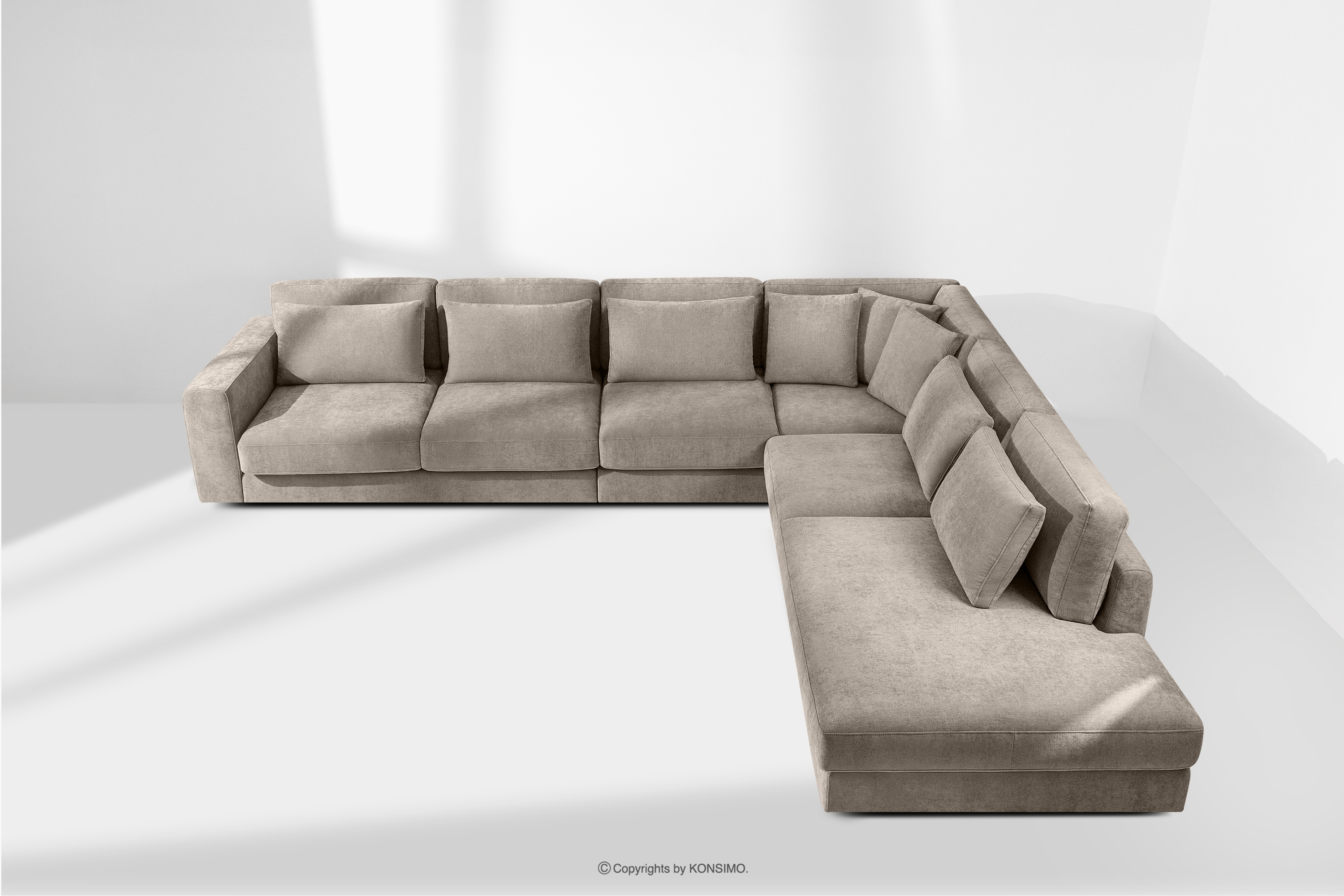 VERUS Mehr aus der Kollektion Großes bequemes Ecksofa für das Wohnzimmer Gewebestoff rechts grau-beige- Farbe graubeige