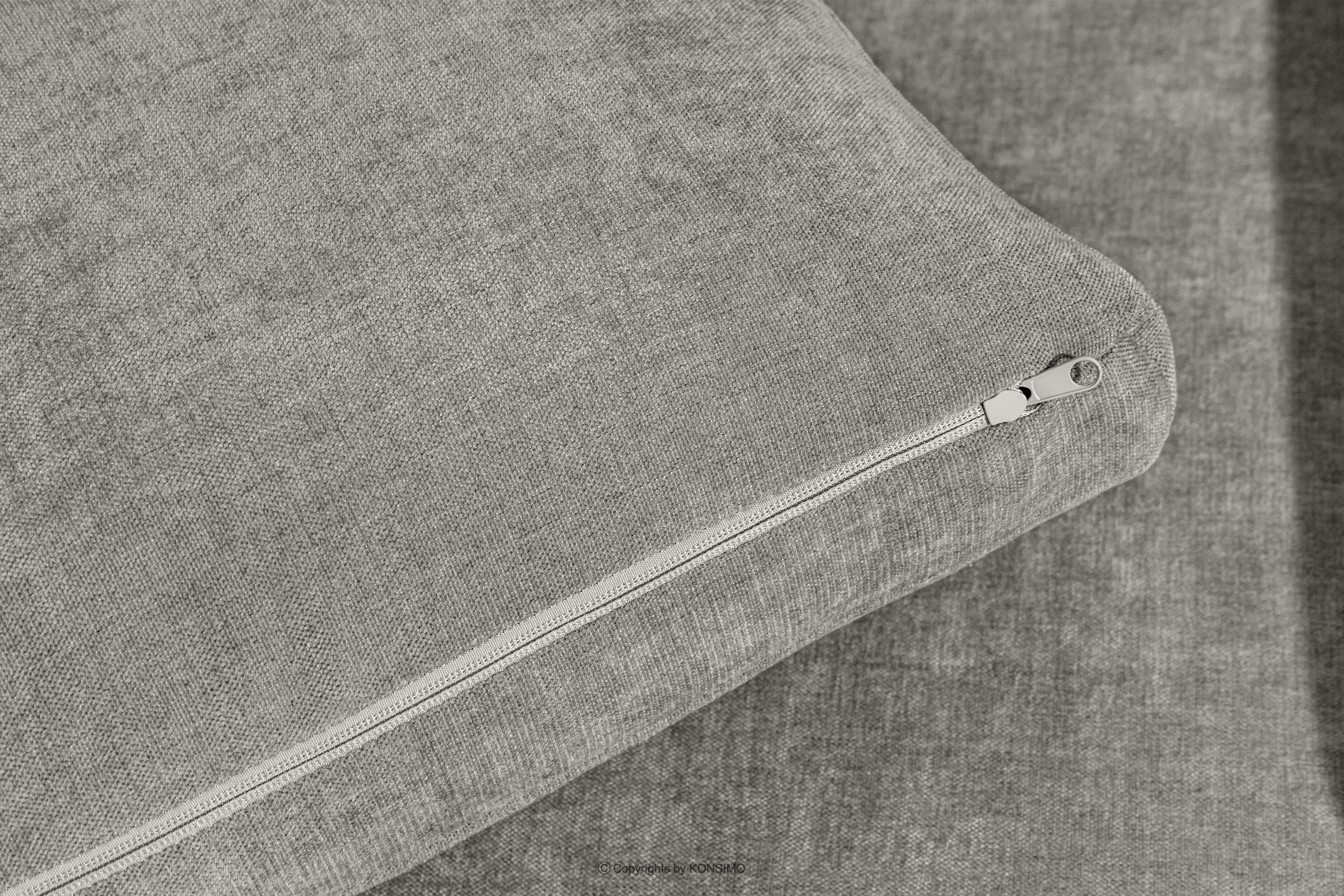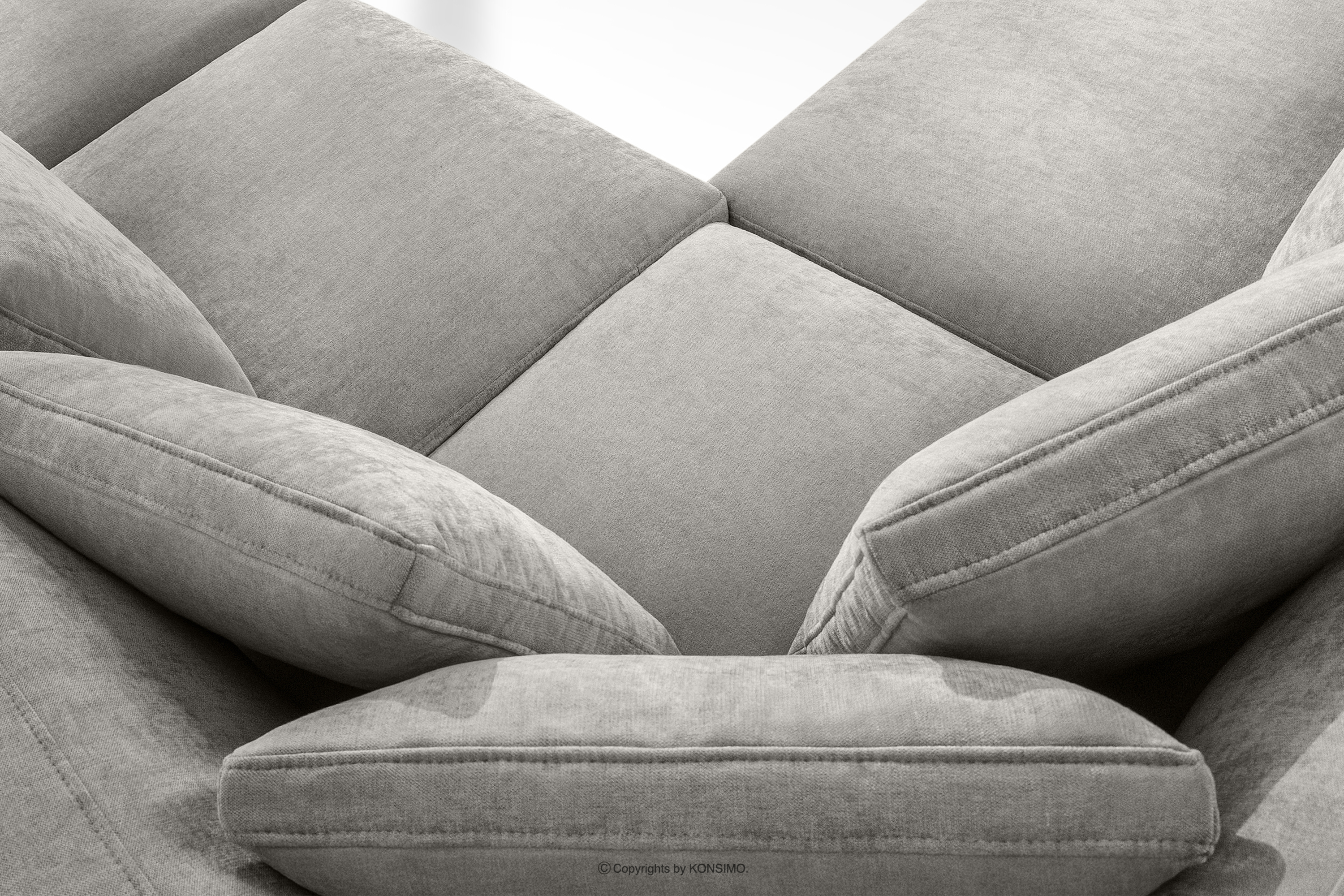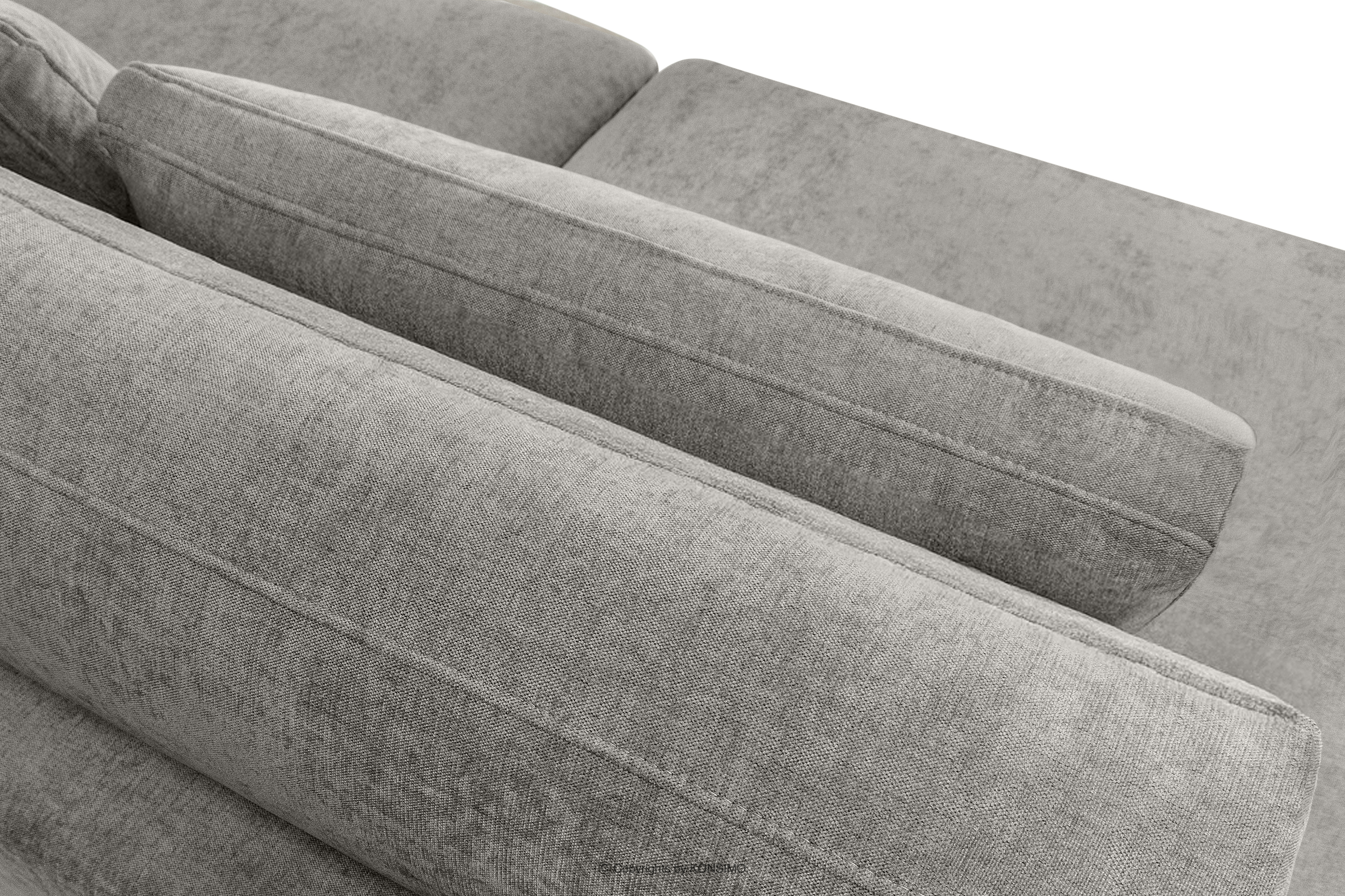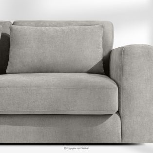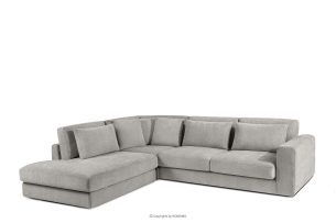Großes Ecksofa aus geflochtenem Stoff links hellgrau ist die Quintessenz zeitloser Eleganz und unvergleichlichen Komforts, entworfen für die anspruchsvollsten Nutzer. Es ist ein Möbelstück, das mit Stolz den Titel „KLASSIKER ÜBER KLASSIKERN” trägt und edle Handwerkstradition mit innovativen Lösungen für maximale Ergonomie verbindet. Der Sitz dieses einzigartigen Ecksofas wurde auf der Grundlage hochwertiger Polstergurte und 17 cm dickem HR 30/120-Schaumstoff konstruiert, die eine solide und elastische Basis bilden.