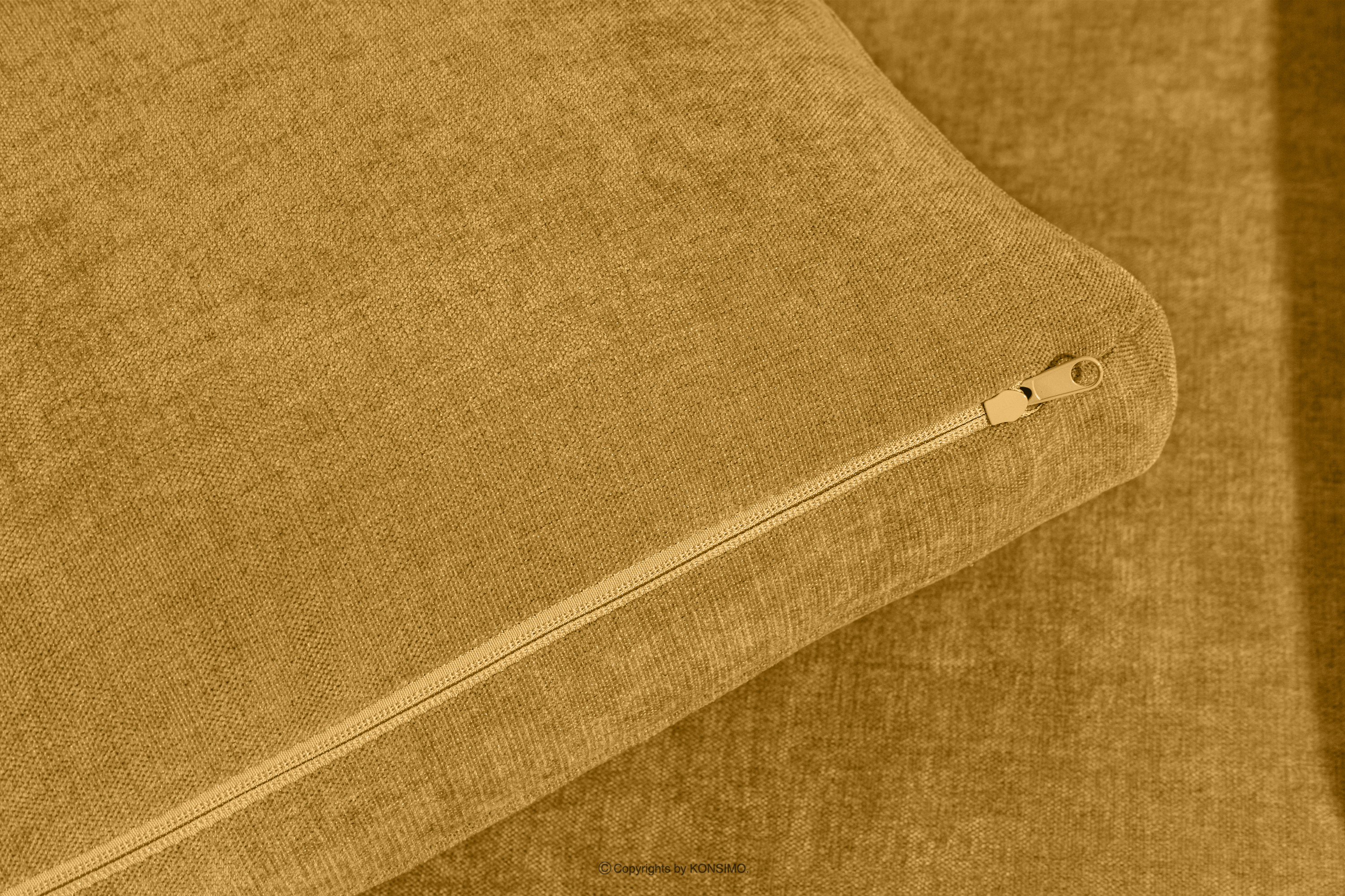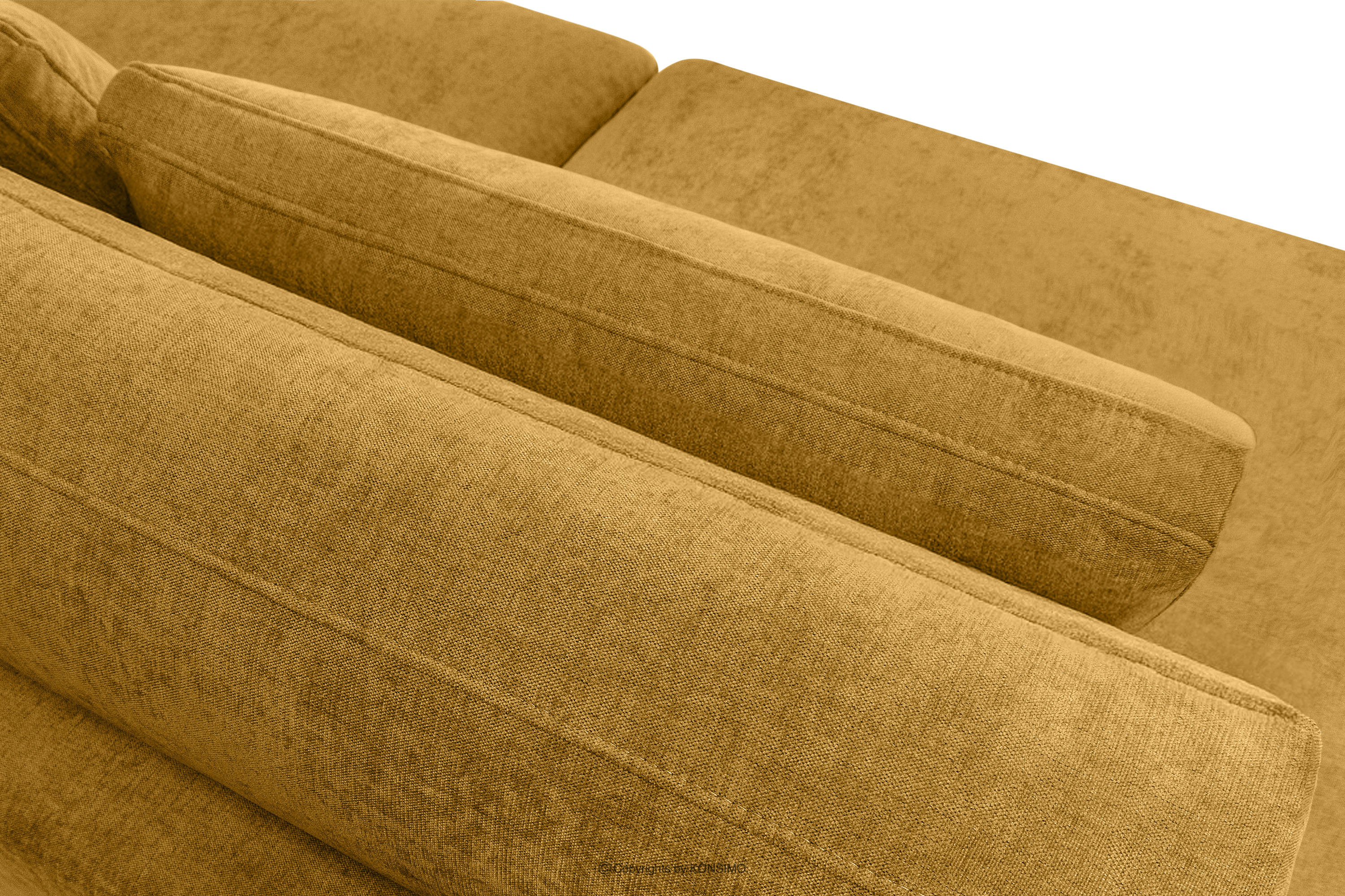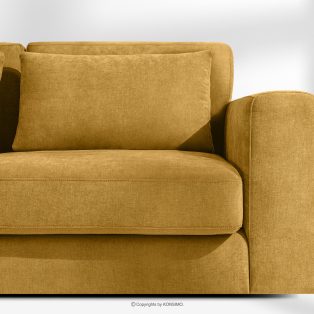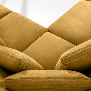 Großes Ecksofa für das Wohnzimmer aus Gewebestoff links gelb ist die Quintessenz zeitloser Eleganz und unvergleichlichen Komforts, entworfen für die anspruchsvollsten Nutzer. Es ist ein Möbelstück, das mit Stolz den Titel „KLASSIKER ÜBER KLASSIKERN” trägt und edle Handwerkstradition mit innovativen Lösungen für maximale Ergonomie verbindet. Der Sitz dieses einzigartigen Ecksofas wurde auf der Grundlage hochwertiger Polstergurte und 17 cm dickem HR 30/120-Schaumstoff konstruiert, die eine solide und elastische Basis bilden.