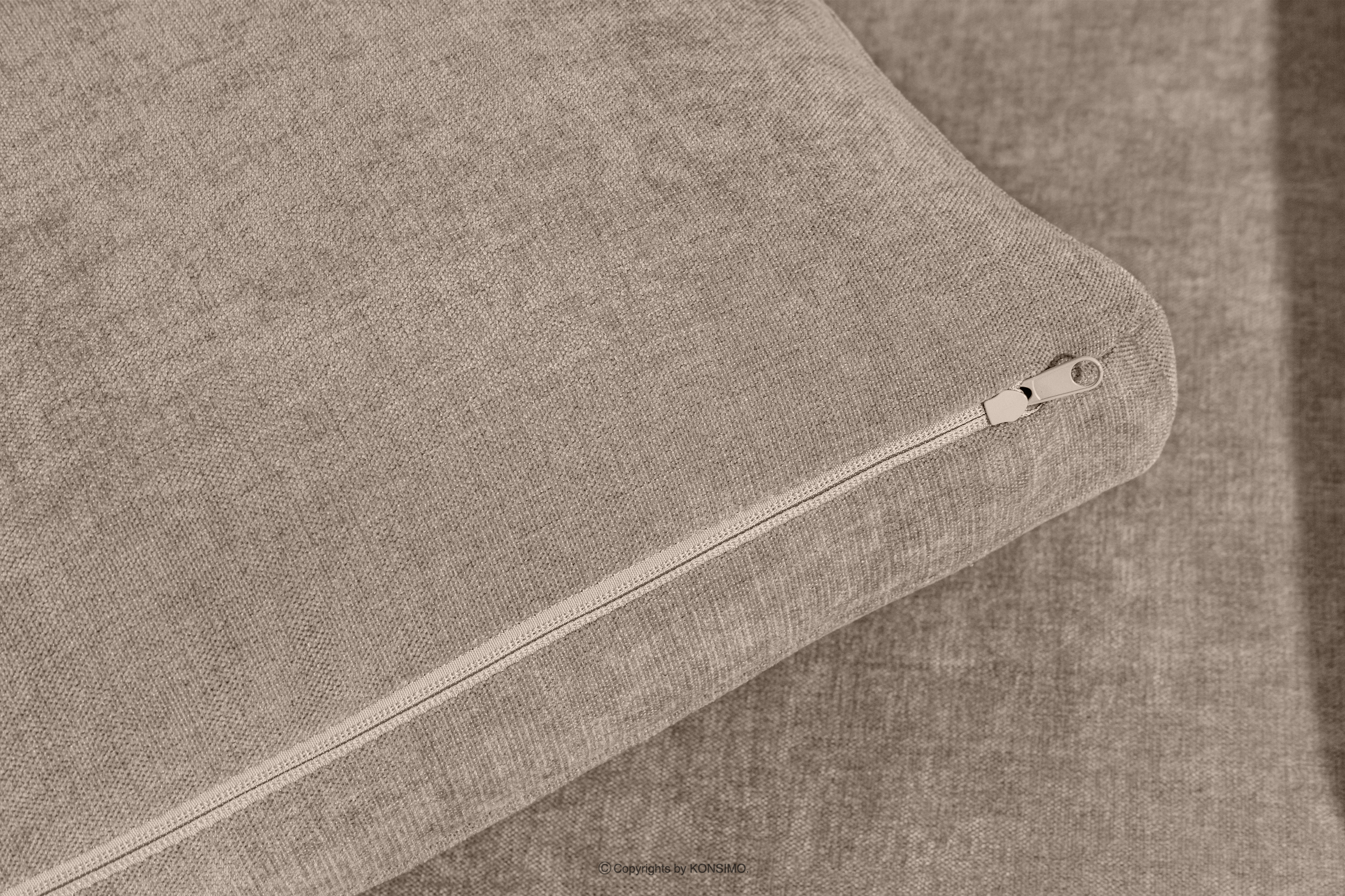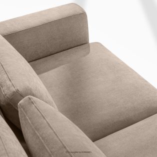 Großes bequemes Ecksofa für das Wohnzimmer Gewebestoff links beige ist die Quintessenz zeitloser Eleganz und unvergleichlichen Komforts, entworfen für die anspruchsvollsten Nutzer. Es ist ein Möbelstück, das mit Stolz den Titel „KLASSIKER ÜBER KLASSIKERN” trägt und edle Handwerkstradition mit innovativen Lösungen für maximale Ergonomie verbindet. Der Sitz dieses einzigartigen Ecksofas wurde auf der Grundlage hochwertiger Polstergurte und 17 cm dickem HR 30/120-Schaumstoff konstruiert, die eine solide und elastische Basis bilden.