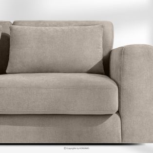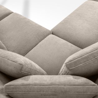 Großes bequemes Ecksofa für das Wohnzimmer Gewebestoff links grau-beige ist die Quintessenz zeitloser Eleganz und unvergleichlichen Komforts, entworfen für die anspruchsvollsten Nutzer. Es ist ein Möbelstück, das mit Stolz den Titel „KLASSIKER ÜBER KLASSIKERN” trägt und edle Handwerkstradition mit innovativen Lösungen für maximale Ergonomie verbindet. Der Sitz dieses einzigartigen Ecksofas wurde auf der Grundlage hochwertiger Polstergurte und 17 cm dickem HR 30/120-Schaumstoff konstruiert, die eine solide und elastische Basis bilden.