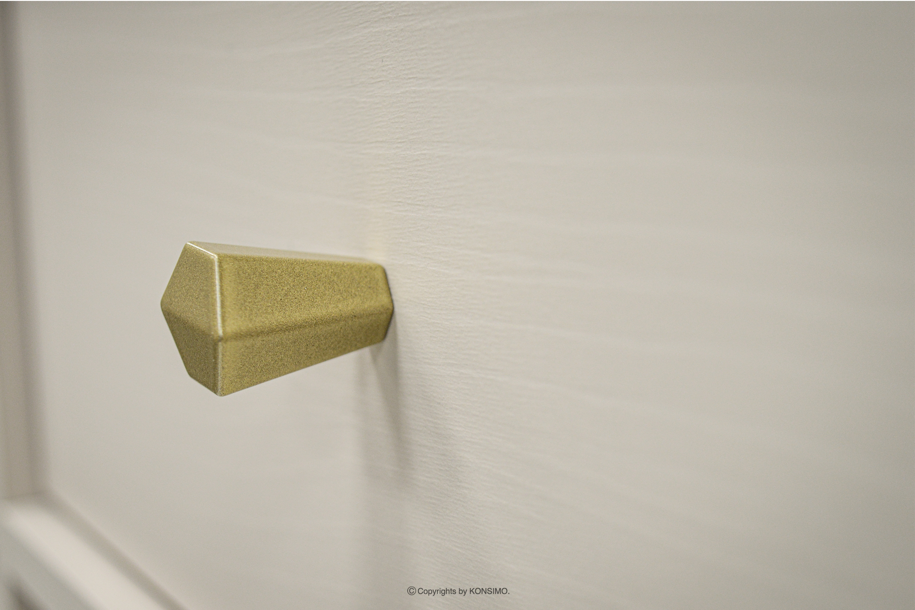 Nachttisch auf goldenen Beinen, cremefarben ist die Quintessenz modernen Designs, kombiniert mit Funktionalität und Eleganz, geschaffen für moderne Wohnzimmer, die das Herzstück jedes Hauses bilden sollen. Die helle, cremefarbene Farbgebung der Möbel in Kombination mit den goldenen Metallbeinen verleiht dem Raum ein Gefühl von Leichtigkeit und Luxus und entspricht gleichzeitig den neuesten Einrichtungstrends.