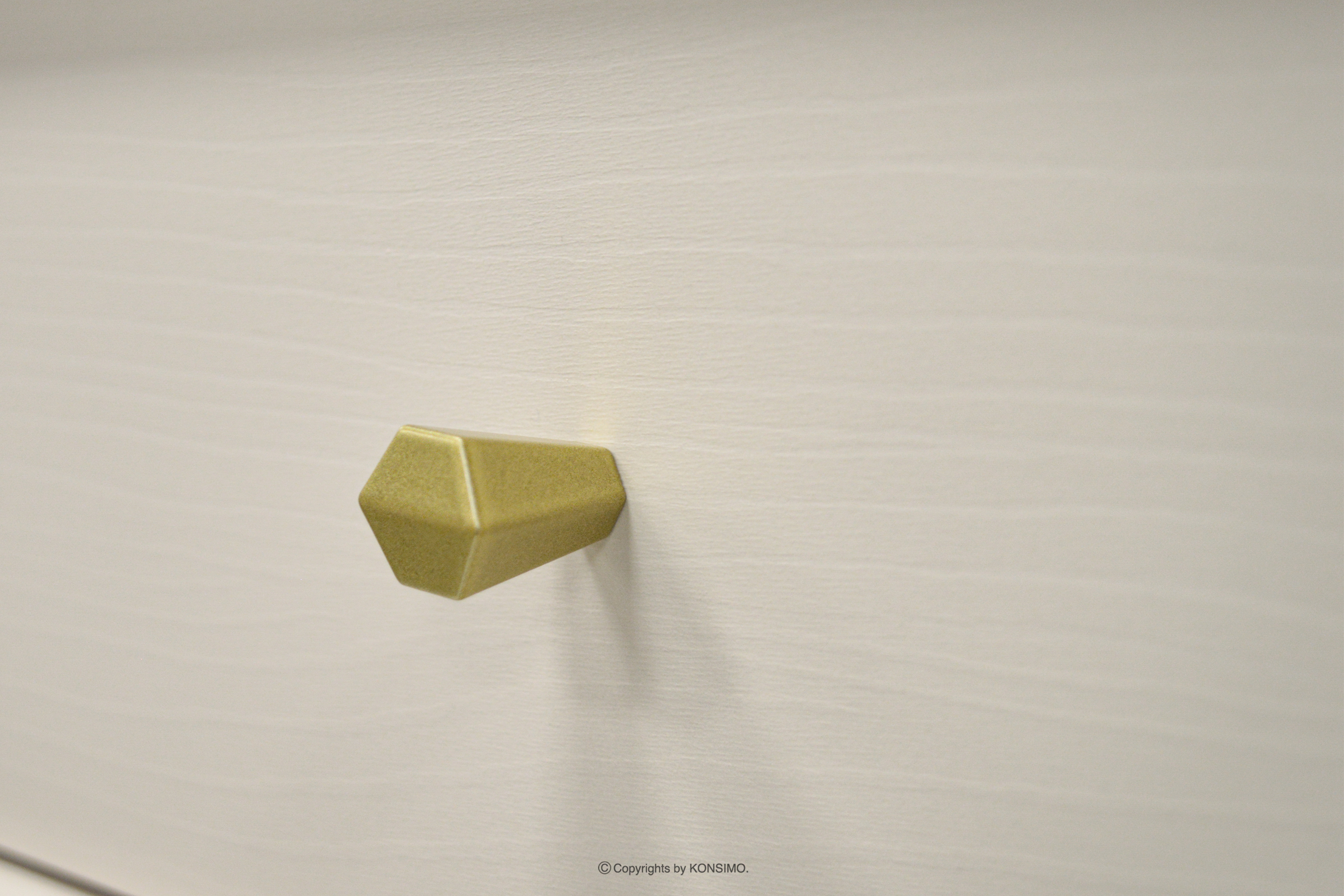 Kleine Kommode 100 cm auf hohen Beinen, cremefarben/gold ist die Quintessenz modernen Designs, kombiniert mit Funktionalität und Eleganz, geschaffen für moderne Wohnzimmer, die das Herzstück jedes Hauses bilden sollen. Die helle, cremefarbene Farbgebung der Möbel in Kombination mit den goldenen Metallbeinen verleiht dem Raum ein Gefühl von Leichtigkeit und Luxus und entspricht gleichzeitig den neuesten Einrichtungstrends.