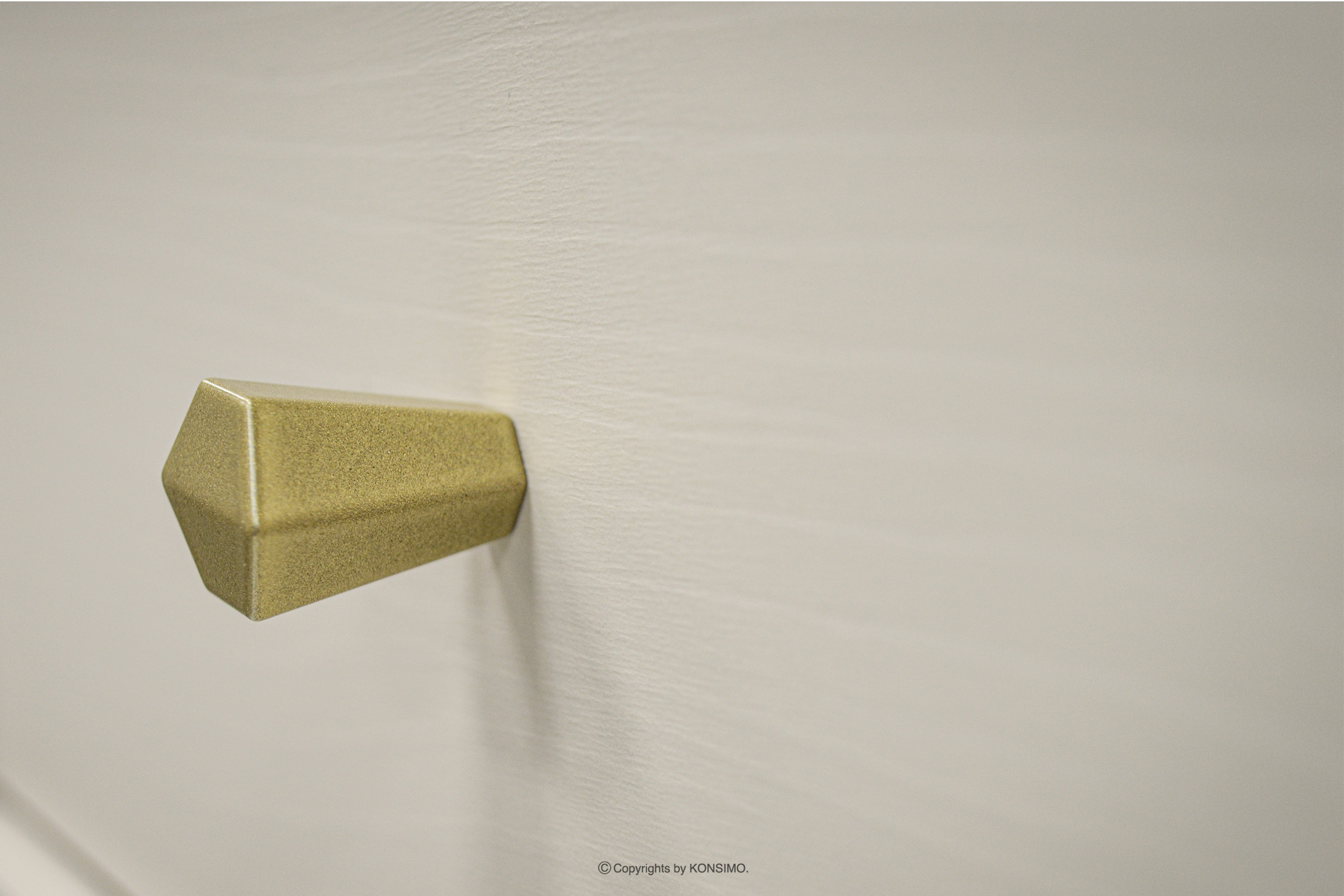 Cremefarbene Kommode mit goldenen Beinen, modern ist die Quintessenz modernen Designs, kombiniert mit Funktionalität und Eleganz, geschaffen für moderne Wohnzimmer, die das Herzstück jedes Hauses bilden sollen. Die helle, cremefarbene Farbgebung der Möbel in Kombination mit den goldenen Metallbeinen verleiht dem Raum ein Gefühl von Leichtigkeit und Luxus und entspricht gleichzeitig den neuesten Einrichtungstrends.