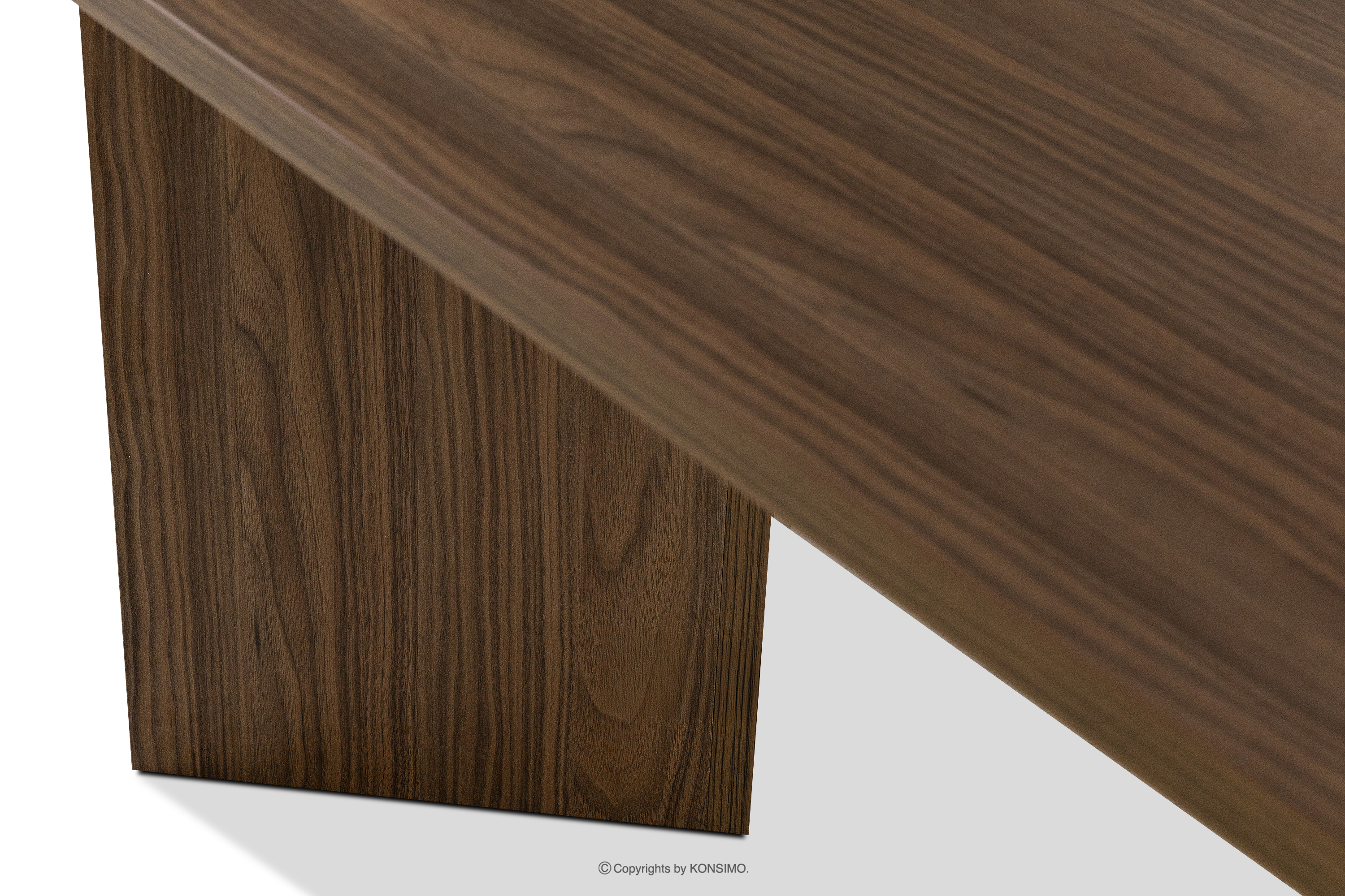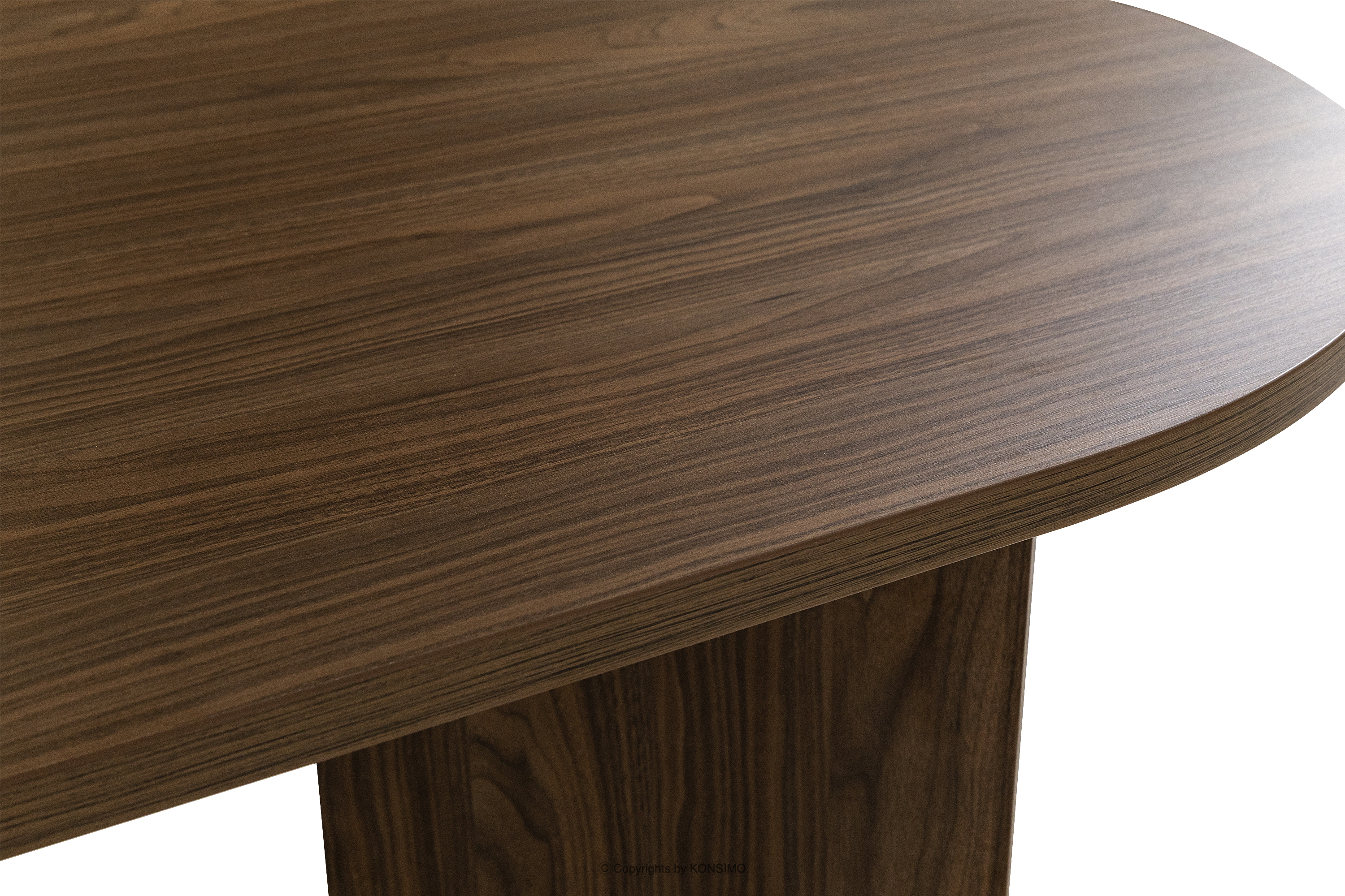 Esstisch im modernen Stil aus dunklem Nussbaumholz ist die ideale Lösung für moderne Esszimmer, die Ästhetik und Funktionalität vereint. Die FABER-Tische aus hochwertiger Laminatplatte zeichnen sich durch Langlebigkeit und Pflegeleichtigkeit aus, was sie zu einer ausgezeichneten Wahl für alle macht, die praktische und stilvolle Lösungen schätzen. Sie passen sich leicht an verschiedene Einrichtungsstile an, von minimalistisch bis industriell.