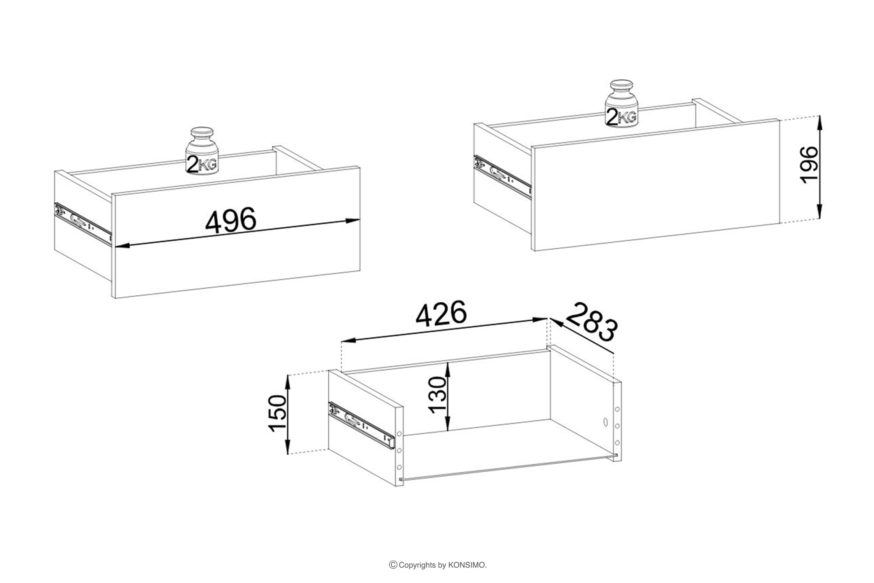 Die Rückseite der Kommode besteht aus HDF-Platten, was die Konstruktion zusätzlich verstärkt. Die Kanten des Möbelstücks sind sorgfältig mit einer 0,5 mm starken ABS-Kante verkleidet, die sie vor Beschädigungen und Feuchtigkeit schützt und so die Lebensdauer des Möbelstücks verlängert. Innovative Push-Open-Griffe unterstreichen den minimalistischen Charakter des Möbelstücks und machen herkömmliche Knöpfe und Griffe überflüssig, was sich in einer klaren und glatten Linienführung der Fronten niederschlägt. Zusätzlich ist im Lieferumfang eine LED-Leiste enthalten, die nicht nur den Innenraum der Kommode dezent beleuchtet, sondern auch eine einzigartige Atmosphäre im Raum schafft, den modernen Charakter des Möbelstücks unterstreicht und seinen Inhalt hervorhebt. Der cremefarbene Farbton passt perfekt zu den neuesten Einrichtungstrends und bietet eine neutrale Basis, die sich hervorragend mit verschiedenen Farbpaletten und Stilen kombinieren lässt.