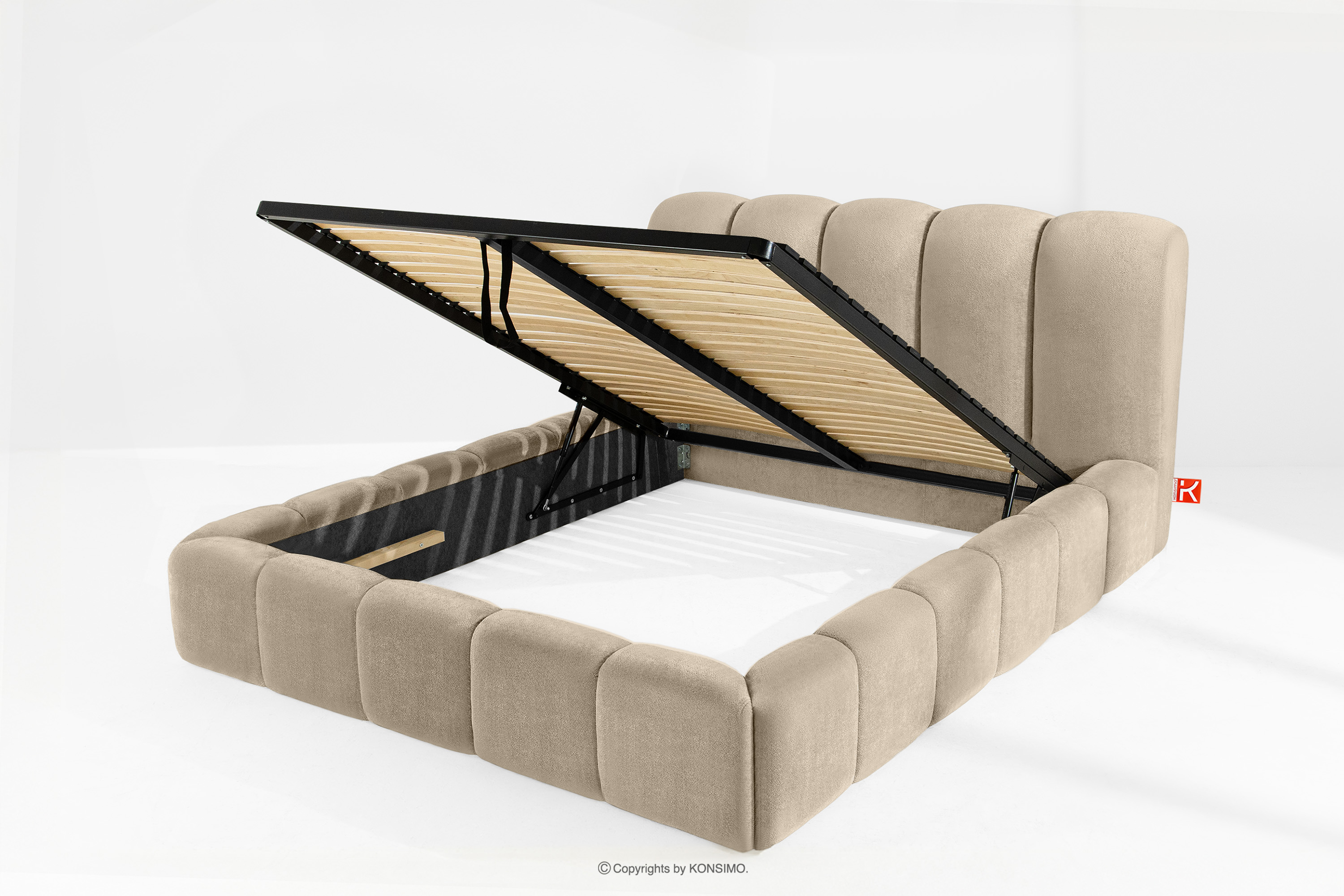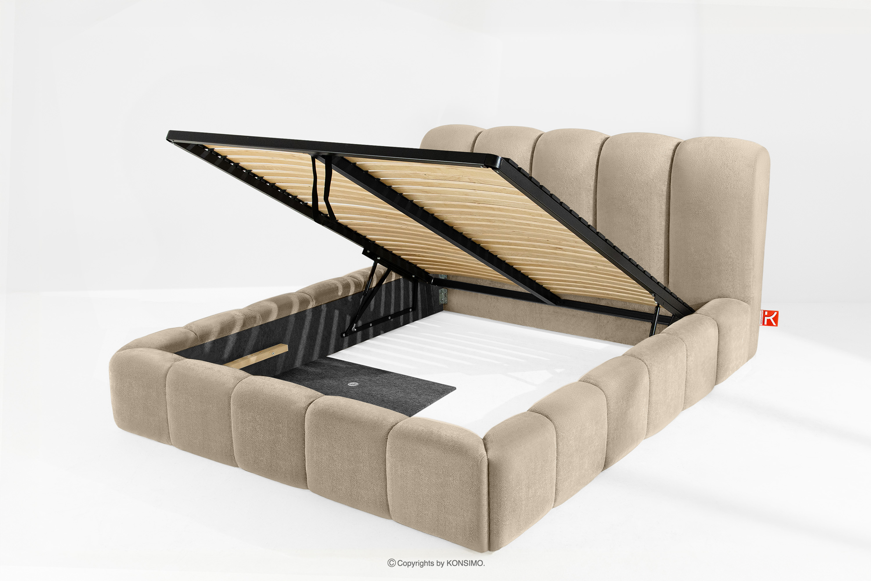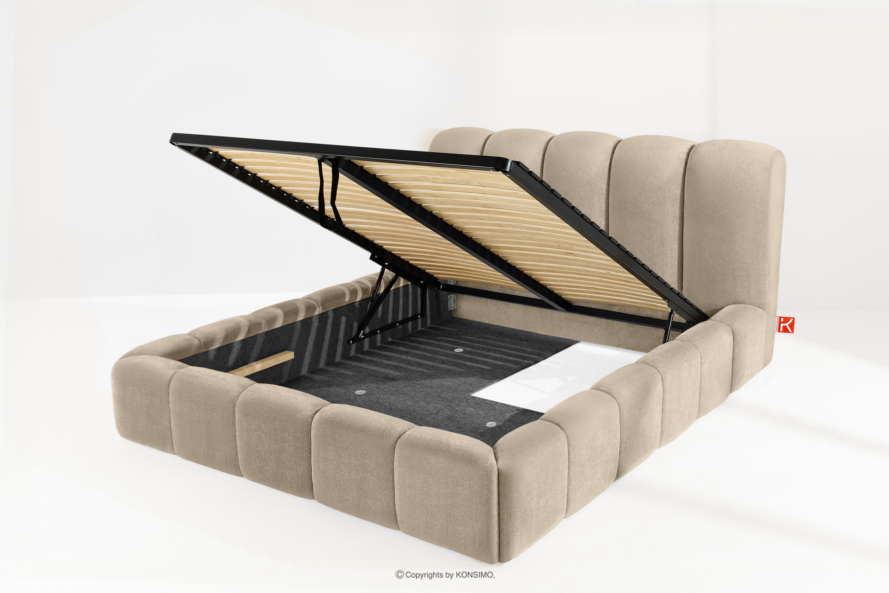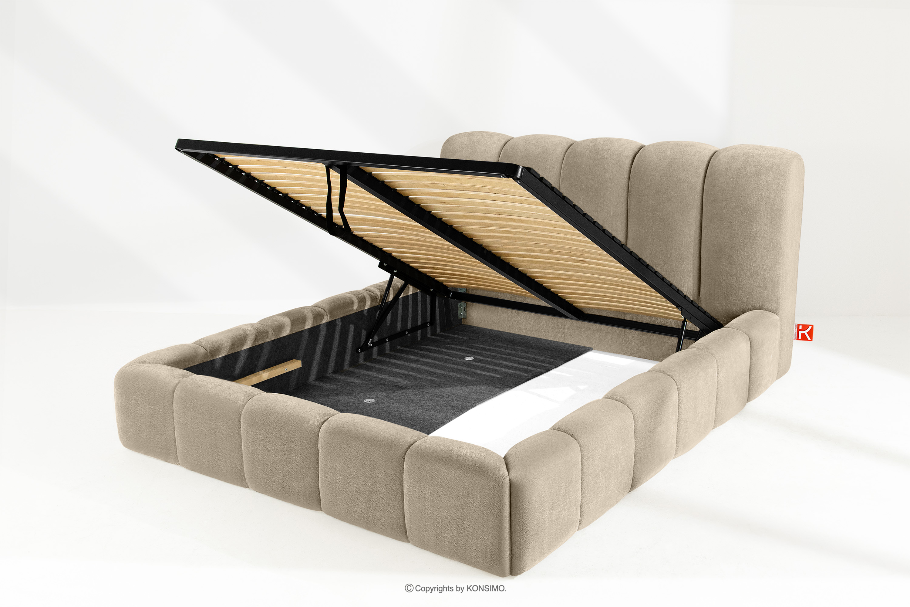 MERIDE Mehr aus der Kollektion Polsterbett 160 cm im Japandi-Stil mit Steppung graubeige- Farbe graubeige