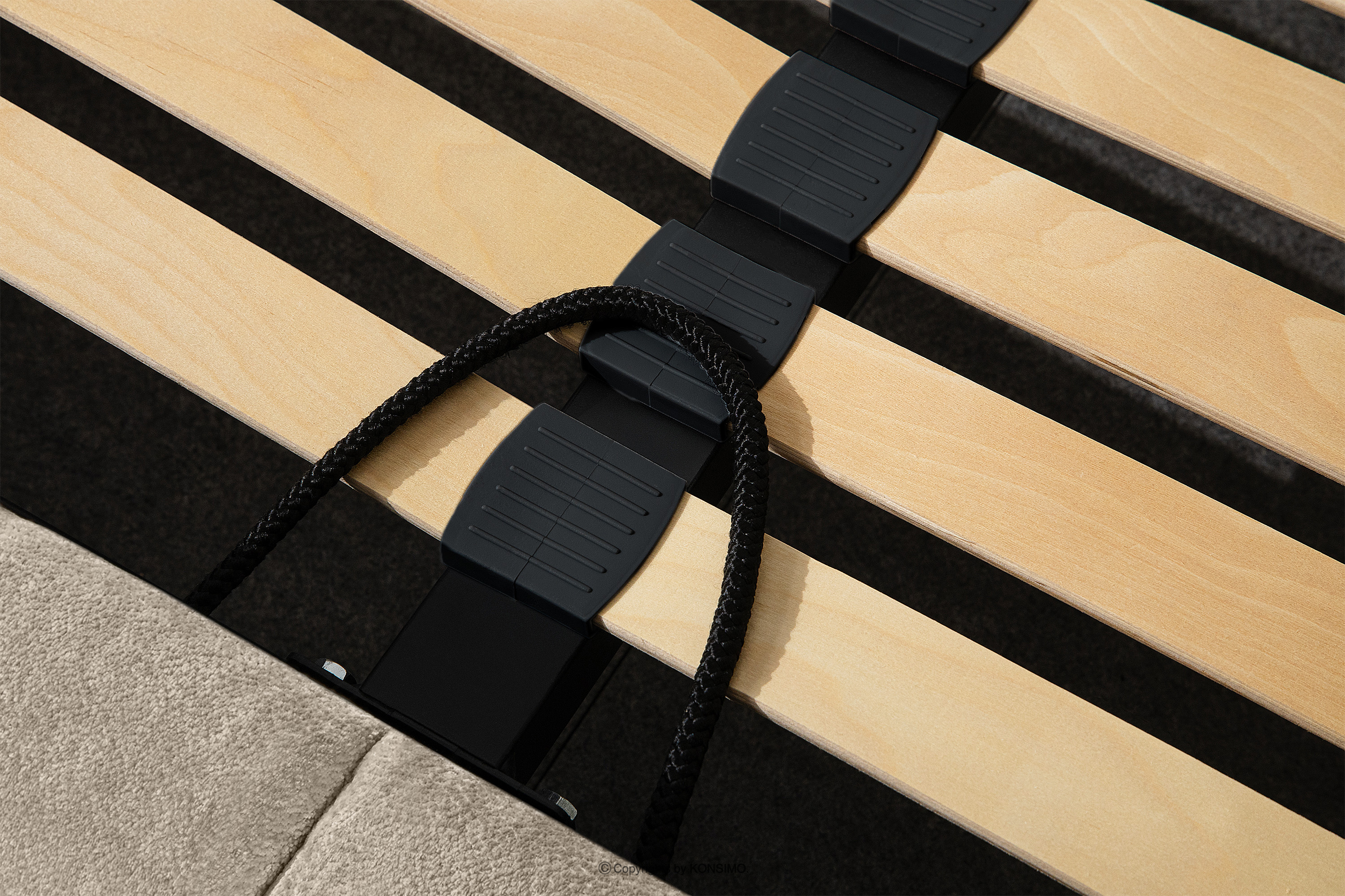 für das Produkt Polsterbett 160 cm im Japandi-Stil mit Steppung graubeige