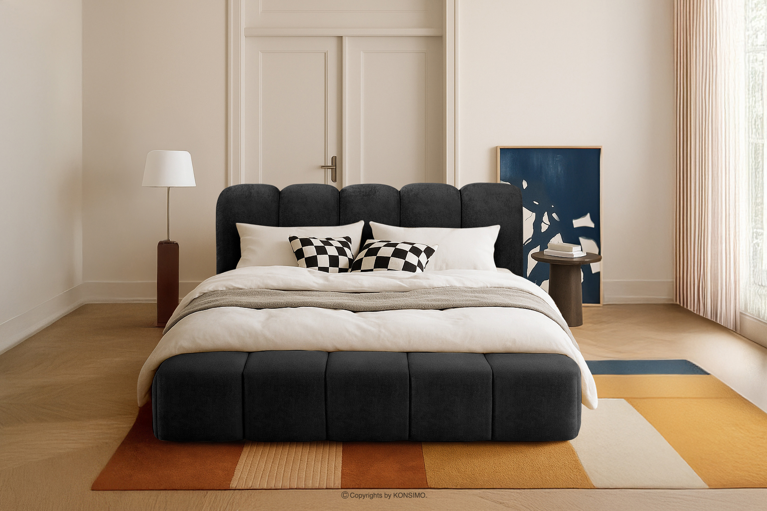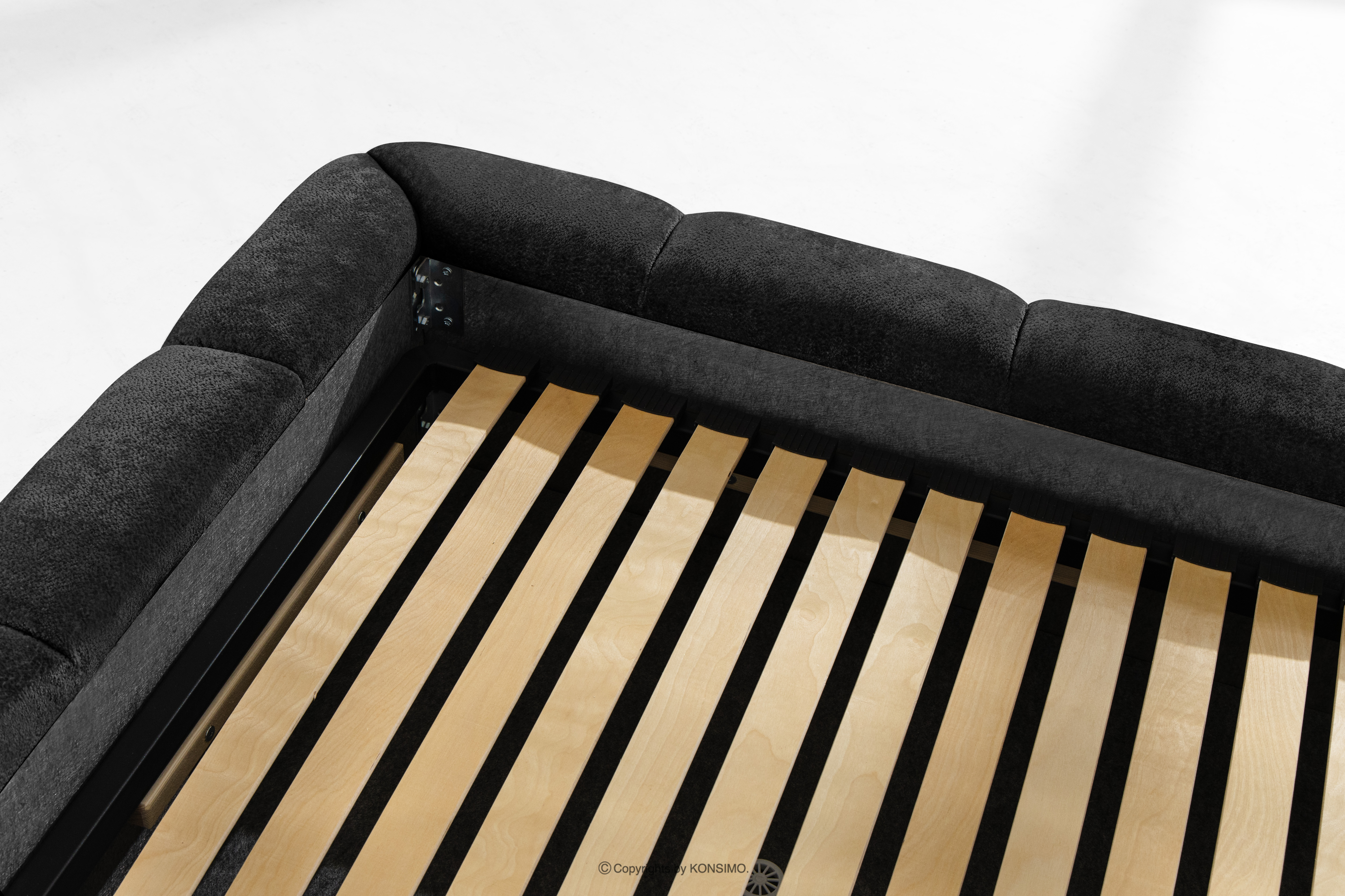 Polsterbett 180 cm mit Steppung anthrazit ist eine Hommage an die Schlichtheit, die nicht auf Raffinesse verzichtet und eine ideale Lösung für alle darstellt, die ihr Schlafzimmer in einen Raum der absoluten Ruhe und visuellen Harmonie verwandeln möchten. Eine wichtige Rolle spielt hier der sorgfältig ausgewählte Chenille-Stoff, dessen einzigartiges, flauschiges Garn dem Möbelstück eine unvergleichliche Tiefe und Eleganz verleiht, sodass das Bett nicht nur ein Ort zum Schlafen ist, sondern auch eine echte Zierde des Interieurs.