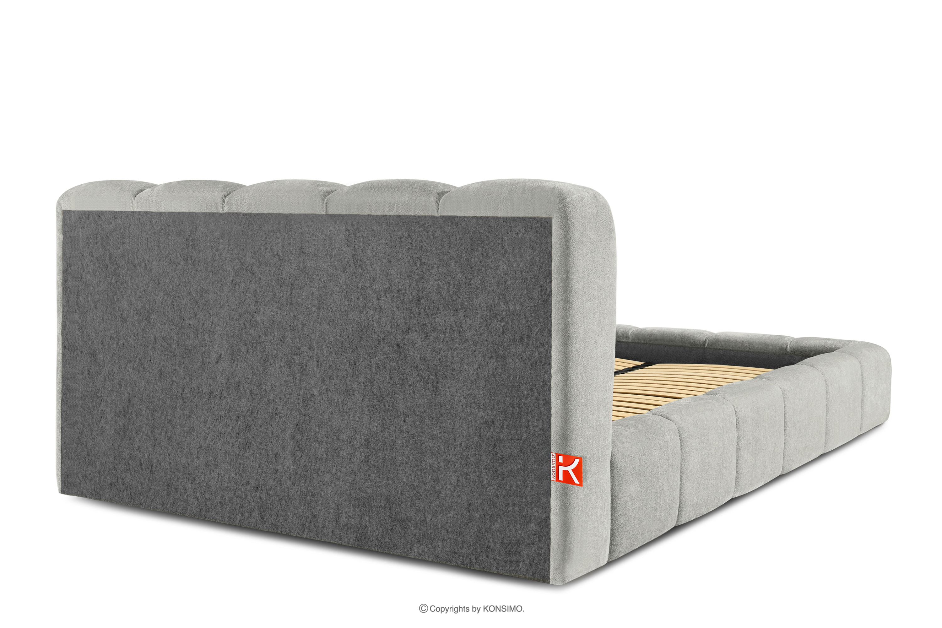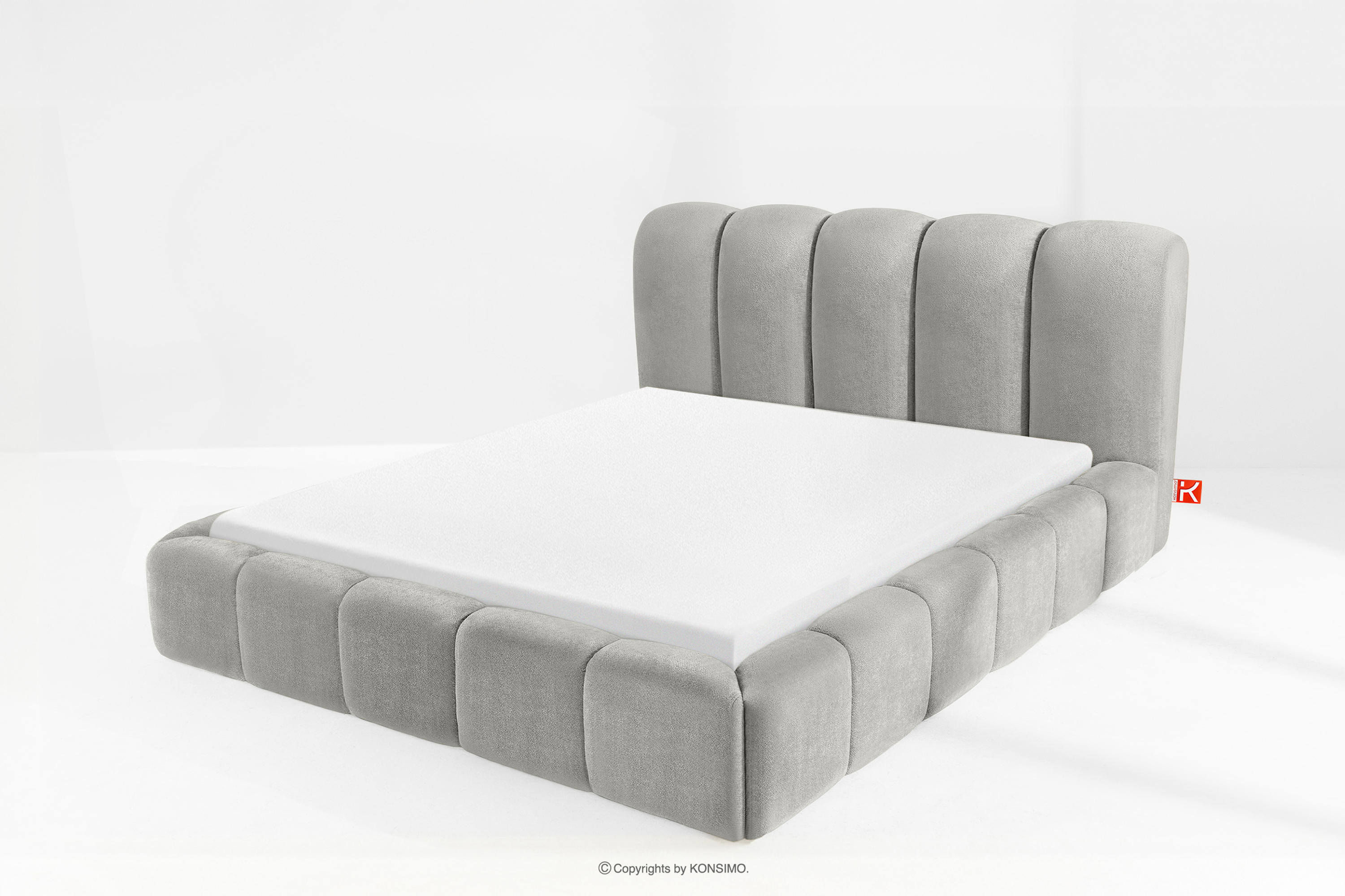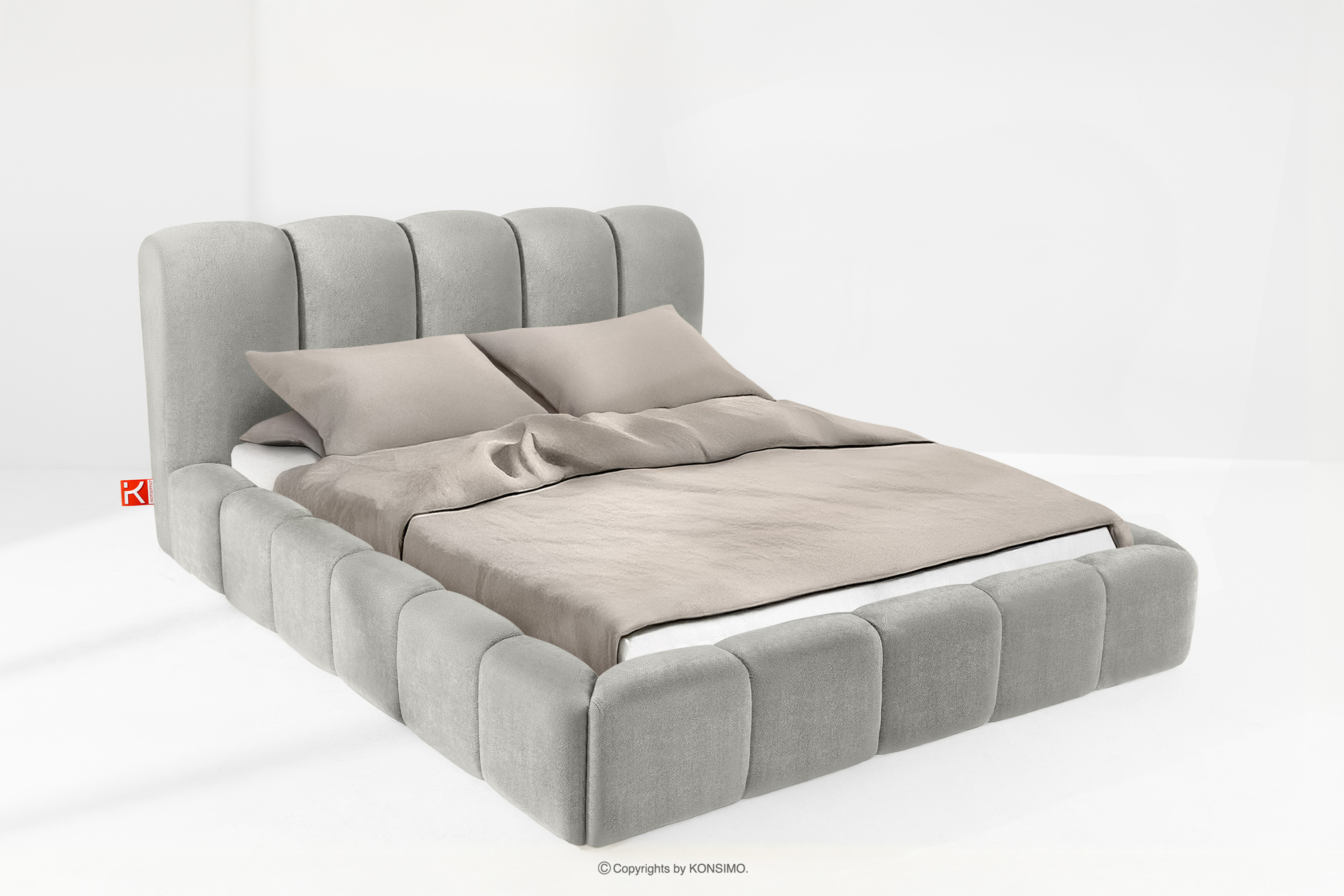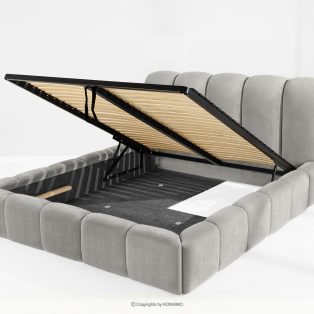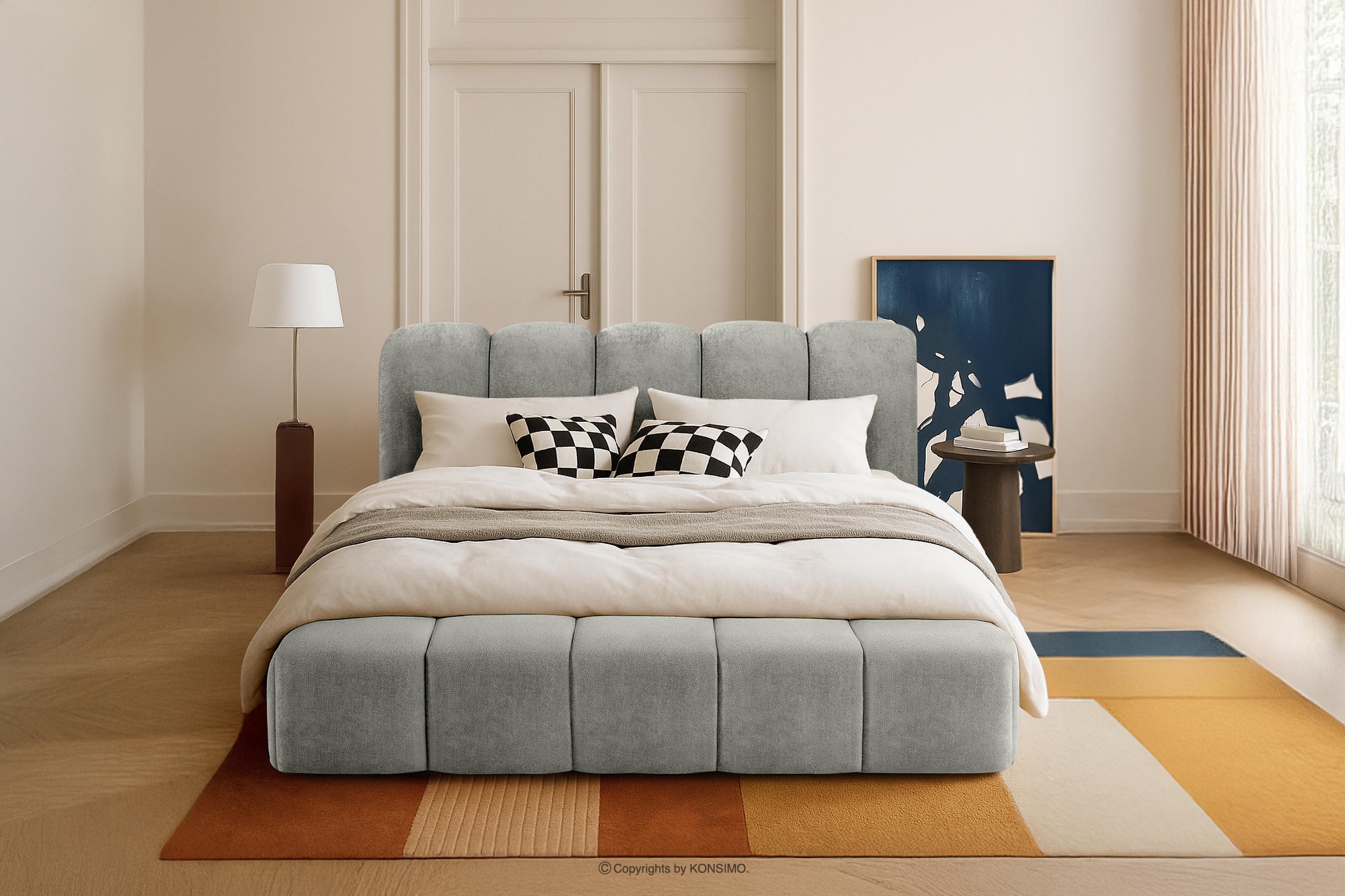 Polsterbett 180 cm mit Steppung hellgrau ist eine Hommage an die Schlichtheit, die nicht auf Raffinesse verzichtet und eine ideale Lösung für alle darstellt, die ihr Schlafzimmer in einen Raum der absoluten Ruhe und visuellen Harmonie verwandeln möchten. Eine wichtige Rolle spielt hier der sorgfältig ausgewählte Chenille-Stoff, dessen einzigartiges, flauschiges Garn dem Möbelstück eine unvergleichliche Tiefe und Eleganz verleiht, sodass das Bett nicht nur ein Ort zum Schlafen ist, sondern auch eine echte Zierde des Interieurs.