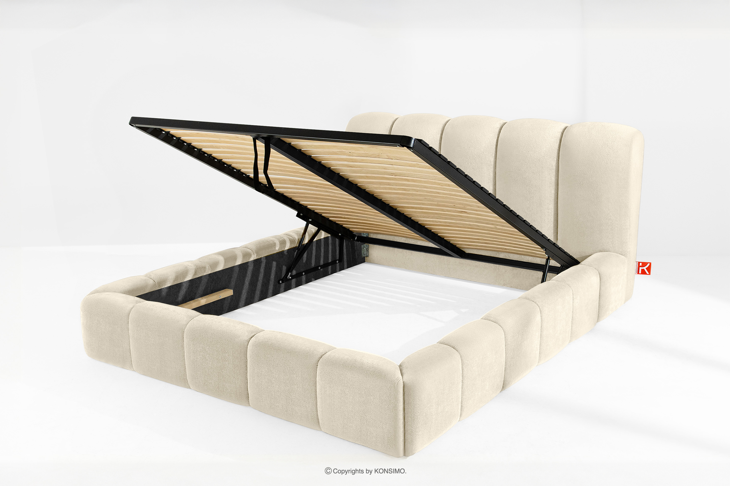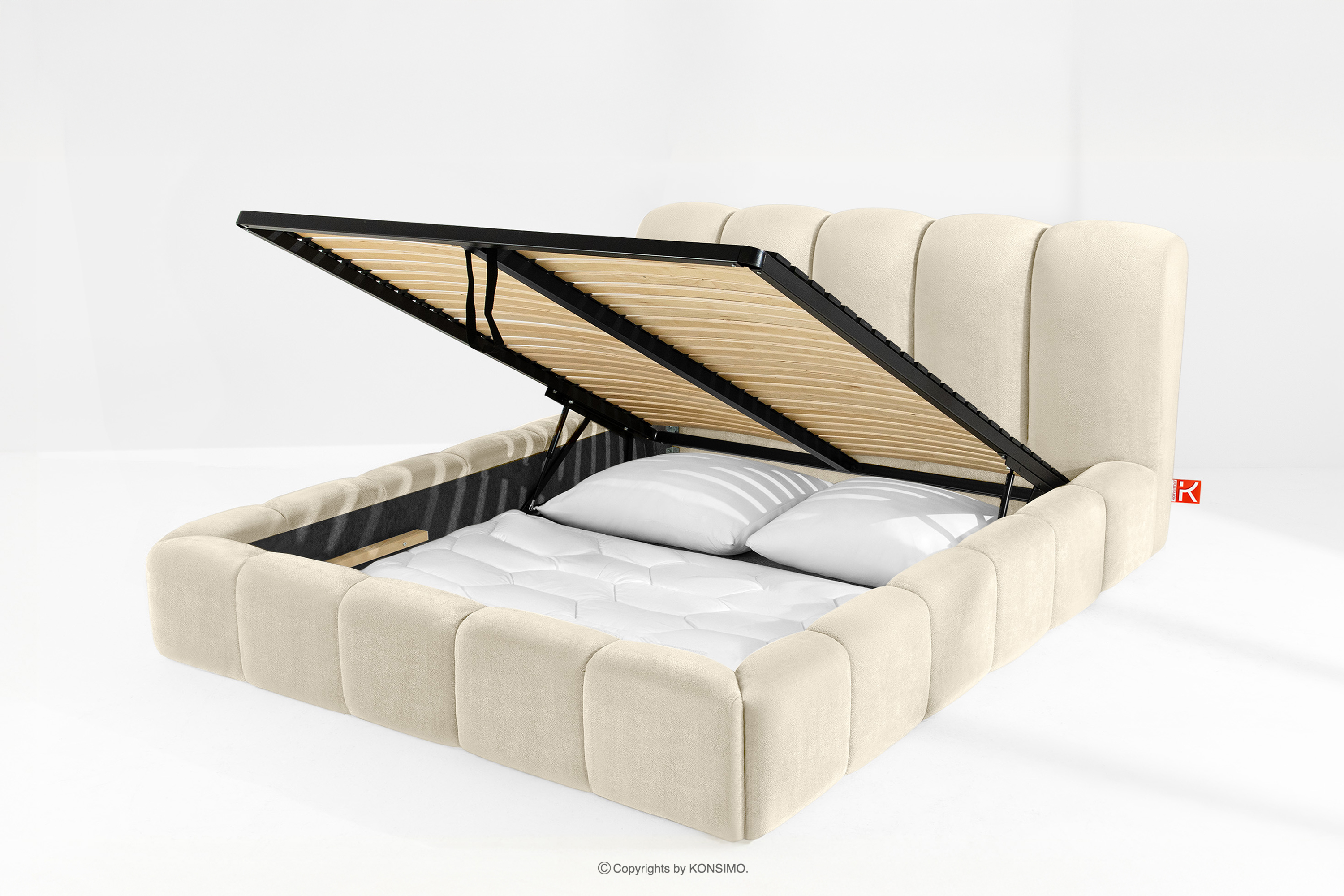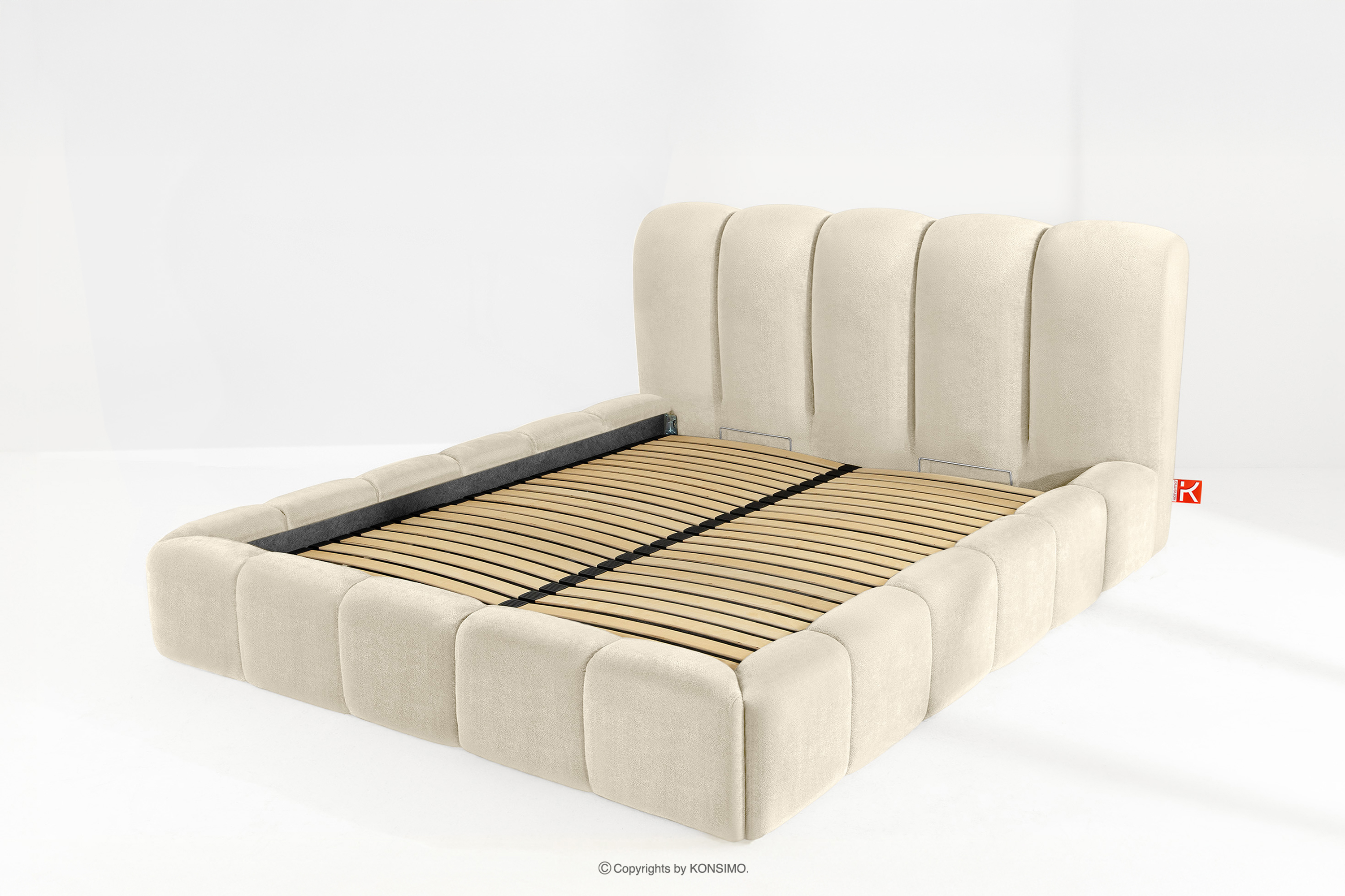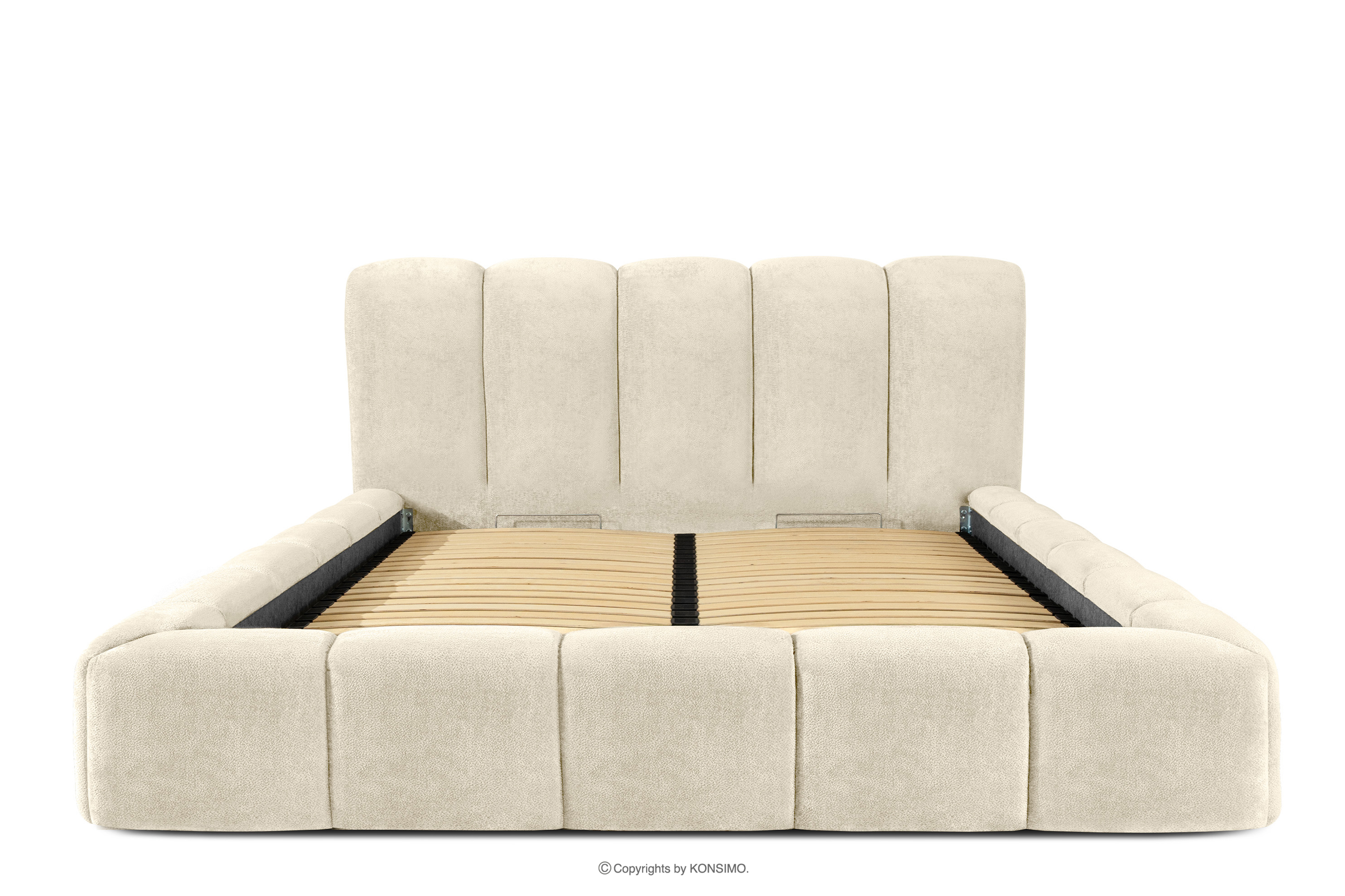 MERIDE Polsterbett 180 cm im Japandi-Stil mit ecrufarbener Steppung