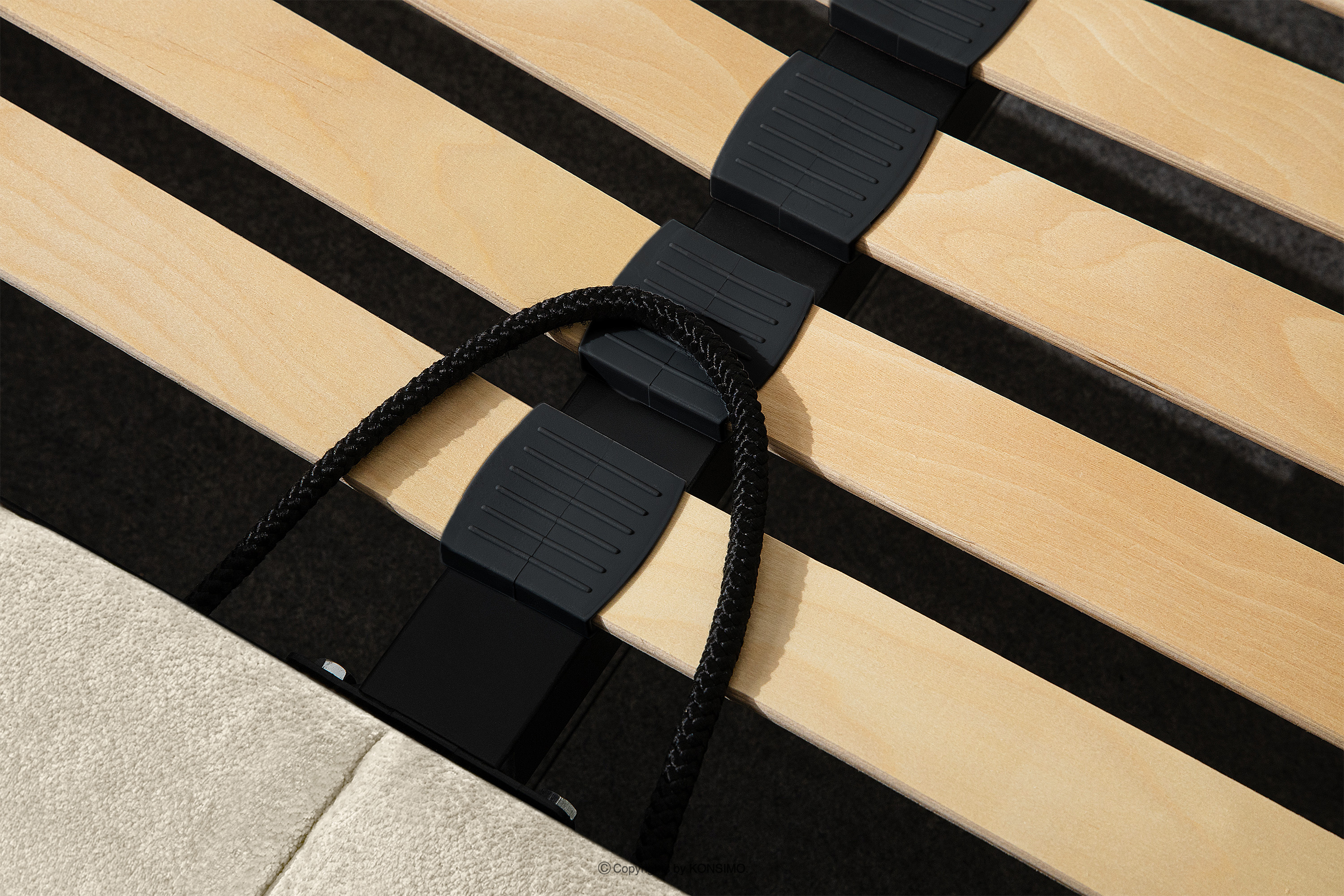 Polsterbett 200 cm im Japandi-Stil mit Steppung ecru ist eine Hommage an die Schlichtheit, die nicht auf Raffinesse verzichtet und eine ideale Lösung für alle darstellt, die ihr Schlafzimmer in einen Raum der absoluten Ruhe und visuellen Harmonie verwandeln möchten. Eine wichtige Rolle spielt hier der sorgfältig ausgewählte Chenille-Stoff, dessen einzigartiges, flauschiges Garn dem Möbelstück eine unvergleichliche Tiefe und Eleganz verleiht, sodass das Bett nicht nur ein Ort zum Schlafen ist, sondern auch eine echte Zierde des Interieurs.