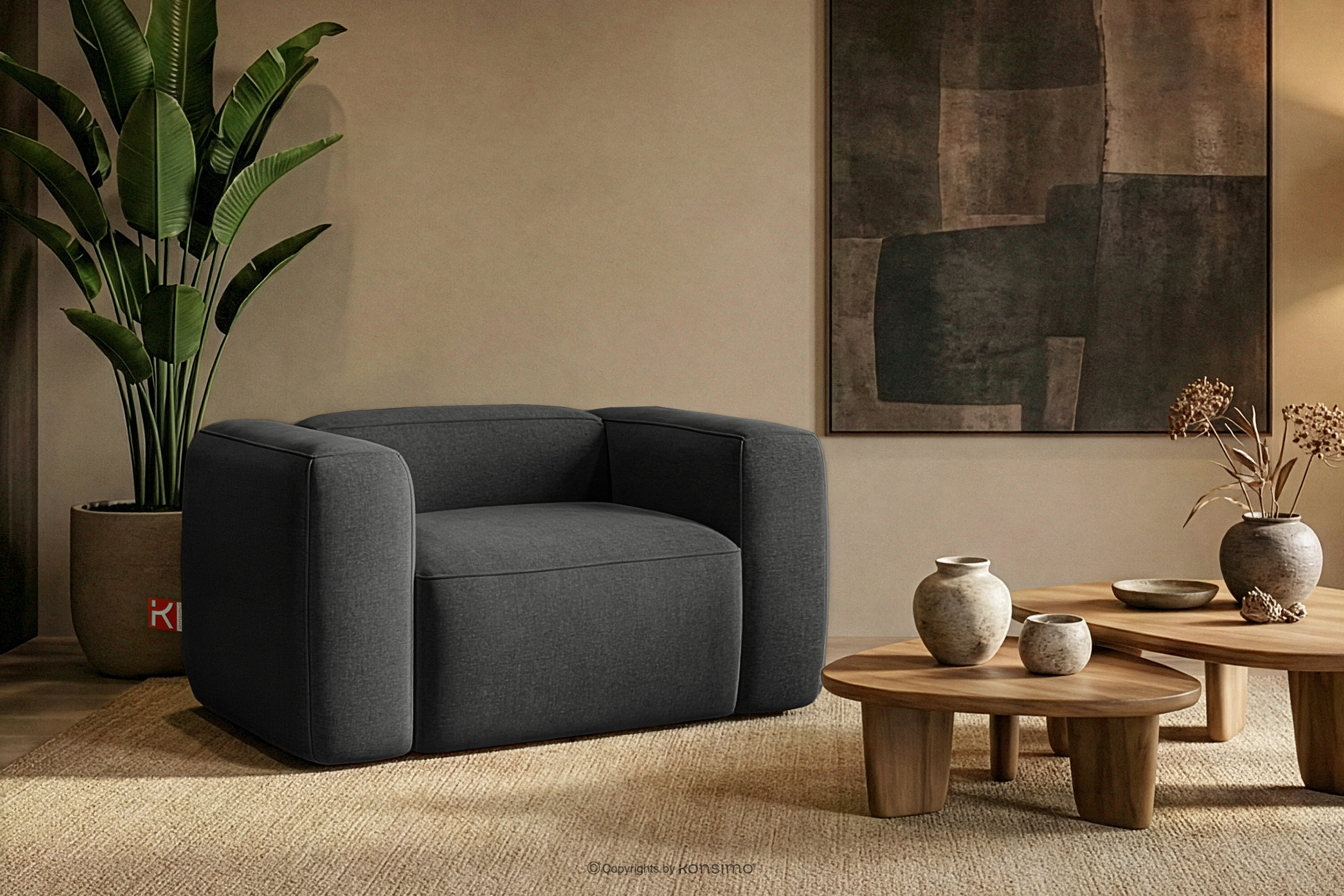 FUBBO Weicher Sessel aus anthrazitfarbenem Gewebestoff