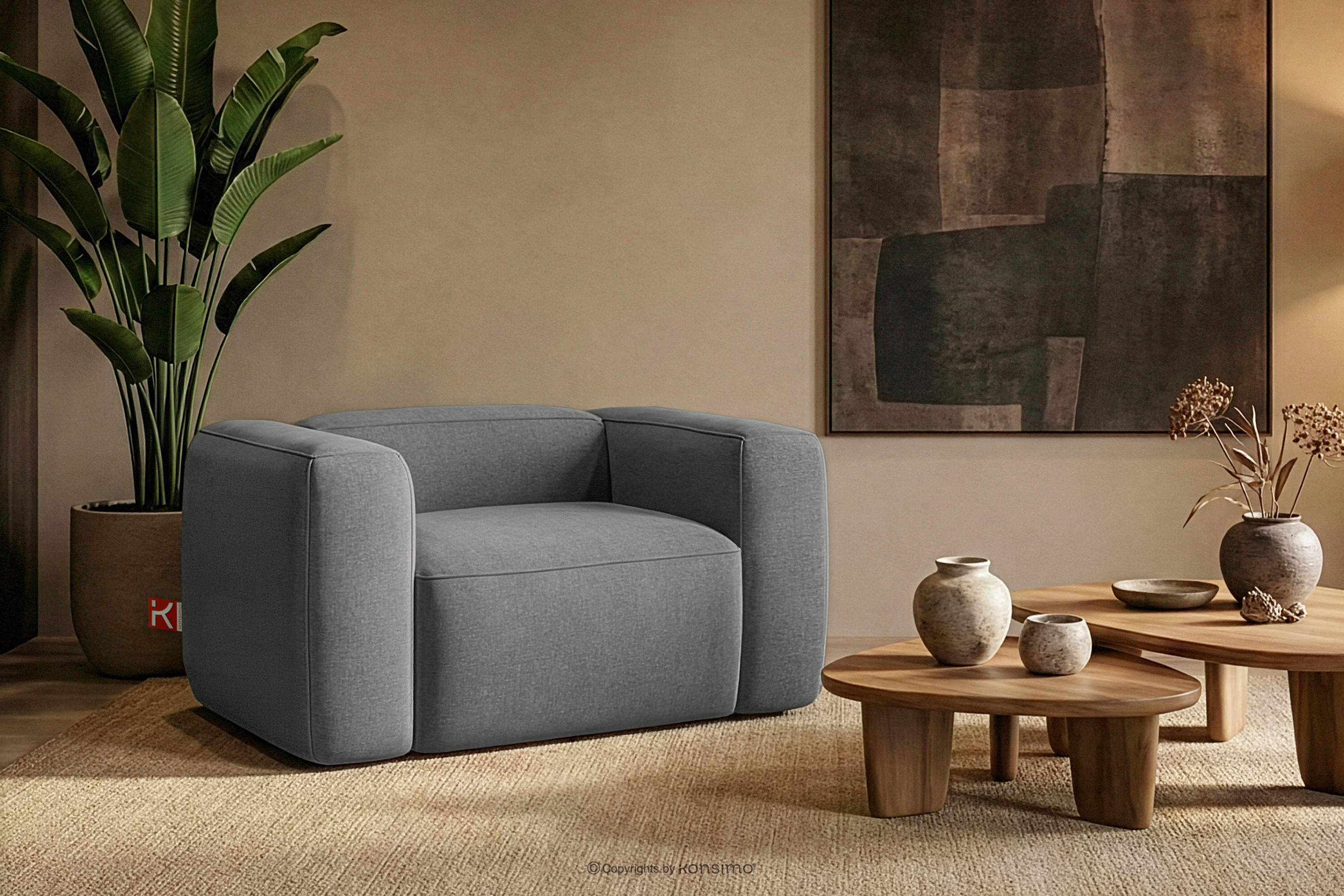 FUBBO Weicher Sessel aus grauem Gewebestoff