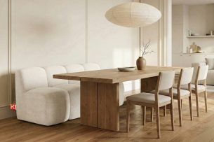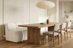 Gepolsterte Esszimmerbank 160 cm beiger Chenille-Stoff ist die Lösung für alle, die einen goldenen Mittelweg zwischen Stil und purer Funktionalität suchen. Anstelle von traditionellen Stühlen, die oft für visuelle Unruhe sorgen, bieten wir eine kompakte, modulare Form mit weichen Kanten. Das Fehlen scharfer Ecken ist nicht nur eine Frage der Ästhetik, sondern vor allem der Sicherheit – insbesondere in engen Durchgängen, Fluren oder Häusern, in denen Kinder spielen.