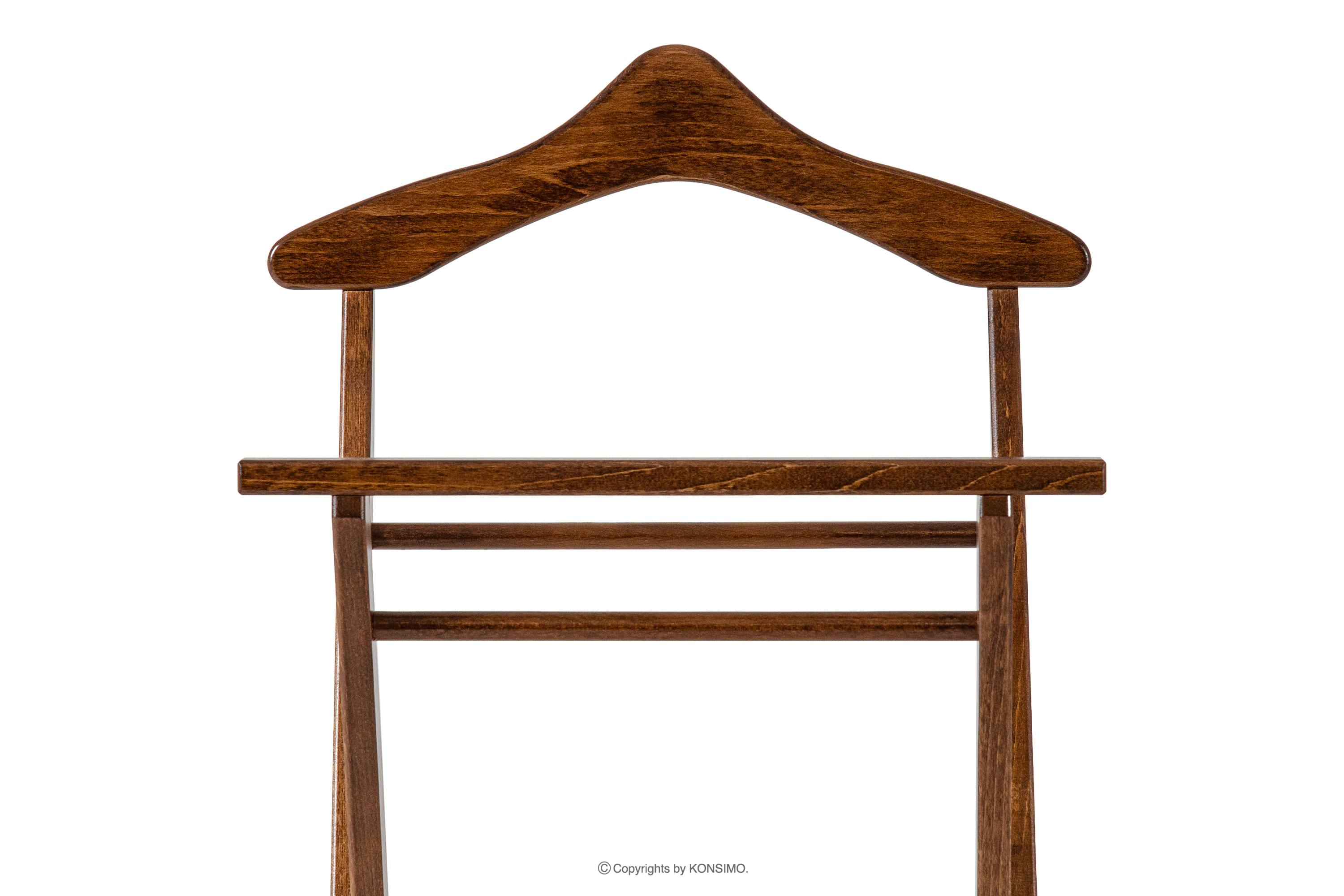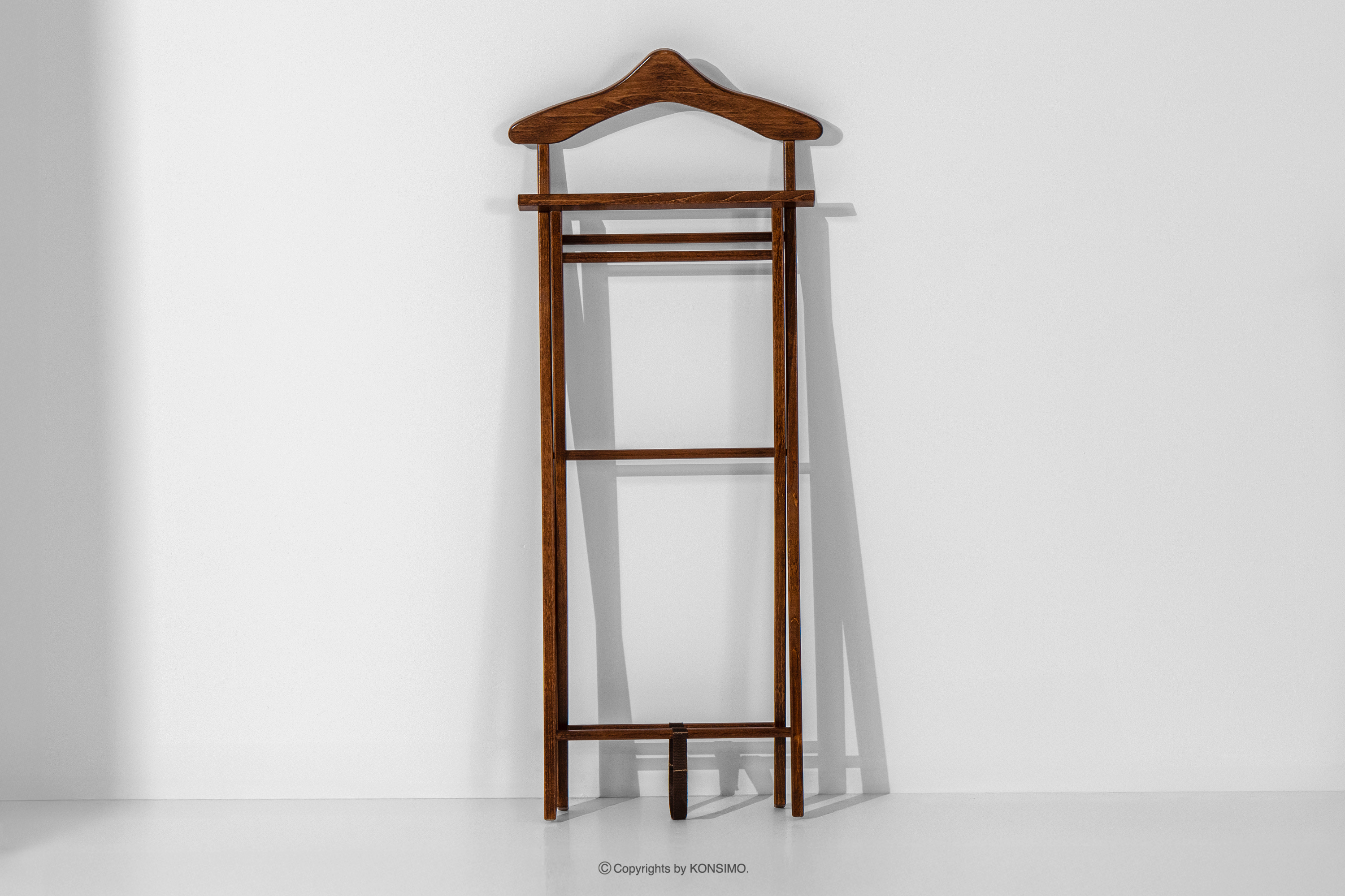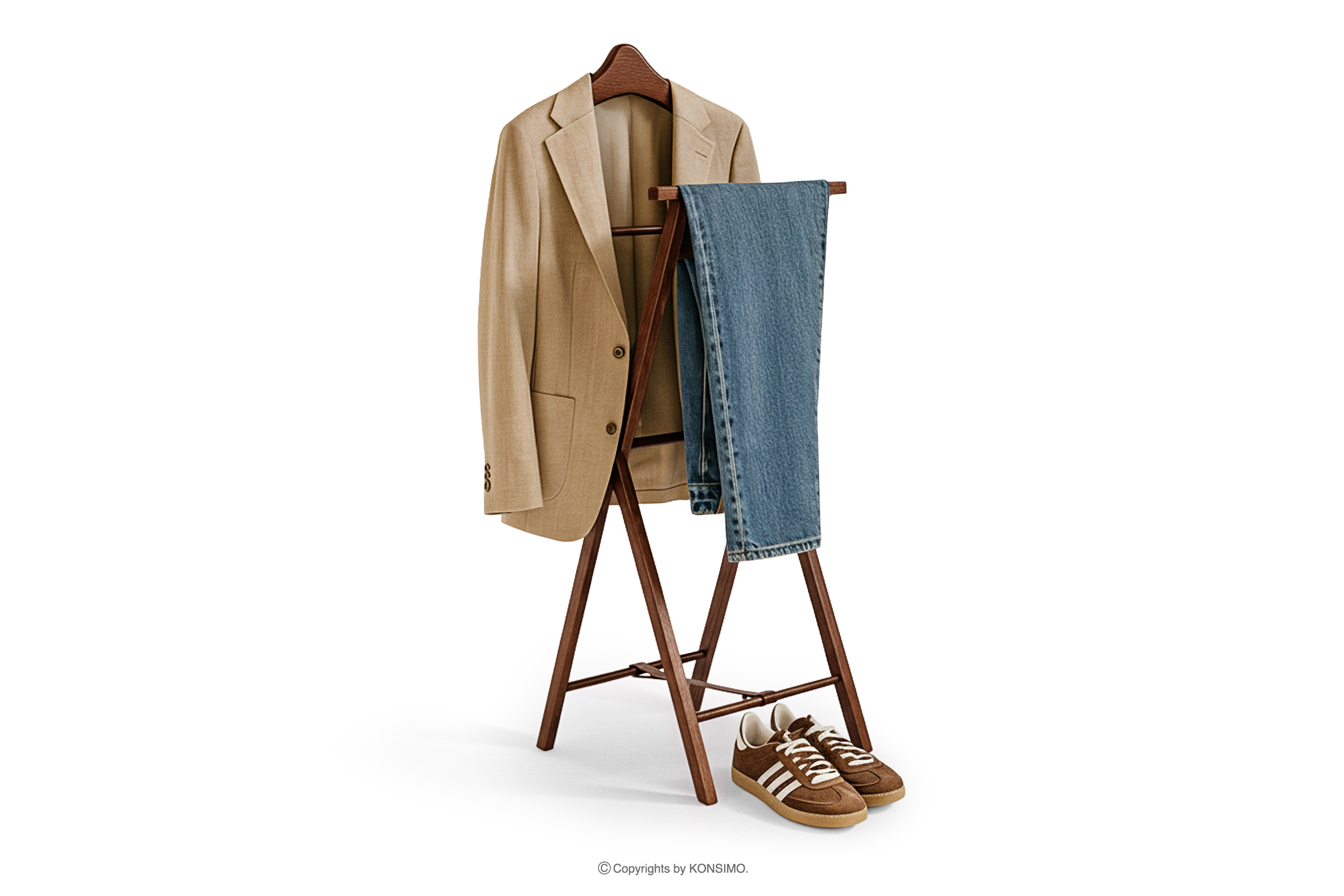 Anzugbügel aus braunem Buchenholz ist ein Produkt, das für die anspruchsvollsten Nutzer entwickelt wurde. Es eignet sich ideal für Schlafzimmer, Ankleidezimmer und elegante Flure und erfüllt nicht nur eine praktische, sondern auch eine dekorative Funktion. Der Kleiderbutler wurde aus hochwertigem Buchenholz gefertigt, das für seine Langlebigkeit, Widerstandsfähigkeit gegen mechanische Beschädigungen und sein dezentes, natürliches Aussehen geschätzt wird.