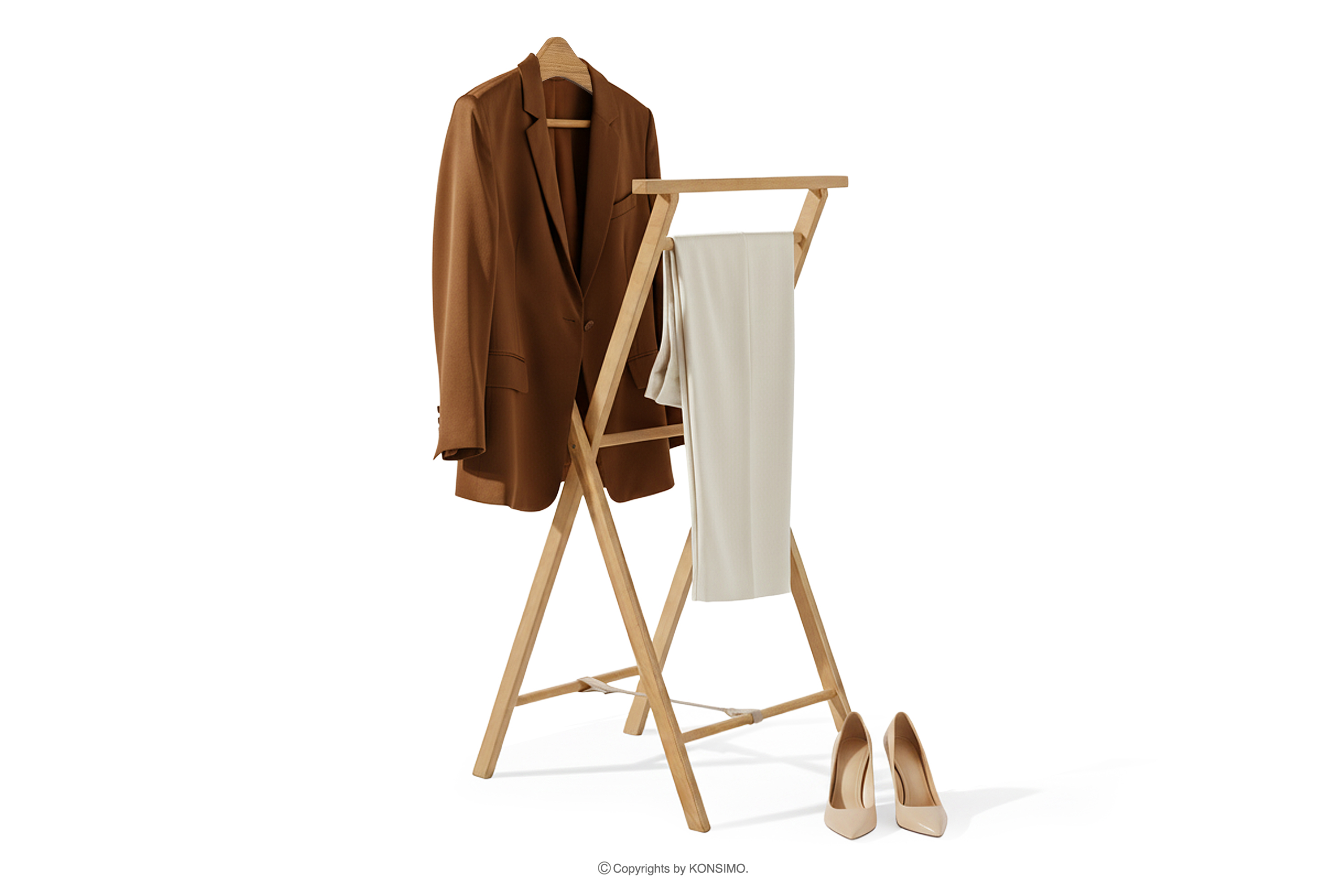 Kleiderbutler aus Buchenholz ist ein Produkt, das für die anspruchsvollsten Nutzer entwickelt wurde. Es eignet sich ideal für Schlafzimmer, Ankleidezimmer und elegante Flure und erfüllt nicht nur eine praktische, sondern auch eine dekorative Funktion. Der Kleiderbutler wurde aus hochwertigem Buchenholz gefertigt, das für seine Langlebigkeit, Widerstandsfähigkeit gegen mechanische Beschädigungen und sein dezentes, natürliches Aussehen geschätzt wird.