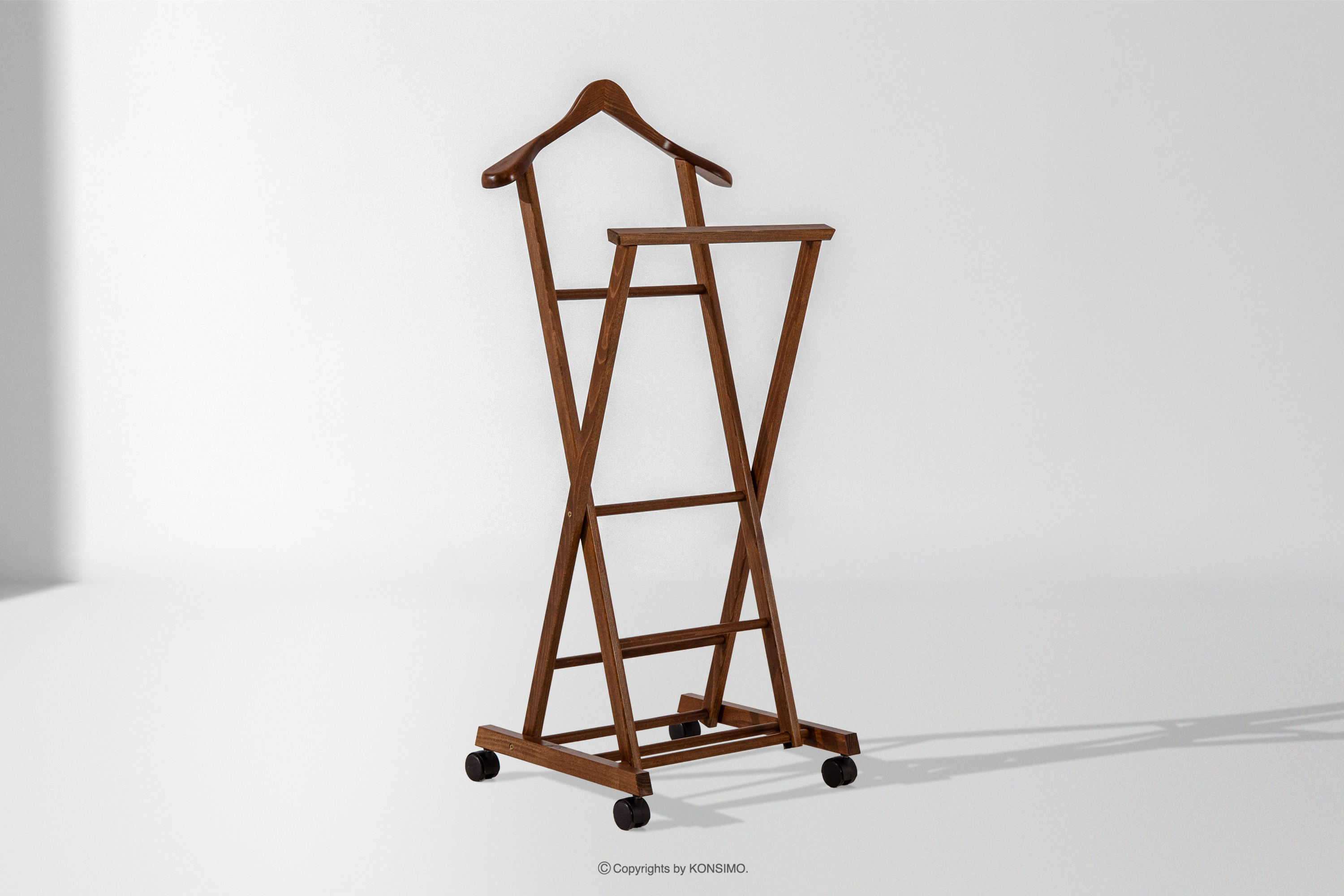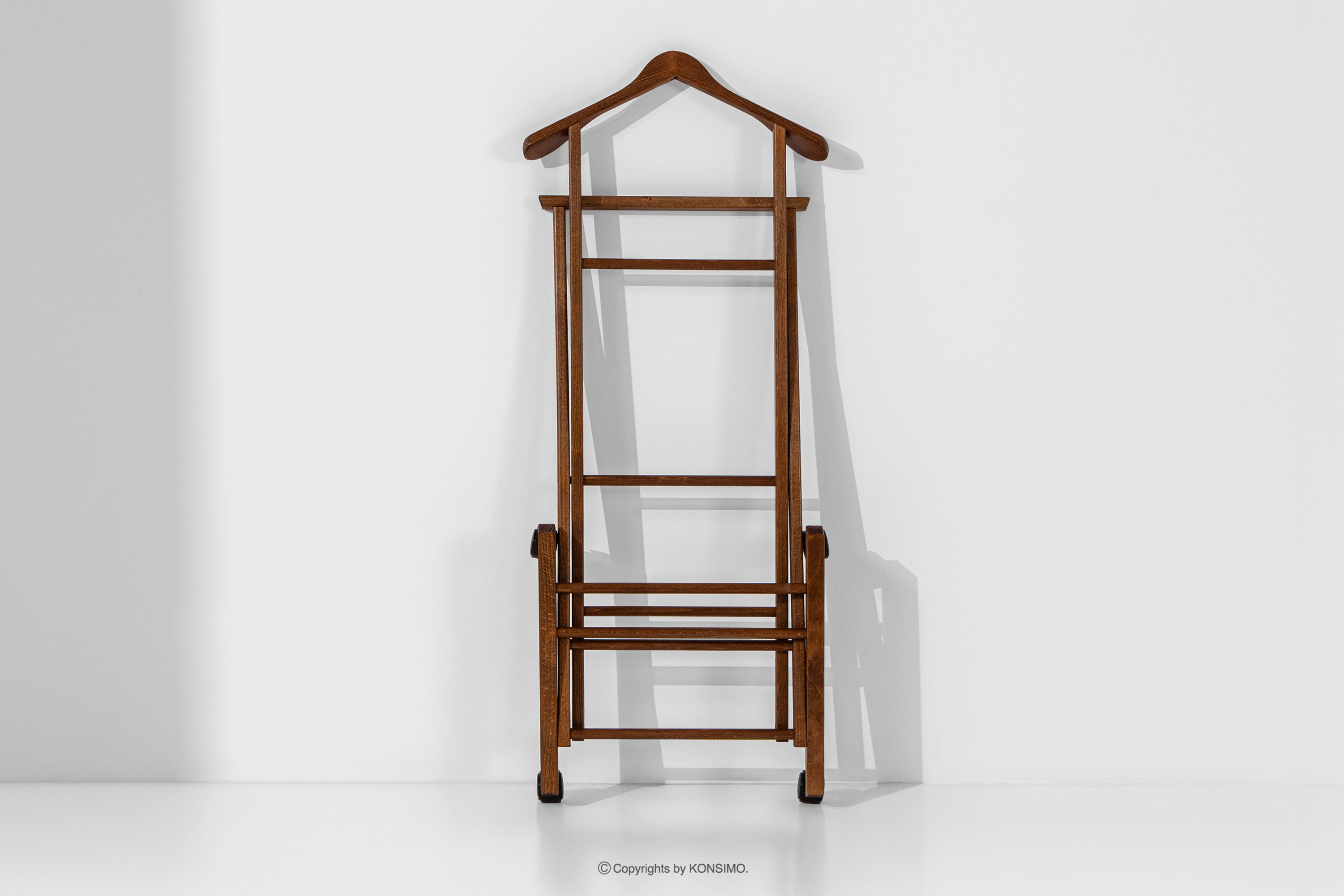 Holzständer für Anzüge braun ist ein Produkt, das für die anspruchsvollsten Nutzer entwickelt wurde. Es eignet sich ideal für Schlafzimmer, Ankleidezimmer und elegante Flure und erfüllt nicht nur eine praktische, sondern auch eine dekorative Funktion. Der Kleiderbutler wurde aus hochwertigem Buchenholz gefertigt, das für seine Langlebigkeit, Widerstandsfähigkeit gegen mechanische Beschädigungen und sein dezentes, natürliches Aussehen geschätzt wird.