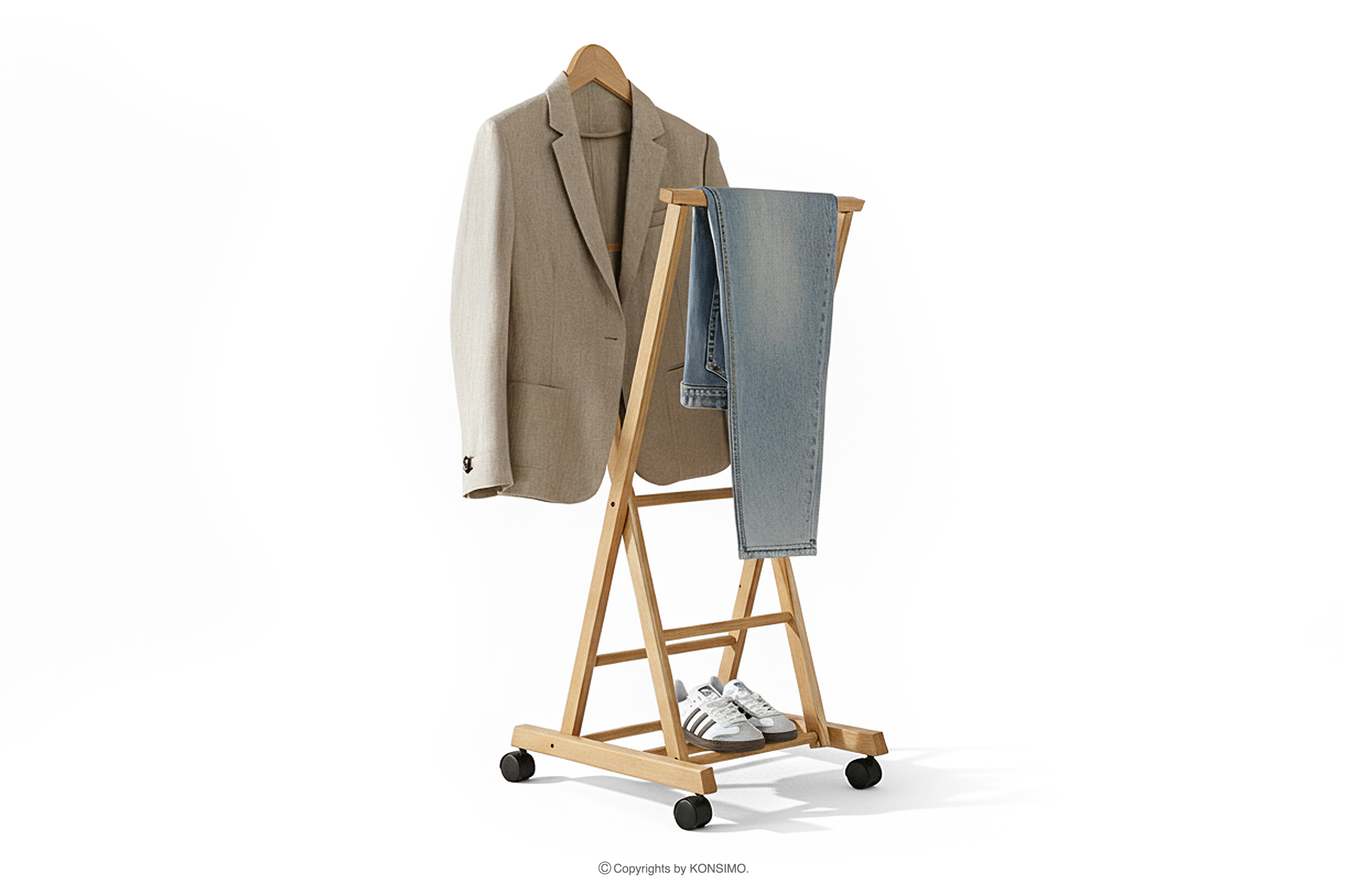 Kleiderbutler aus Buchenholz ist ein Produkt, das für die anspruchsvollsten Nutzer entwickelt wurde. Es eignet sich ideal für Schlafzimmer, Ankleidezimmer und elegante Flure und erfüllt nicht nur eine praktische, sondern auch eine dekorative Funktion. Der Kleiderbutler wurde aus hochwertigem Buchenholz gefertigt, das für seine Langlebigkeit, Widerstandsfähigkeit gegen mechanische Beschädigungen und sein dezentes, natürliches Aussehen geschätzt wird.