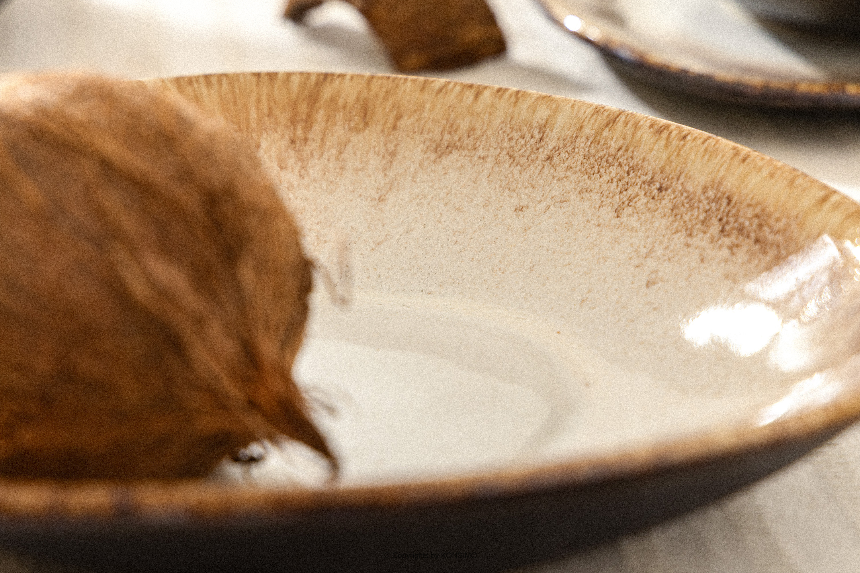 PRIMA Handglasierte tiefe Servierplatte hellbeige