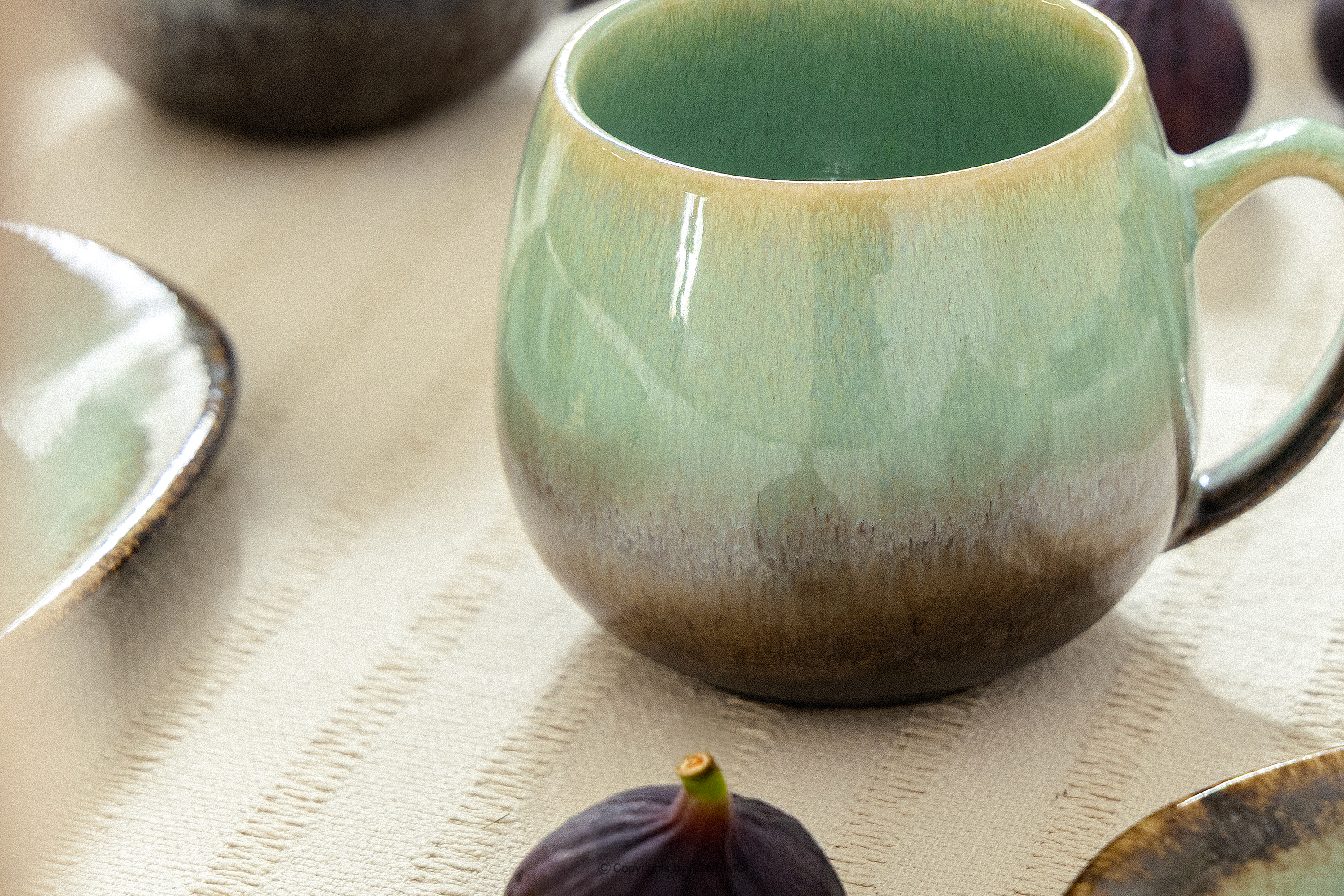Faßbecher handglasiert salbeifarben – die Essenz roher Schönheit und moderner Eleganz, eingefangen in der Form von Gebrauchskeramik. PRIMA wurde für diejenigen geschaffen, die Authentizität und außergewöhnliches Design schätzen, und ist eine Hommage an den Loft-Stil, bei dem Raum, Licht und natürliche Materialien im Vordergrund stehen. Das dominierende helle, gebrochene Beige ist die Farbe der Erde, des Sandes und des Natursteins.