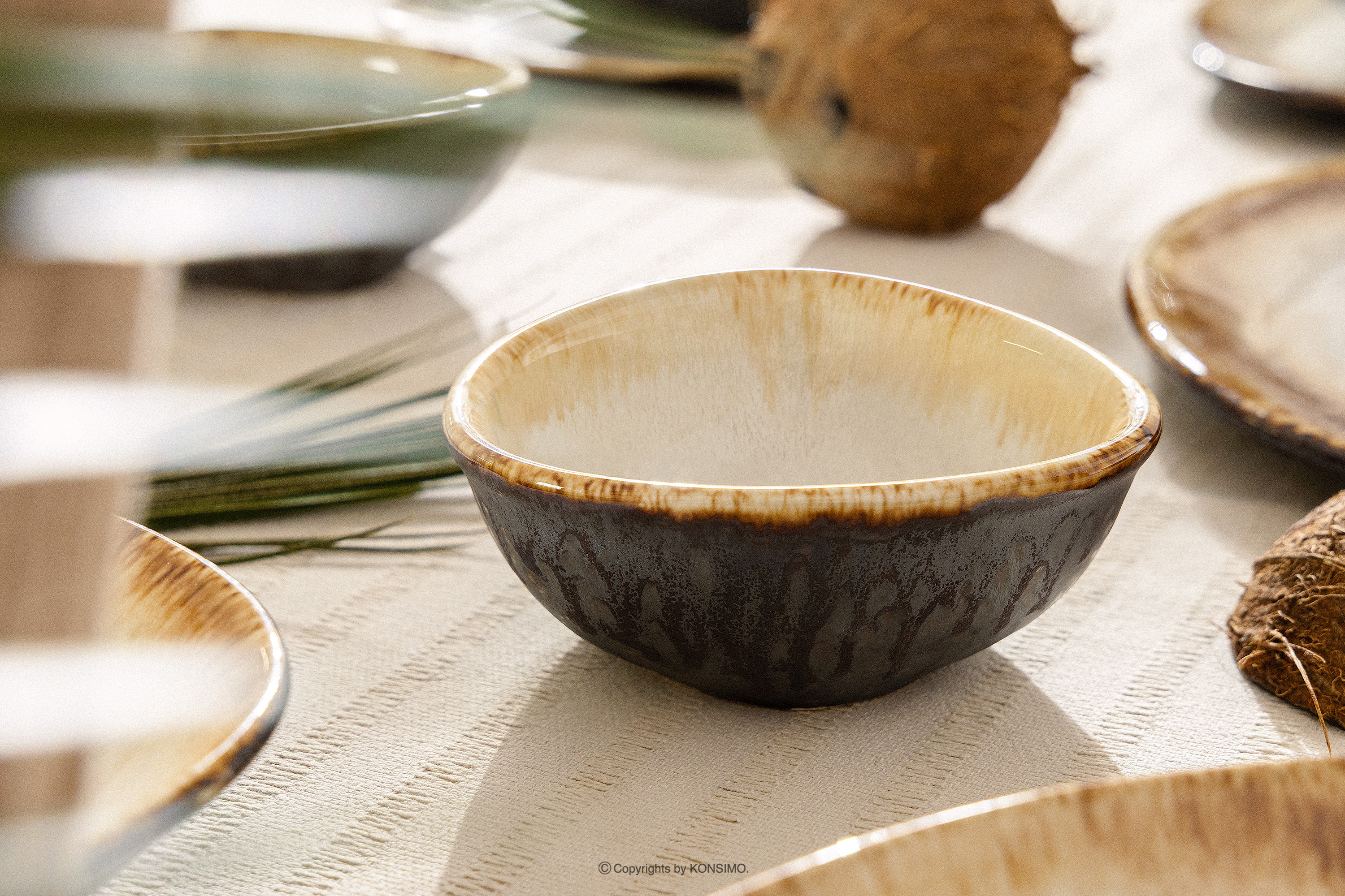Handglasierte Keramikschale 6 Stück hellbeige – die Essenz roher Schönheit und moderner Eleganz, eingefangen in der Form von Gebrauchskeramik. PRIMA wurde für diejenigen geschaffen, die Authentizität und außergewöhnliches Design schätzen, und ist eine Hommage an den Loft-Stil, bei dem Raum, Licht und natürliche Materialien im Vordergrund stehen. Das dominierende helle, gebrochene Beige ist die Farbe der Erde, des Sandes und des Natursteins.