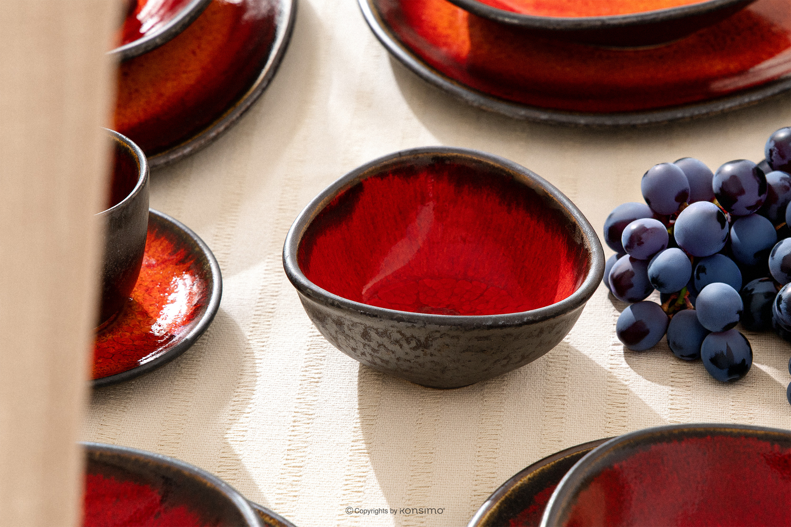 Handglasierte Keramik Salatschüssel 6 Stück rot – die Essenz roher Schönheit und moderner Eleganz, eingefangen in der Form von Gebrauchskeramik. PRIMA wurde für diejenigen geschaffen, die Authentizität und außergewöhnliches Design schätzen, und ist eine Hommage an den Loft-Stil, bei dem Raum, Licht und natürliche Materialien im Vordergrund stehen. Das dominierende helle, gebrochene Beige ist die Farbe der Erde, des Sandes und des Natursteins.