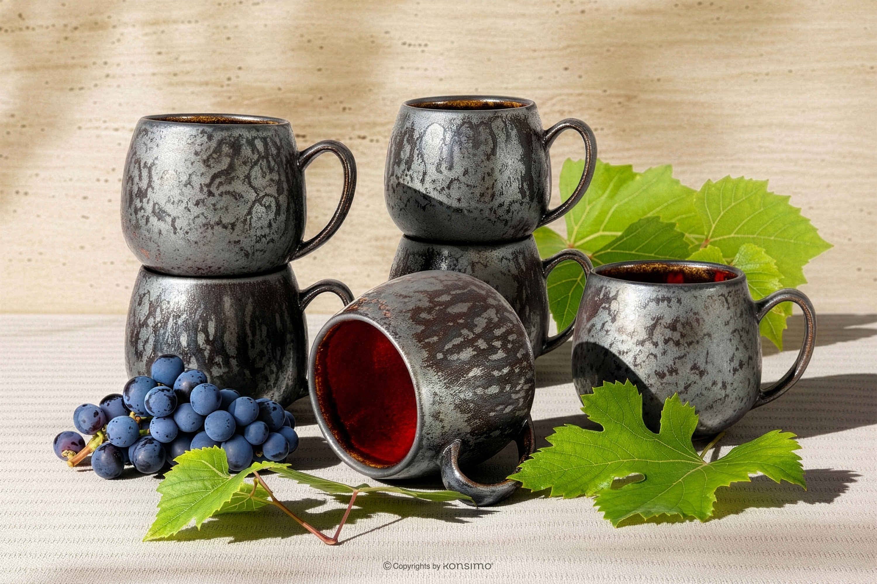 Handglasierter Keramikbecher 6 Stück rot – die Essenz roher Schönheit und moderner Eleganz, eingefangen in der Form von Gebrauchskeramik. PRIMA wurde für diejenigen geschaffen, die Authentizität und außergewöhnliches Design schätzen, und ist eine Hommage an den Loft-Stil, bei dem Raum, Licht und natürliche Materialien im Vordergrund stehen. Das dominierende helle, gebrochene Beige ist die Farbe der Erde, des Sandes und des Natursteins.