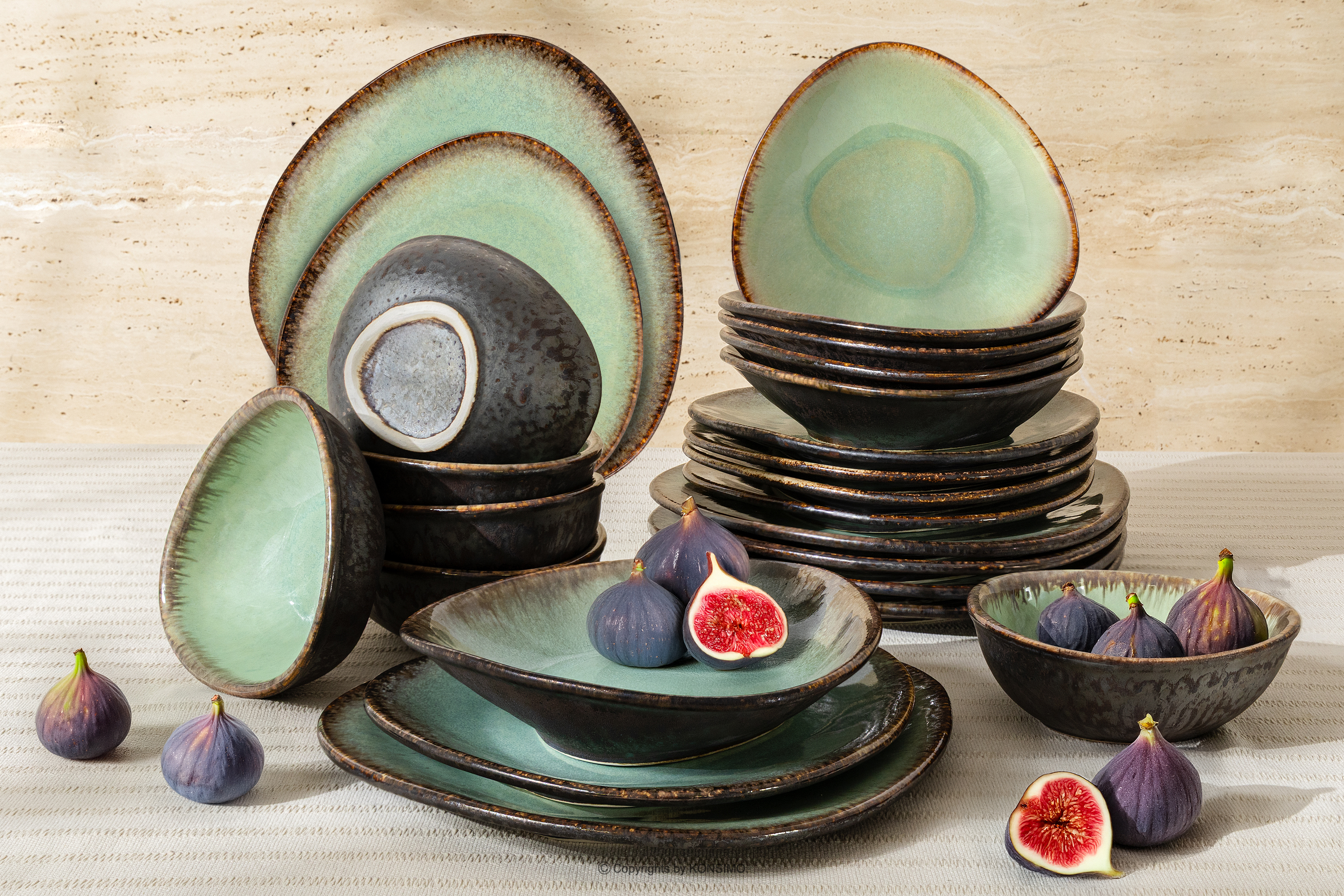 PRIMA Handglasiertes Keramik-Geschirrset 6 Personen (24 tlg.) salbeifarben