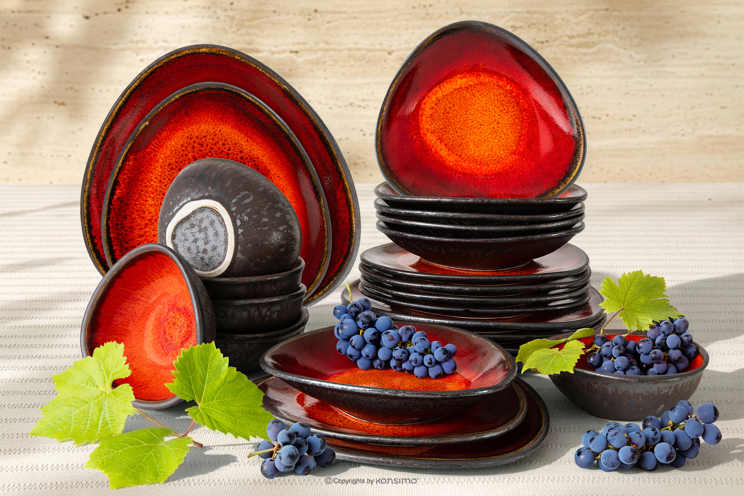 für das Produkt Handglasiertes Keramik-Geschirrset 6 Personen (24 tlg.) rot