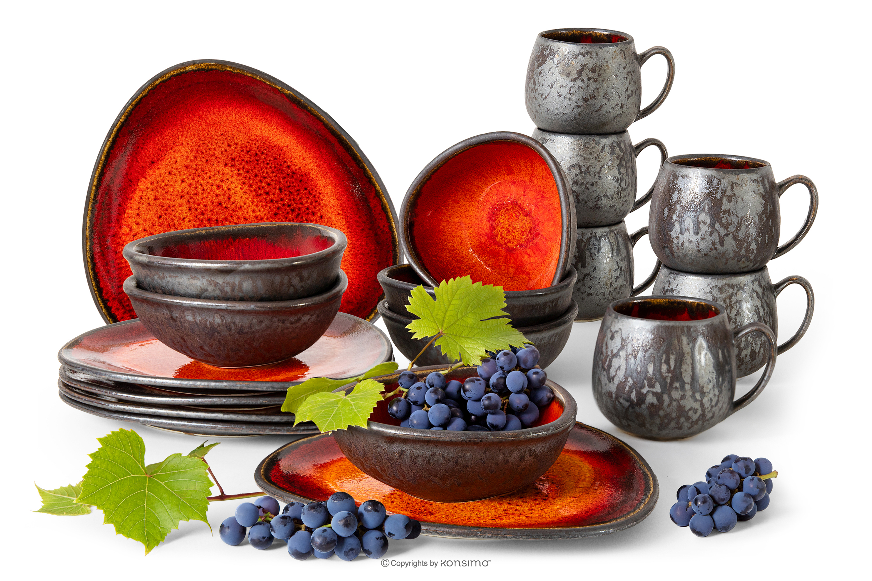 Handglasiertes Frühstücksset 6 Personen (18 tlg.) rot