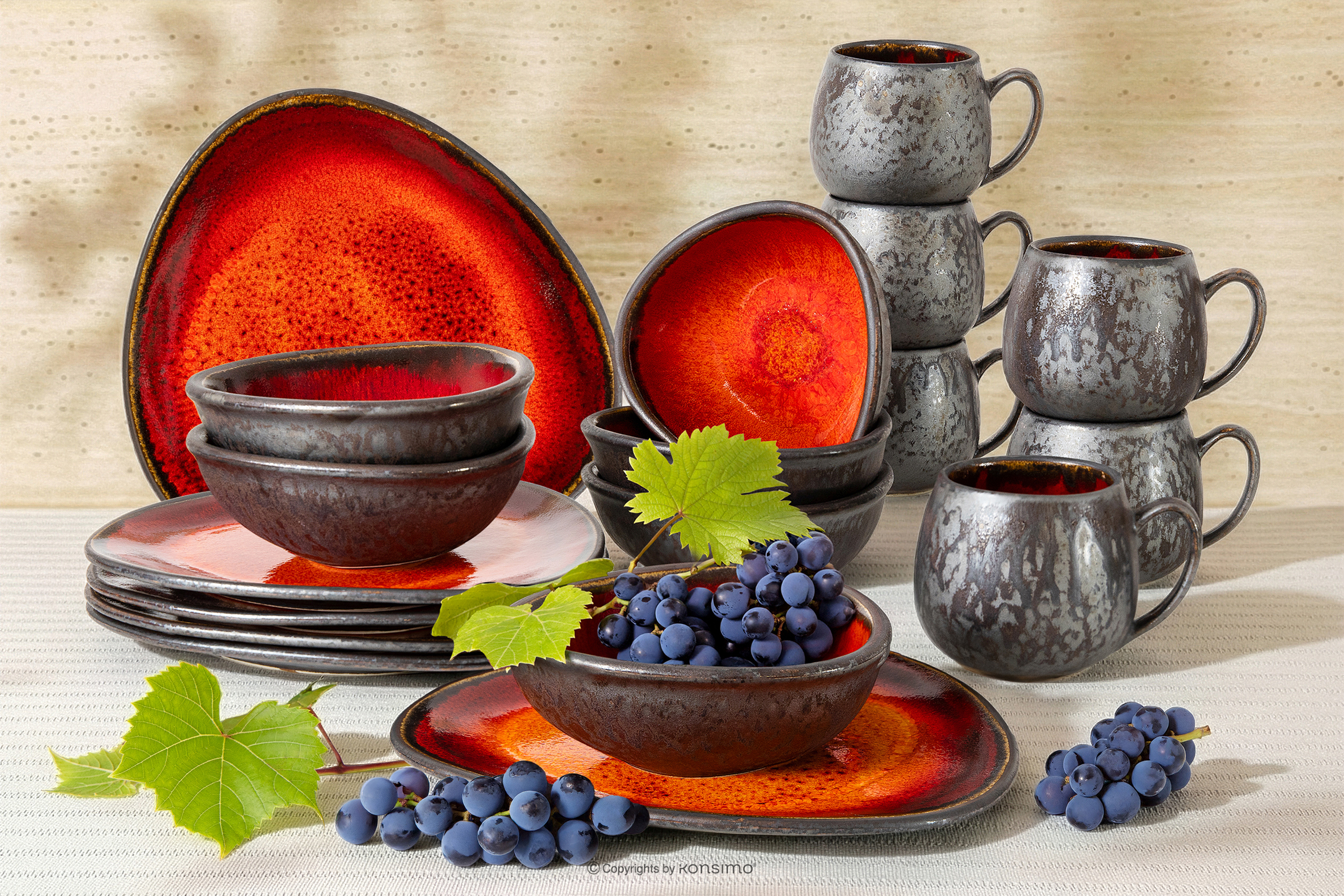 PRIMA Handglasiertes Frühstücksset 6 Personen (18 tlg.) rot
