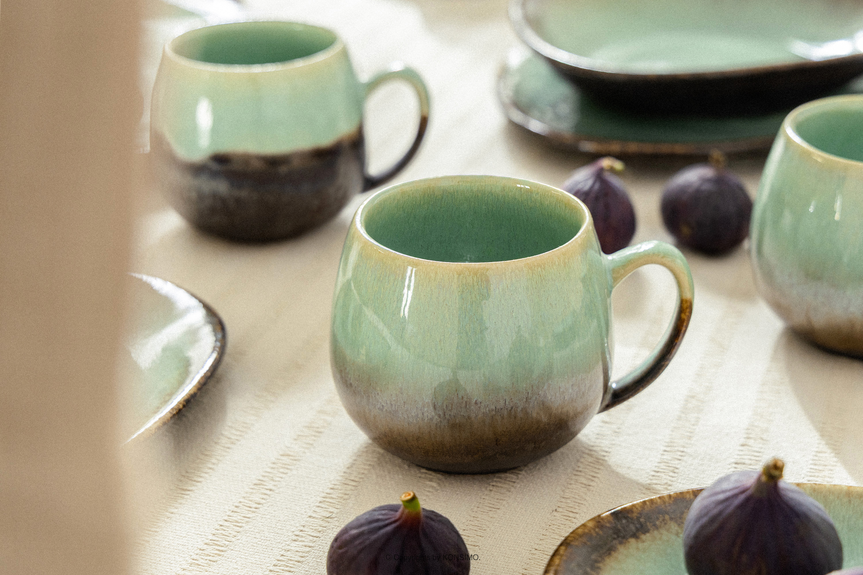 PRIMA Handglasiertes Loft-Frühstücksset 6 Personen (12 tlg.) salbeifarben