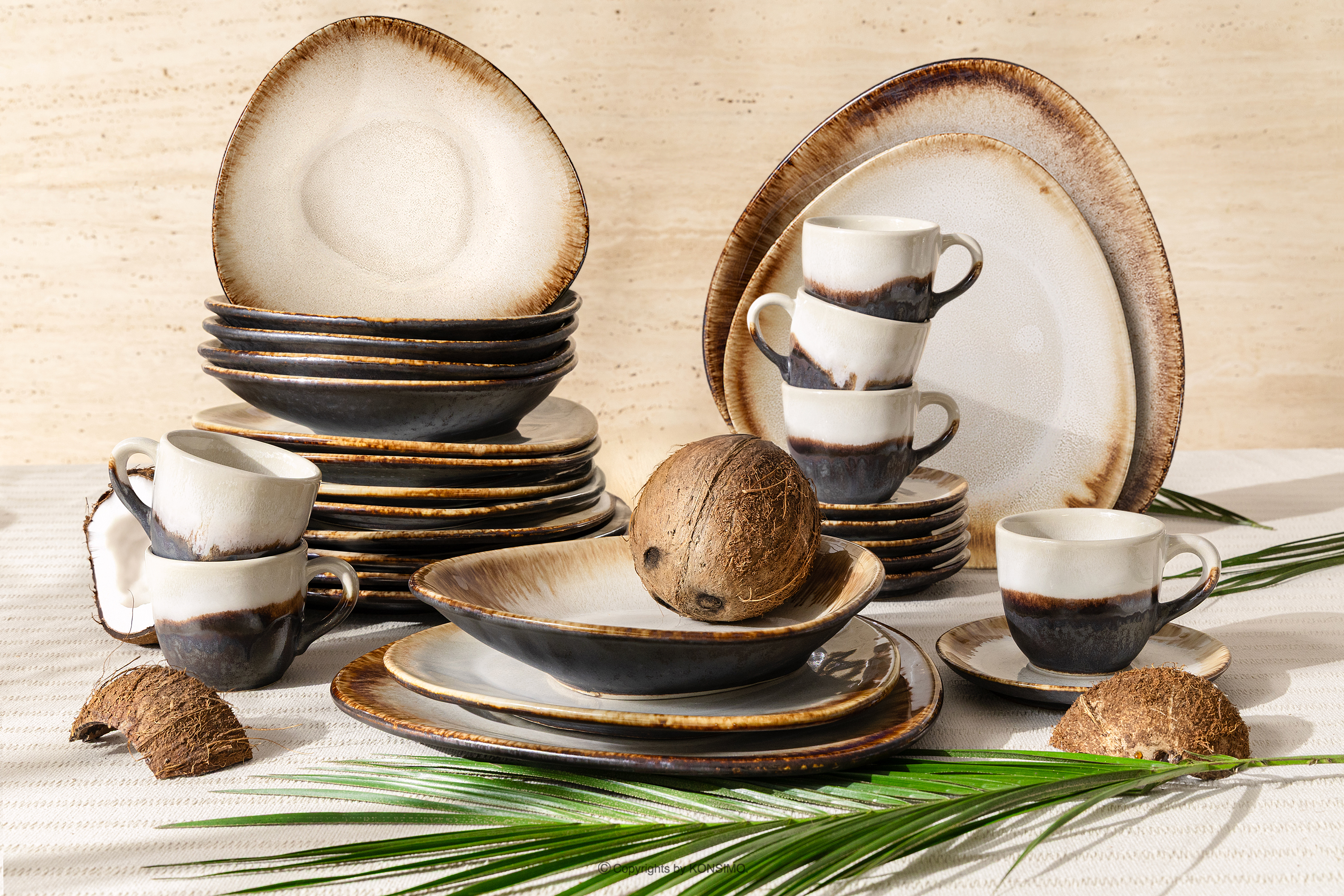 PRIMA Handglasiertes Geschirr-Set und Kaffeeservice für 6 Personen (30 tlg.) hellbeige