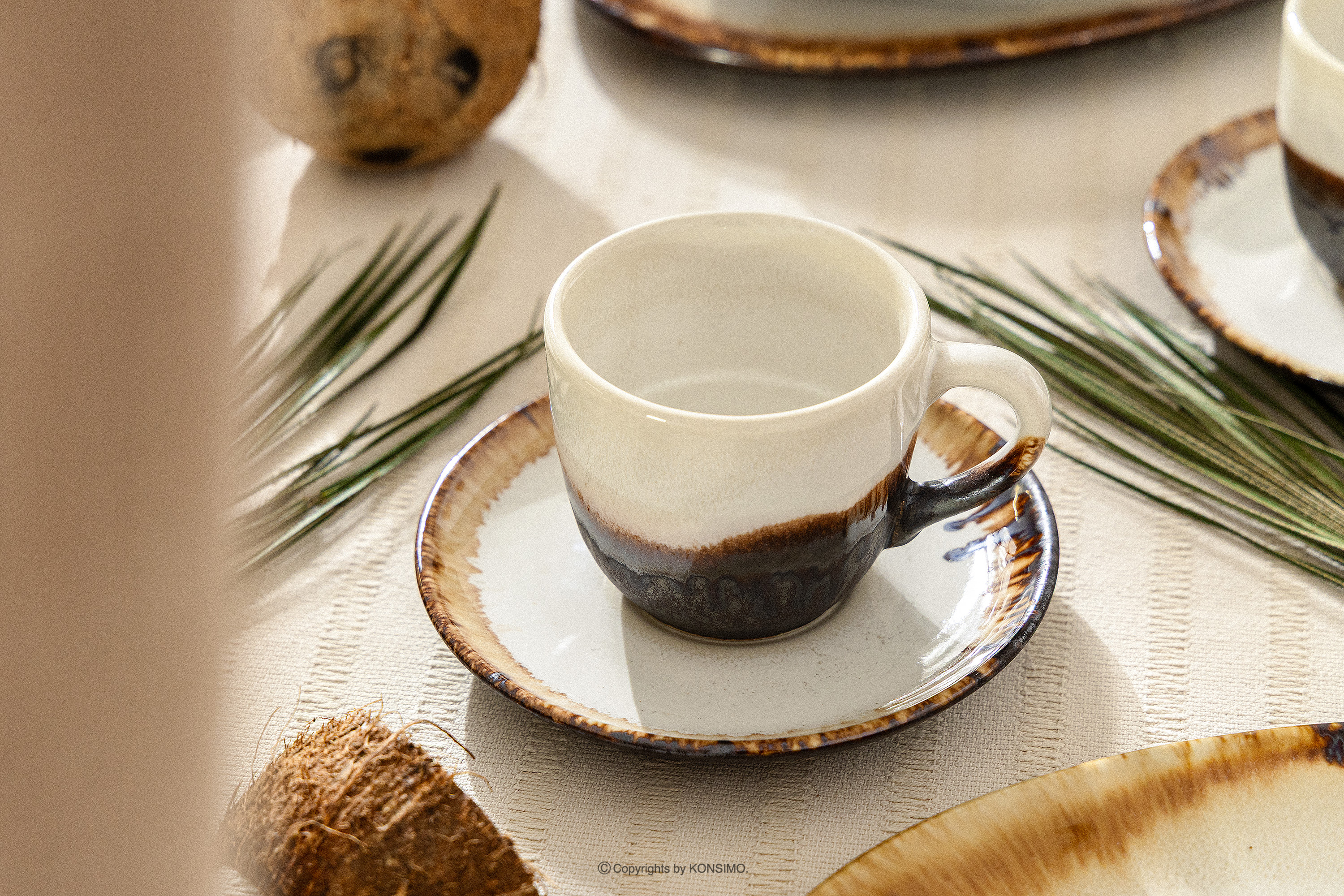 Handglasiertes Geschirr-Set und Kaffeeservice für 6 Personen (30 tlg.) hellbeige – die Essenz roher Schönheit und moderner Eleganz, eingefangen in der Form von Gebrauchskeramik. PRIMA wurde für diejenigen geschaffen, die Authentizität und außergewöhnliches Design schätzen, und ist eine Hommage an den Loft-Stil, bei dem Raum, Licht und natürliche Materialien im Vordergrund stehen.