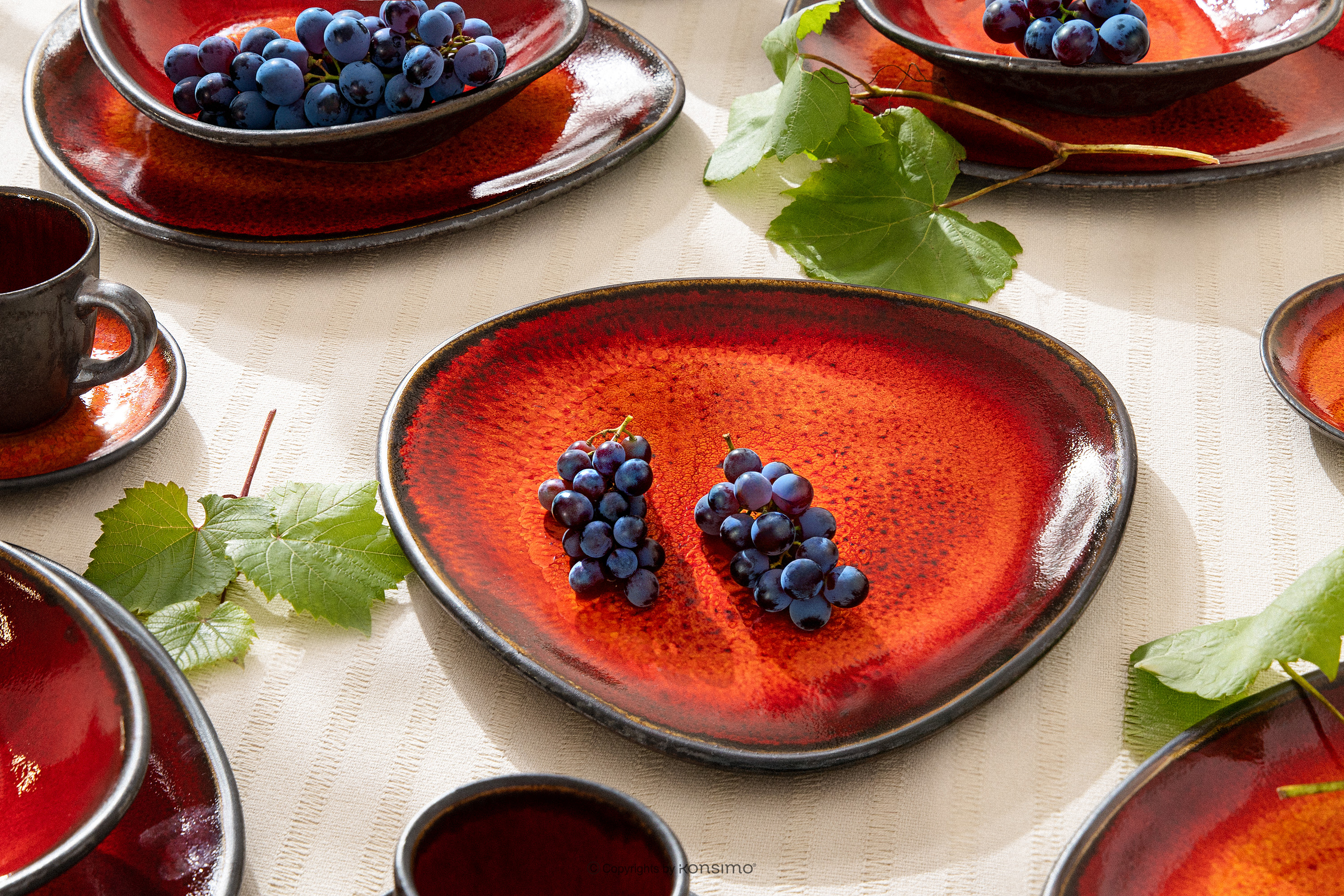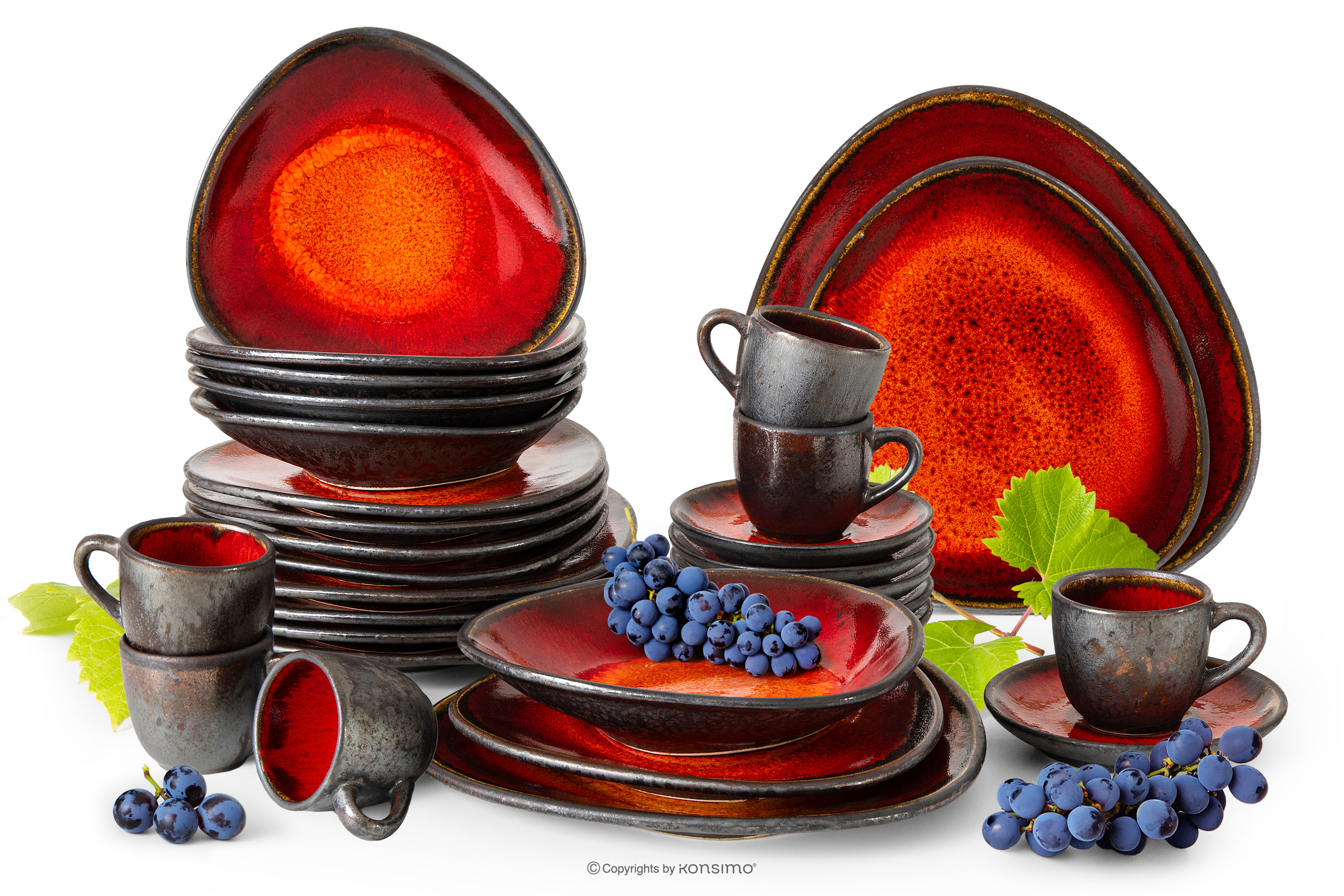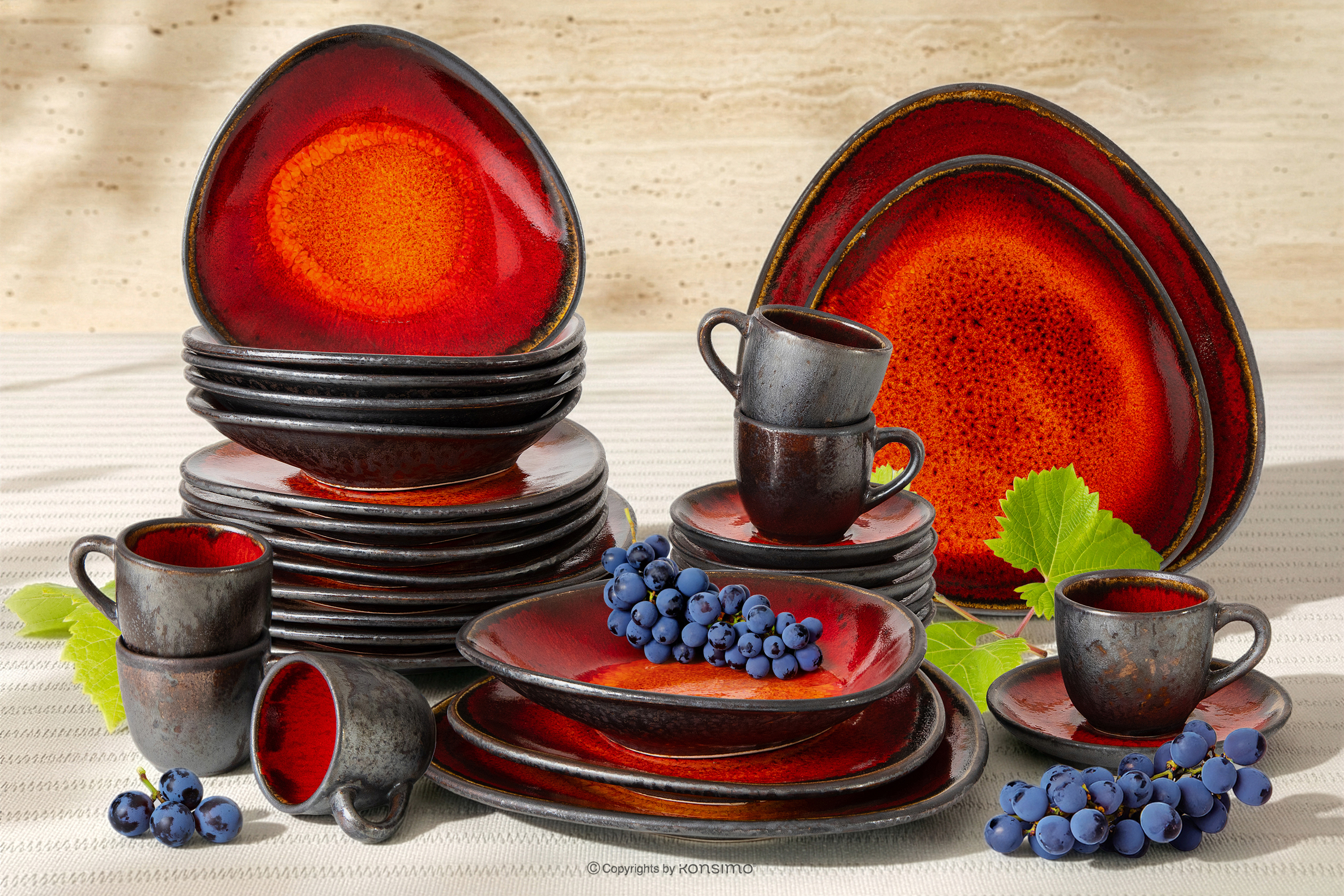 PRIMA Handglasiertes Geschirr-Set und Kaffeeservice für 6 Personen (30 tlg.) rot