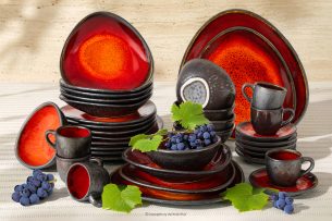 PRIMA Kombiservice aus handglasierter Keramik für 6 Personen (30 tlg.) rot