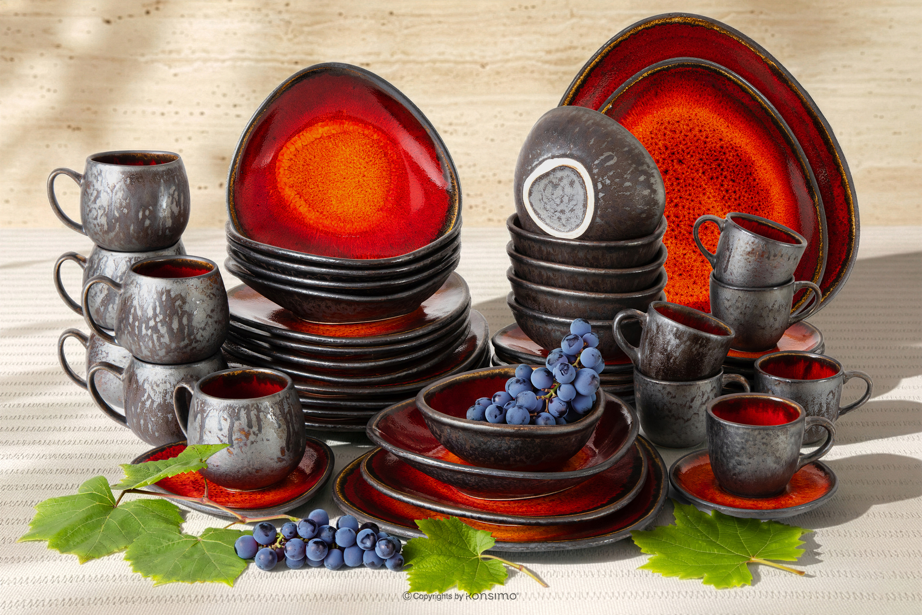 PRIMA Kombiservice aus handglasierter Keramik für 6 Personen (48 tlg.) rot