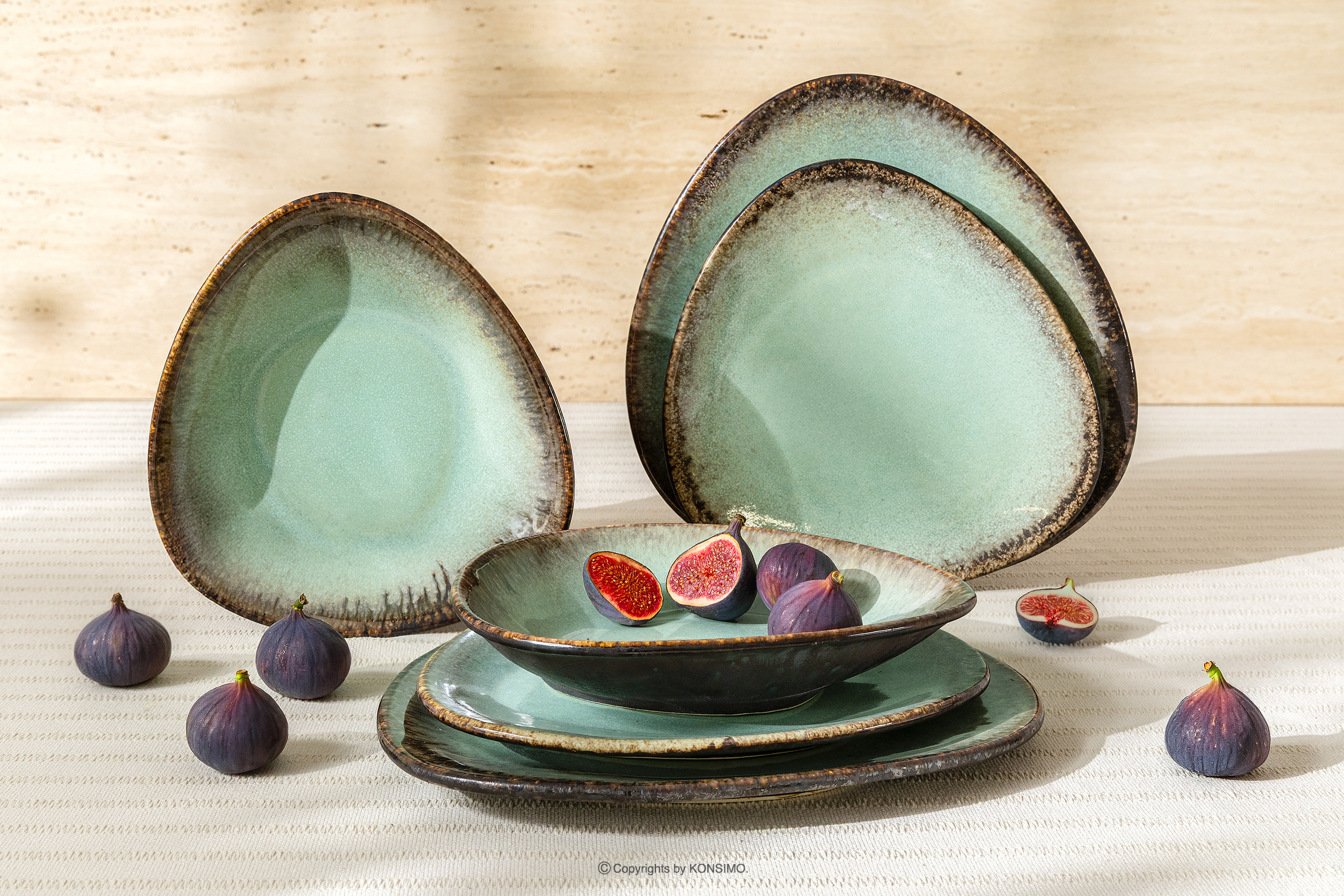PRIMA Handglasiertes Geschirrset für 2 Personen (6 tlg.) salbeifarben