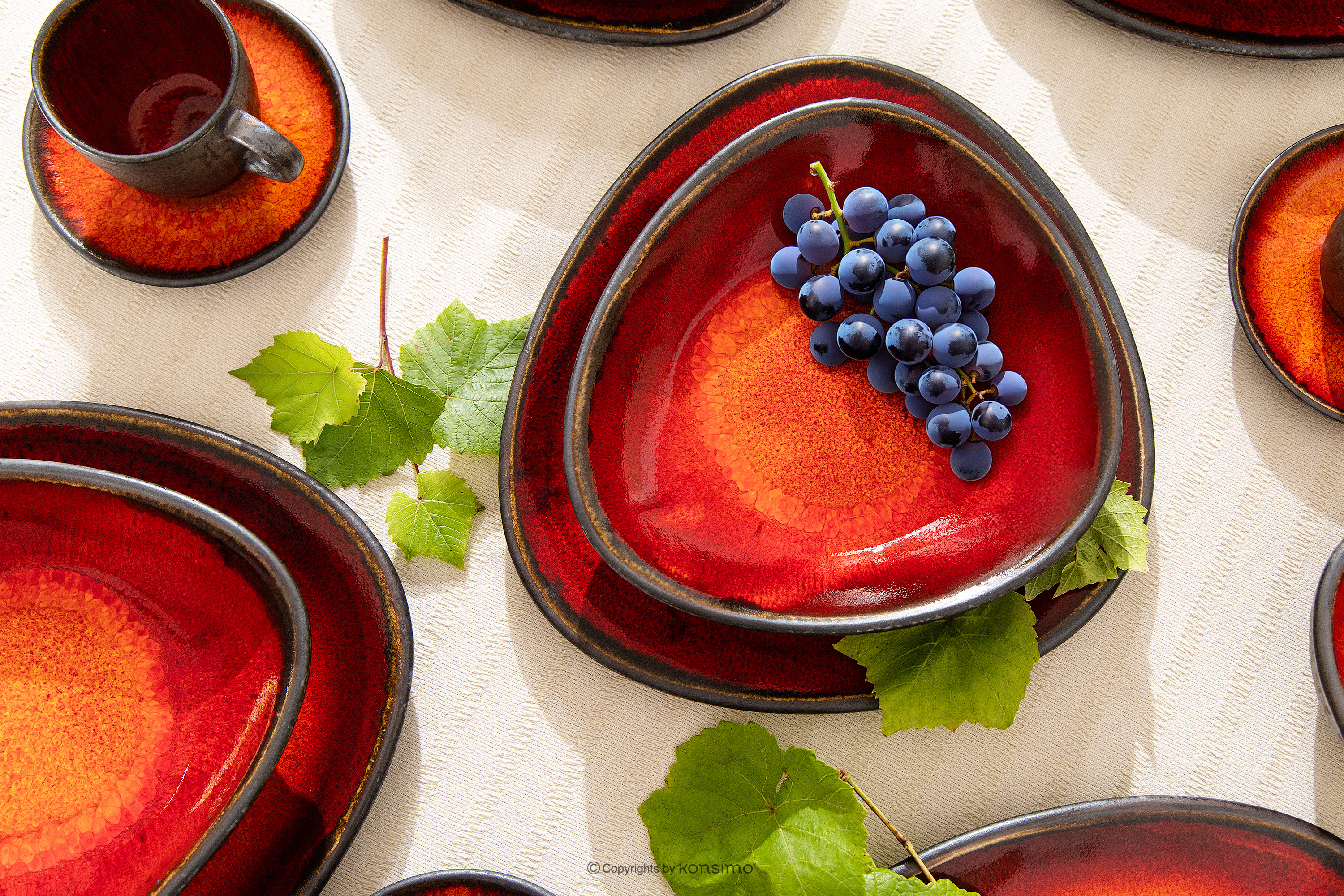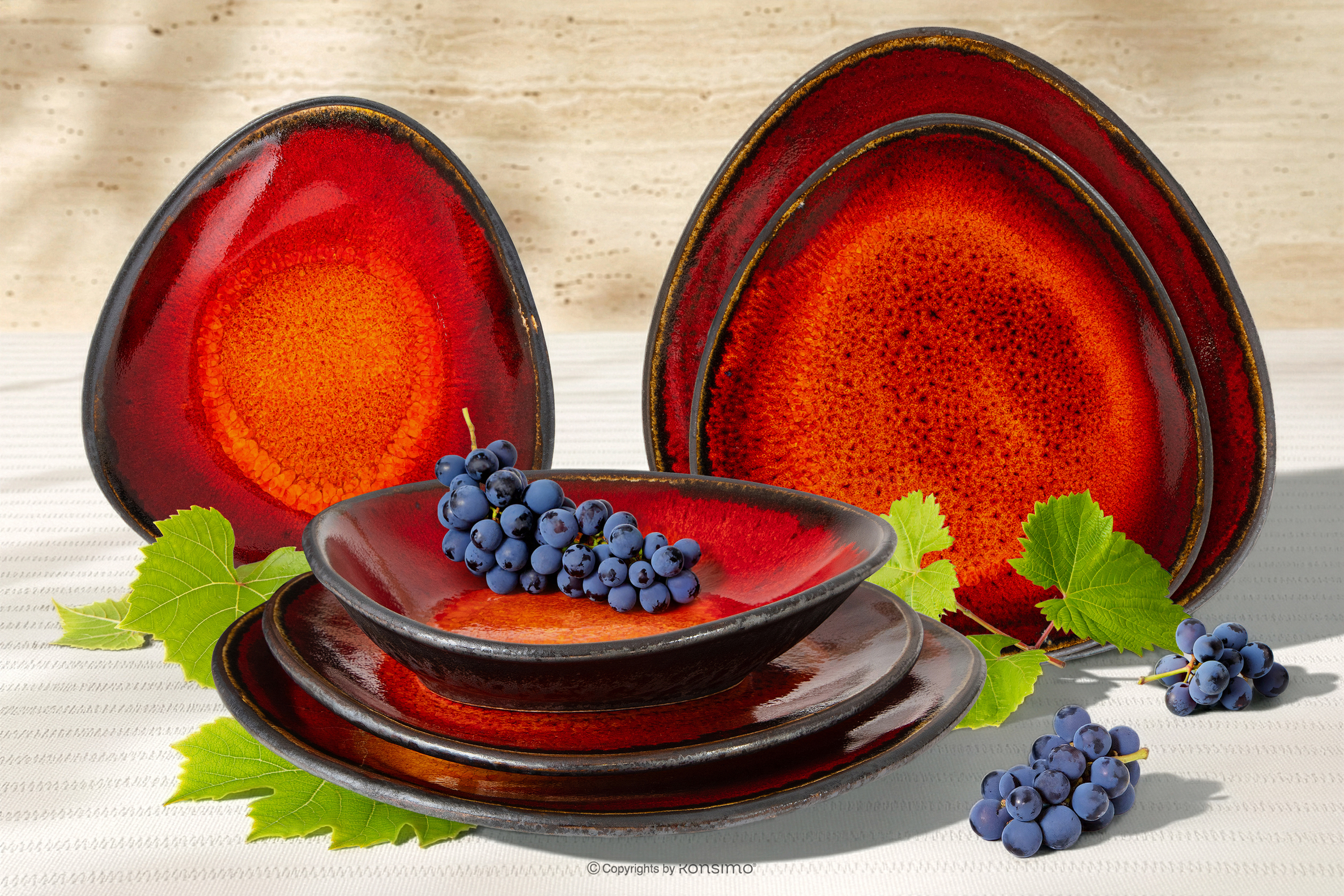 PRIMA Mehr aus der Kollektion Handglasiertes Geschirrset für 2 Personen (6 tlg.) rot- Farbe rot