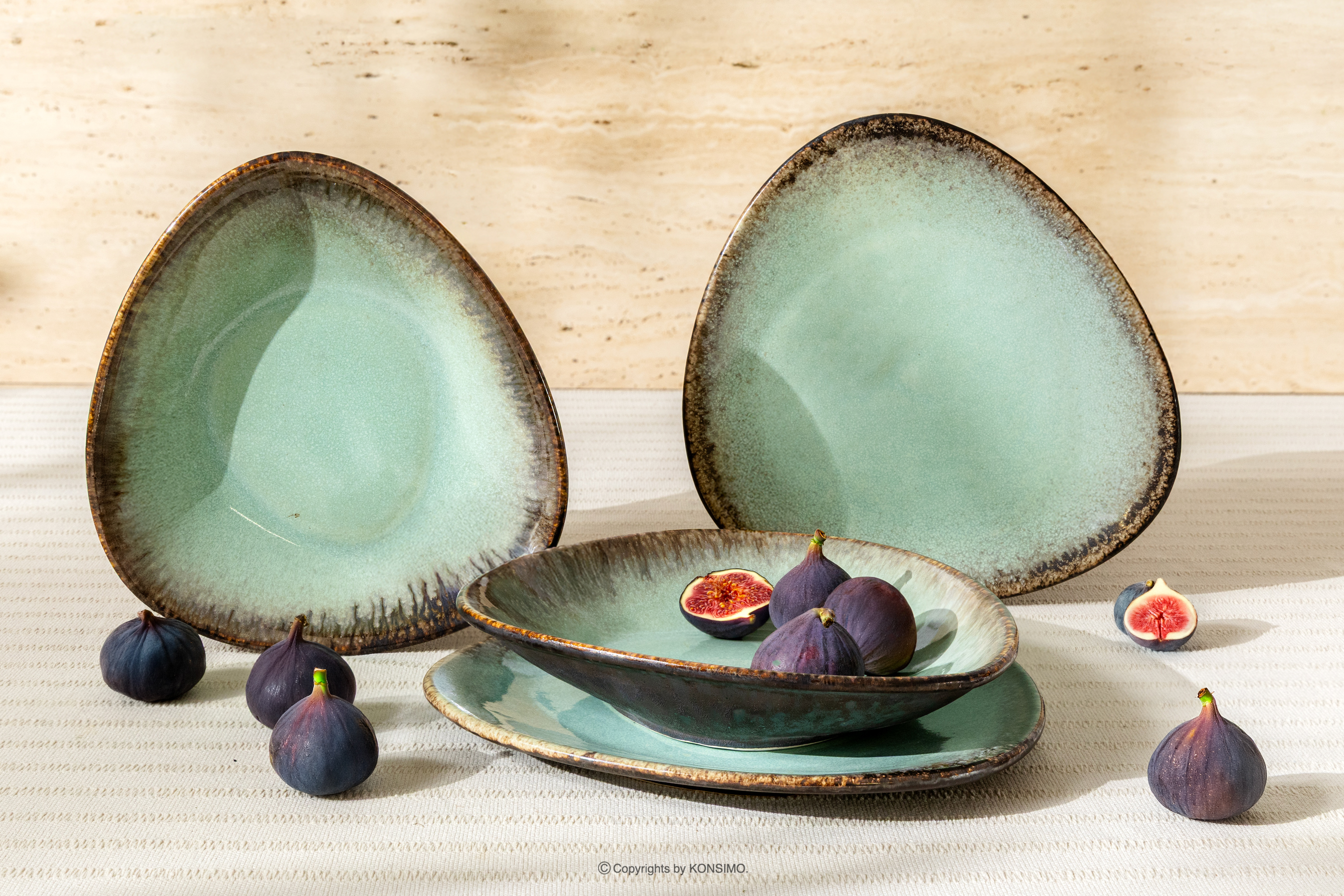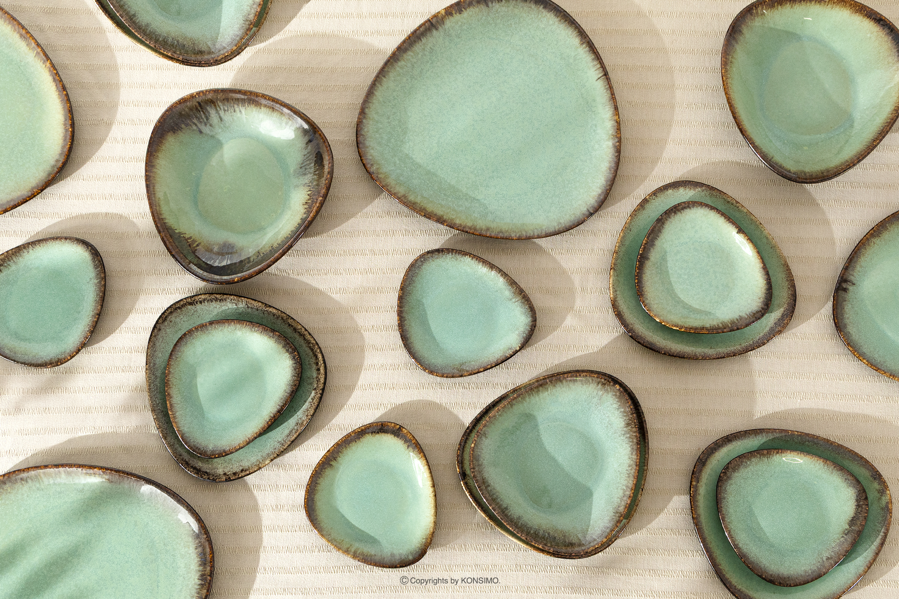 für das Produkt Handglasiertes Geschirrset für 2 Personen (4 tlg.) salbeifarben