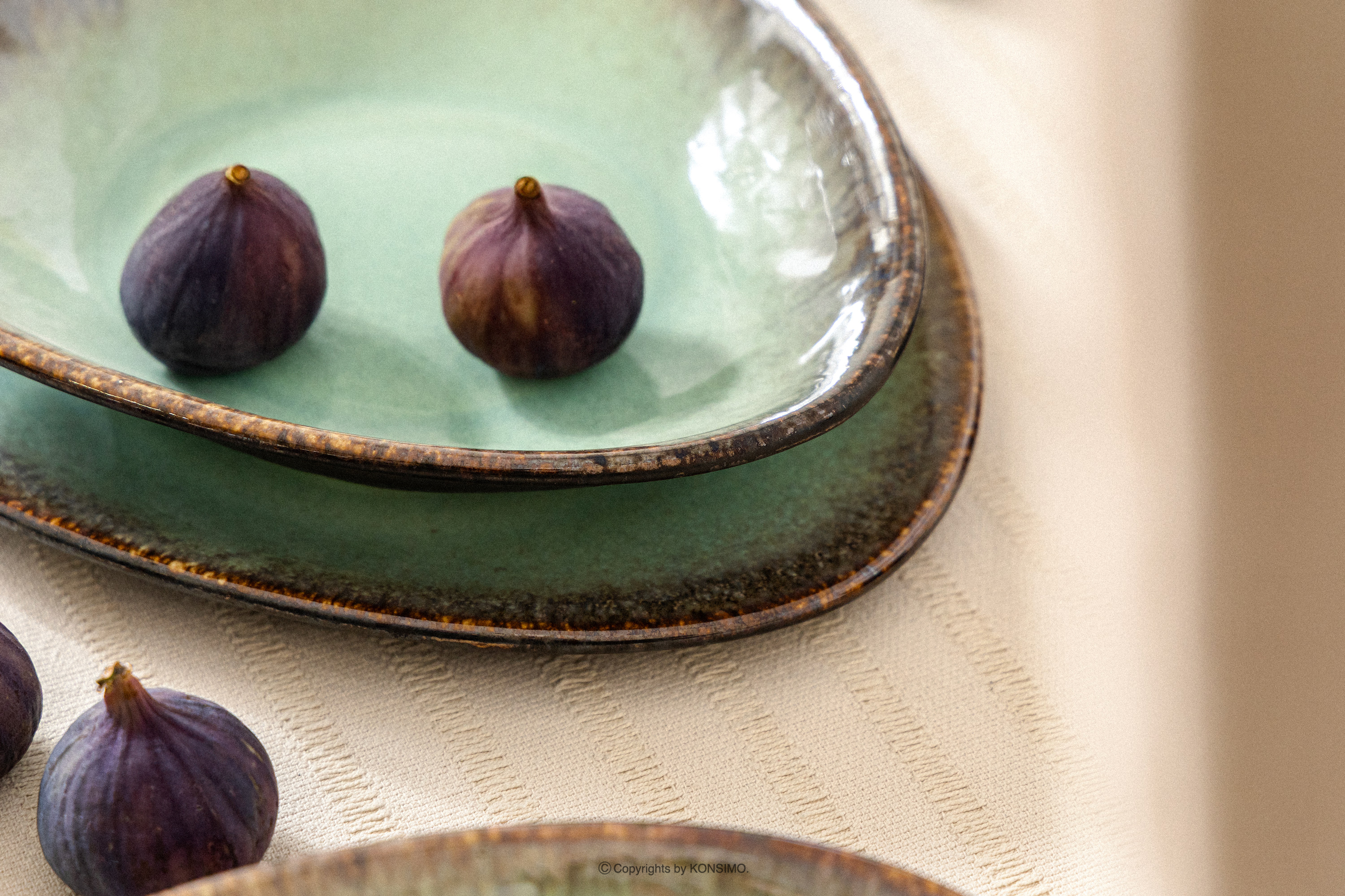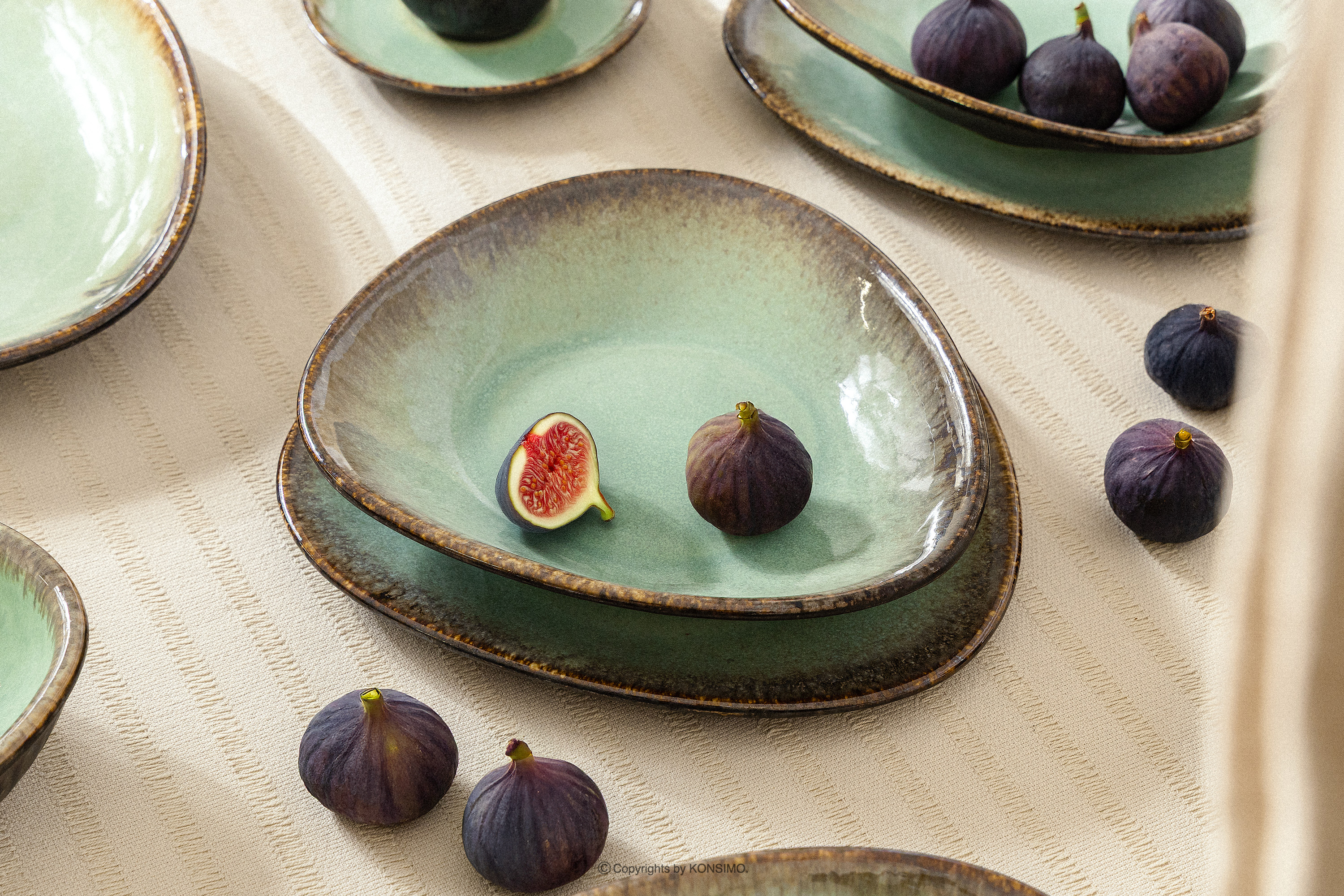 PRIMA Handglasiertes Geschirrset für 2 Personen (4 tlg.) salbeifarben